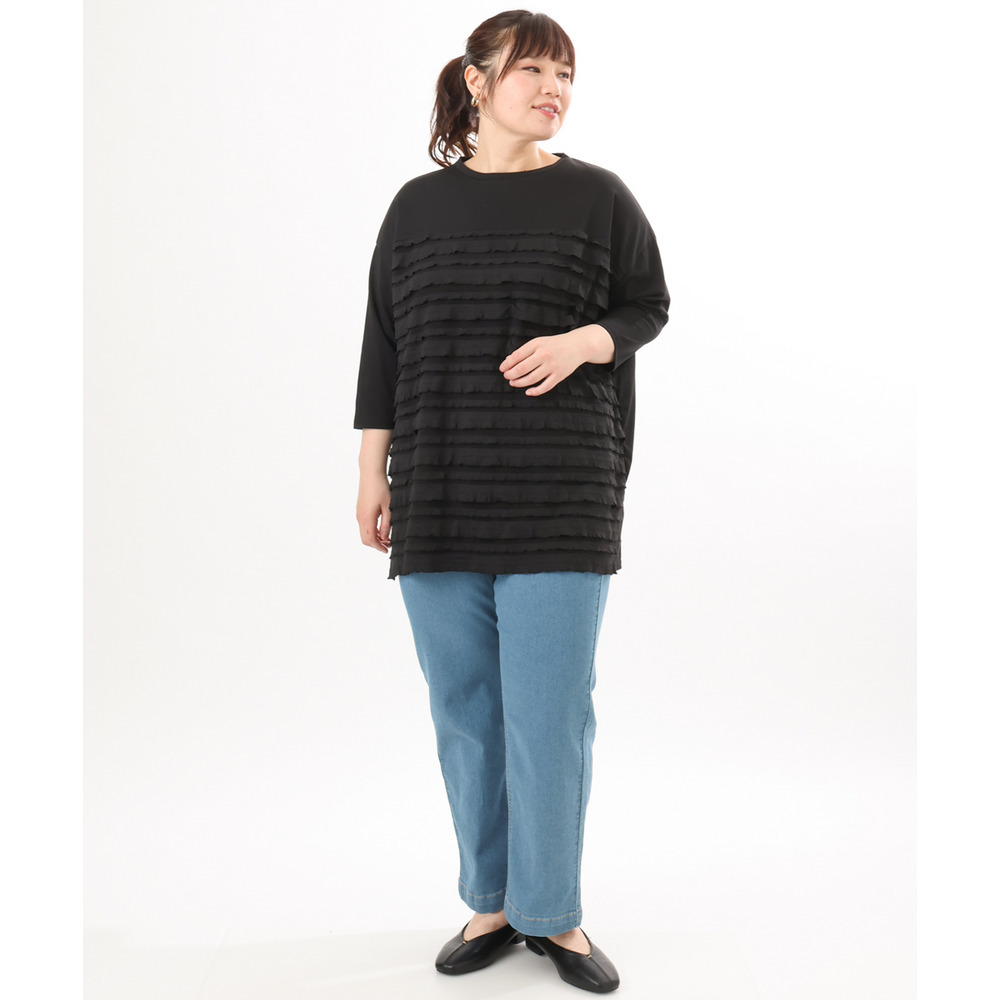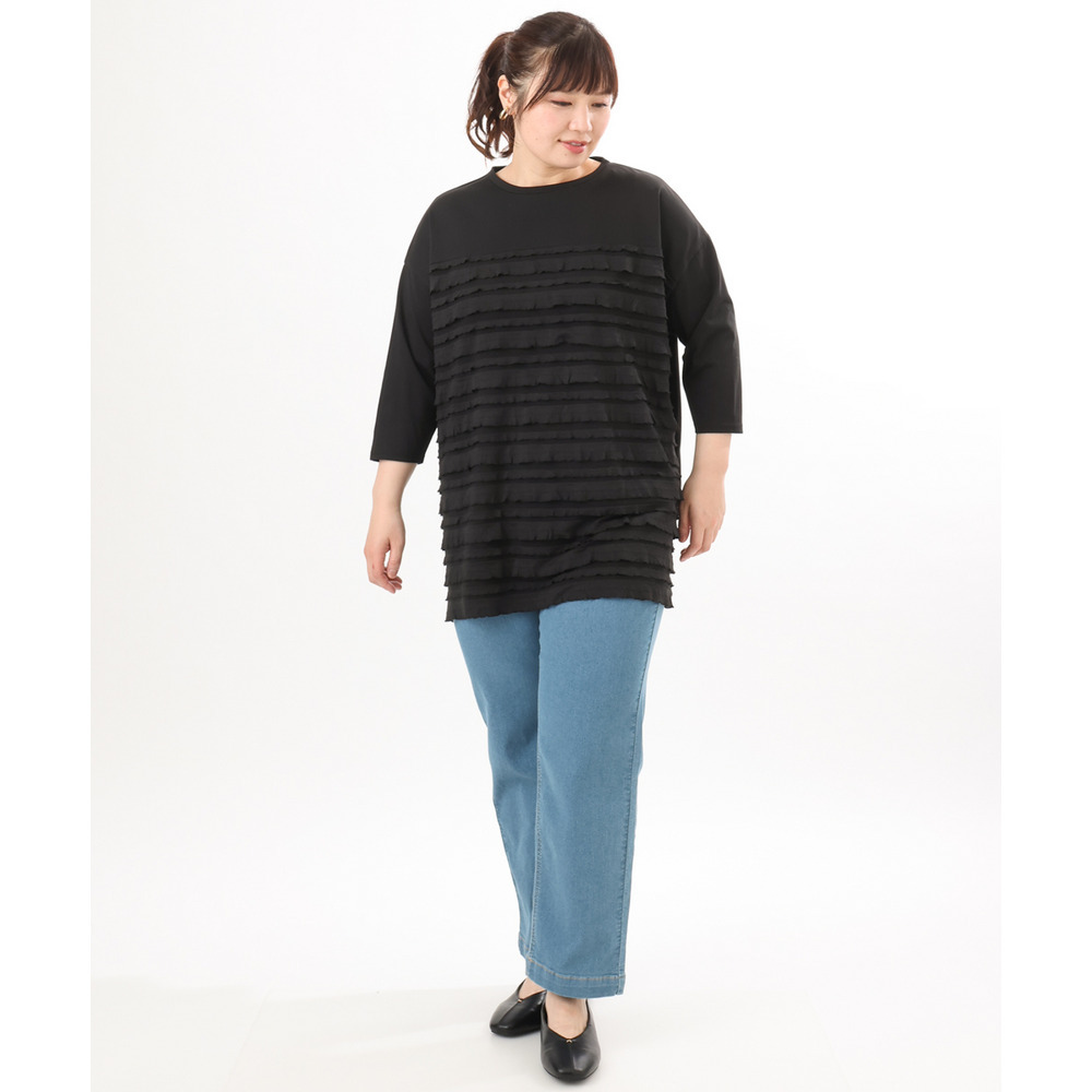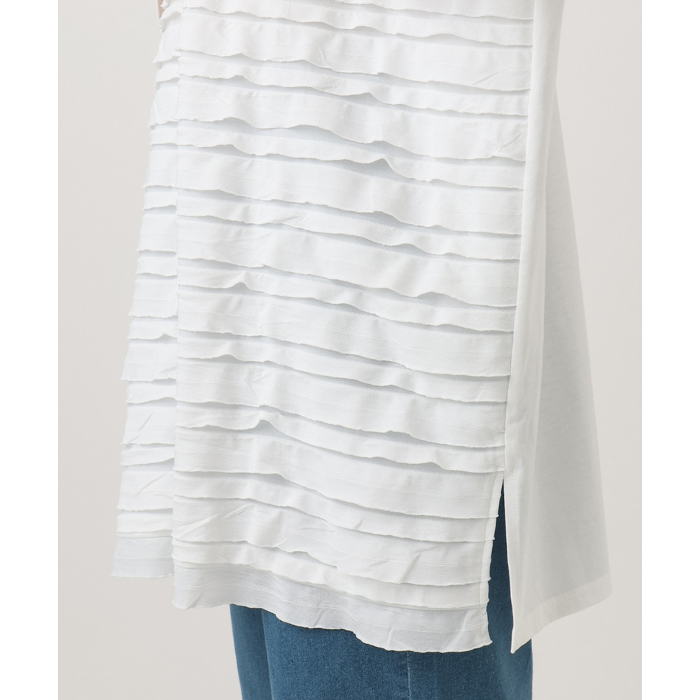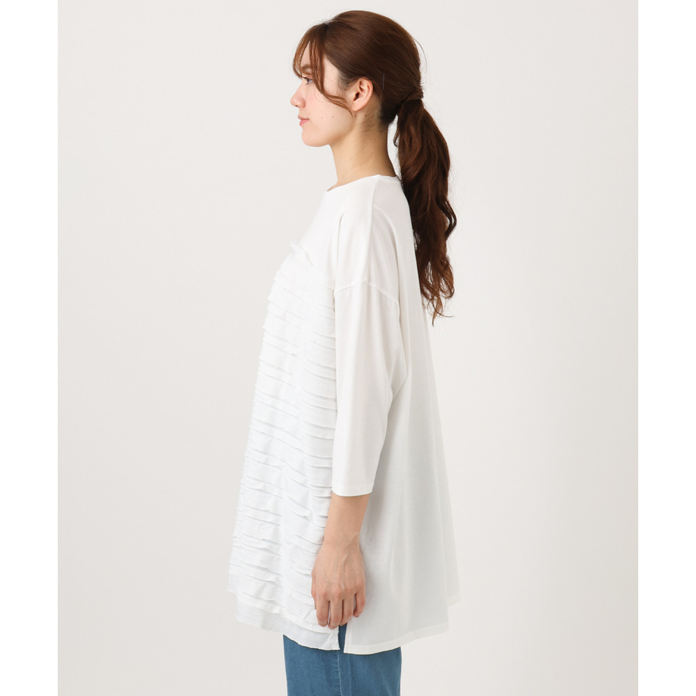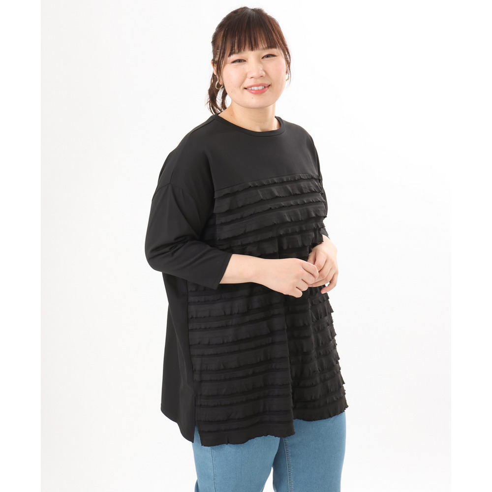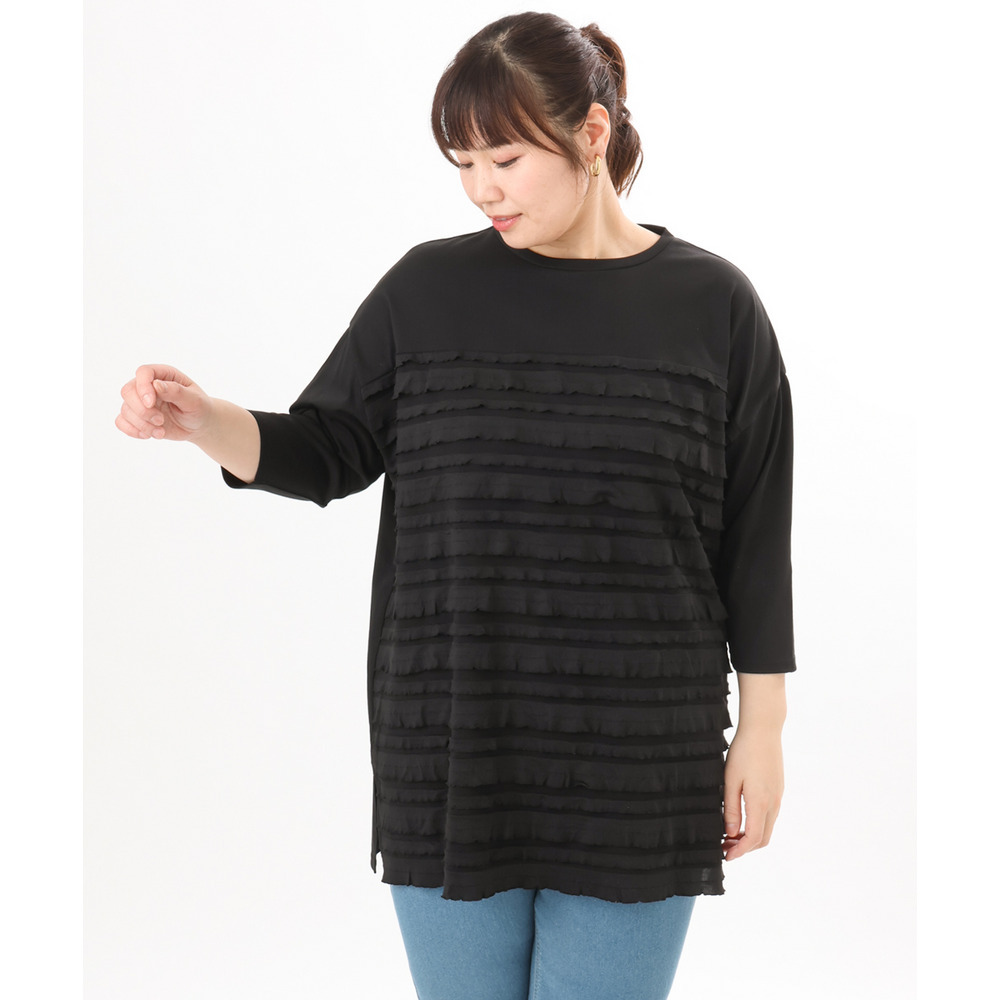 ランダムに重ねたティアードフリルは甘くなりすぎず、大人の女性にも取り入れやすい上品な仕上がり。