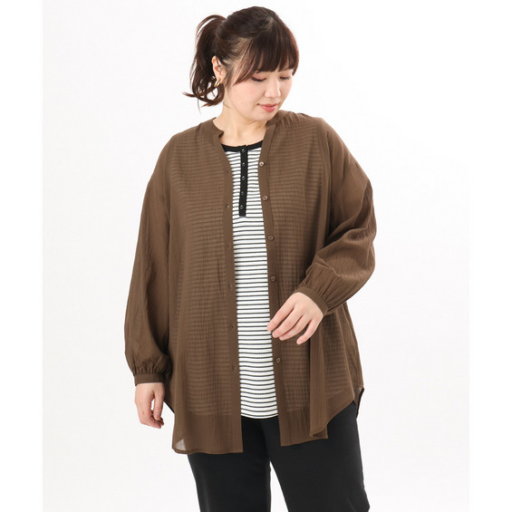 • 26年春新作【大きいサイズ】バンドカラーコットンブラウス1