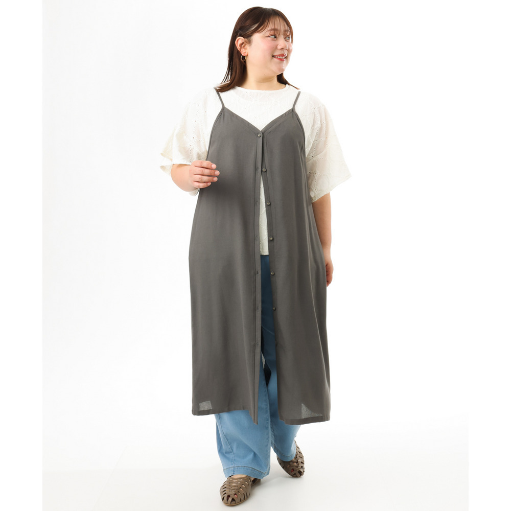 ワンピースとしてもジレとしても楽しめる、着回し力抜群のキャミソールワンピース。