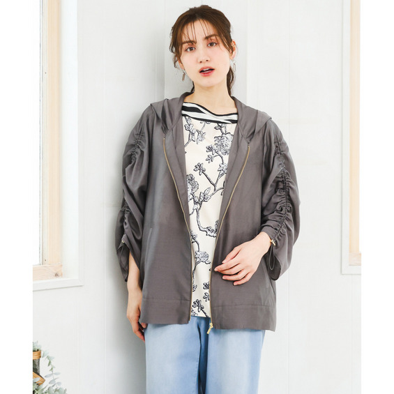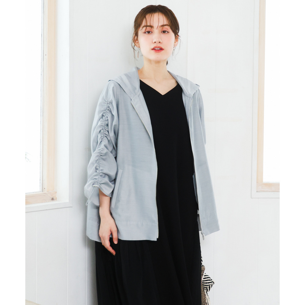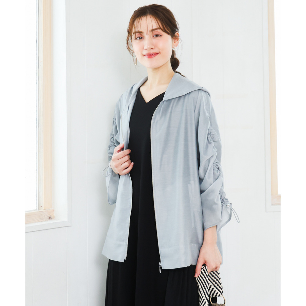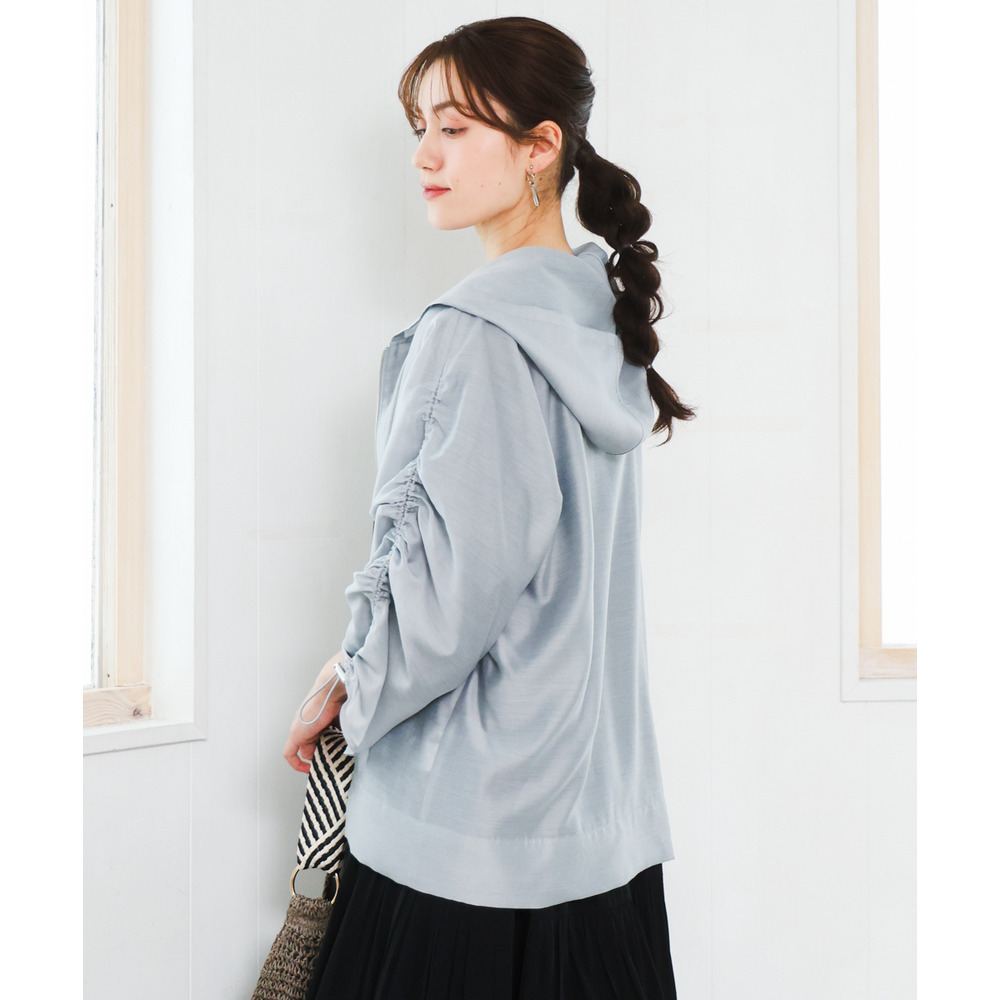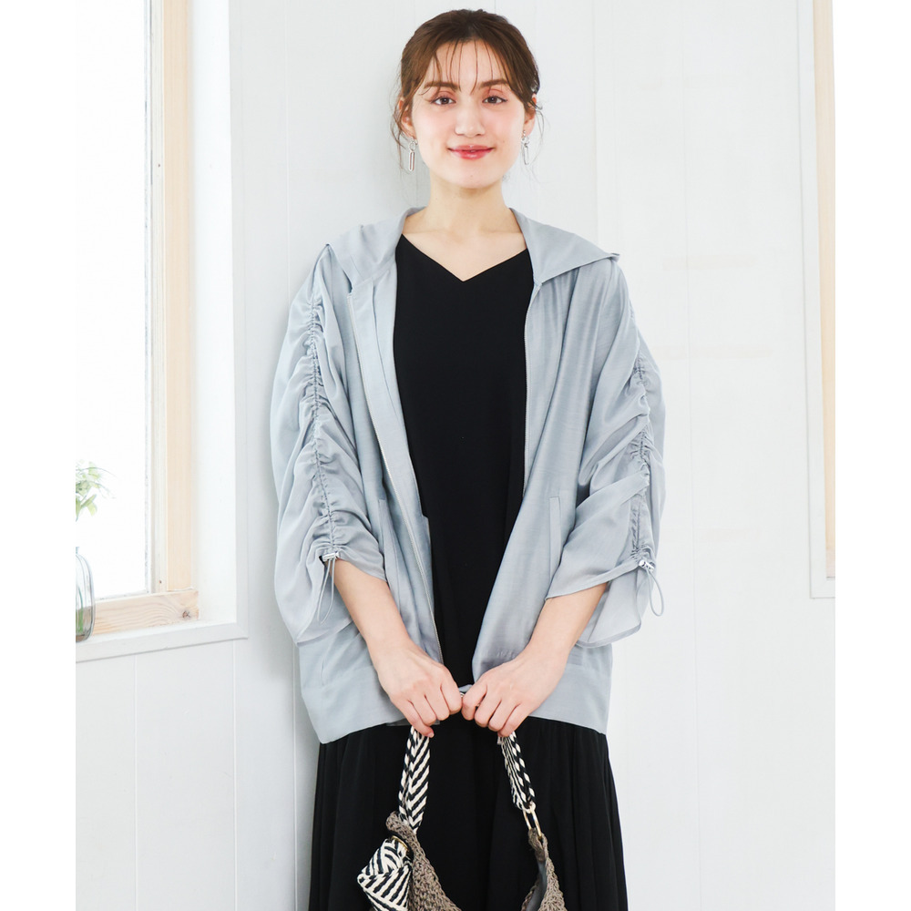袖はギャザーデザインにストリングを入れており、好みに合わせて丈感を調節可能。
