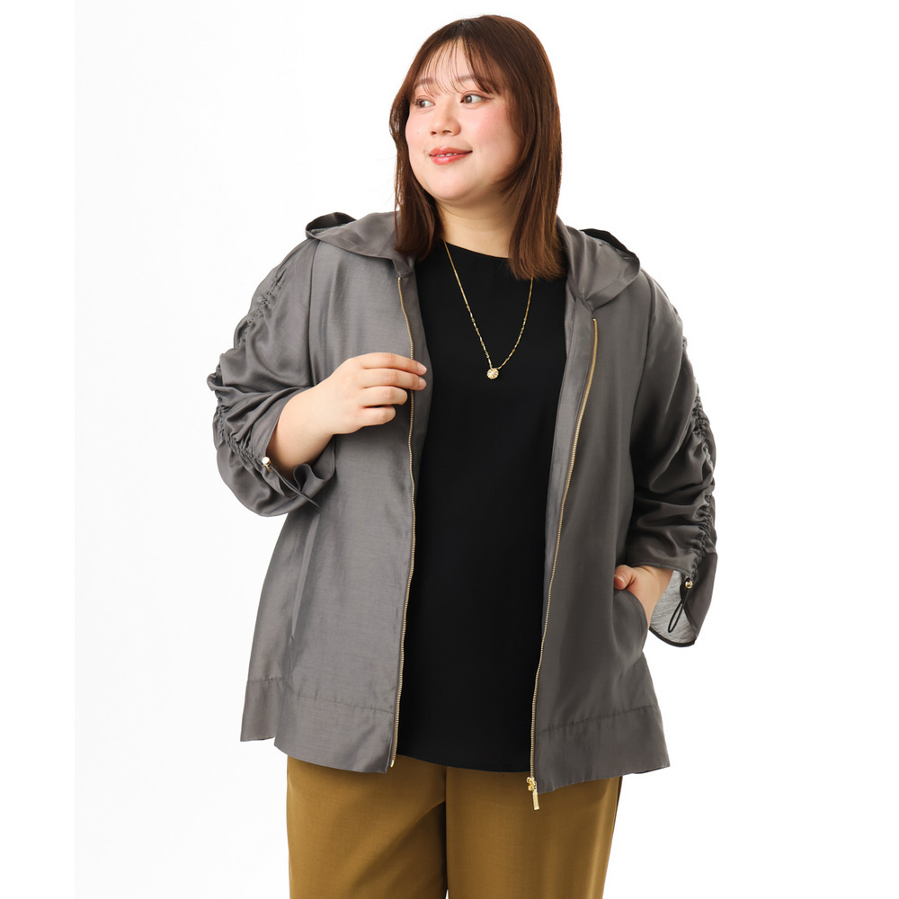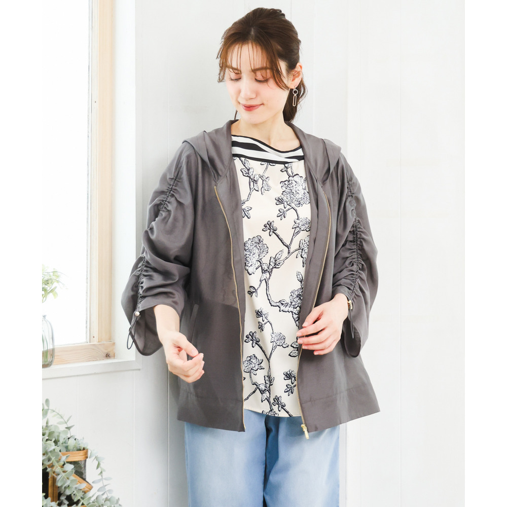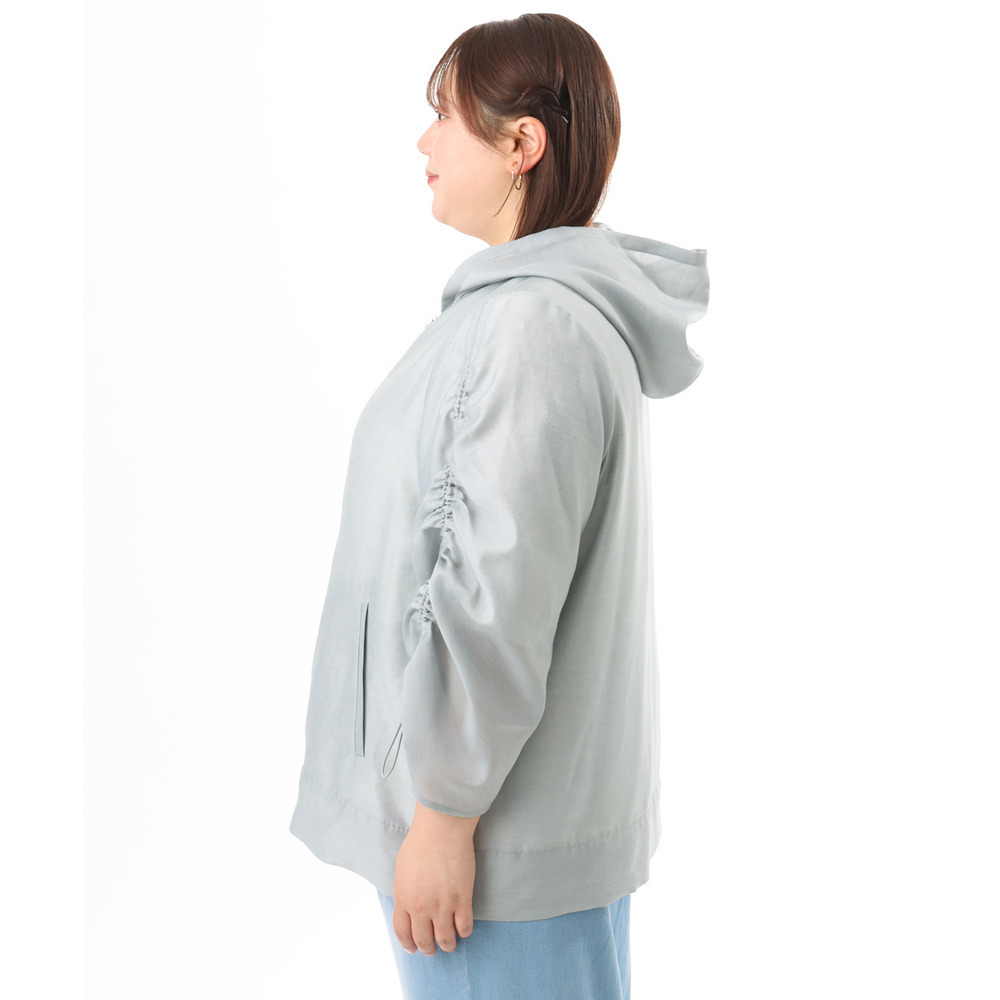 着回し力抜群のシアー素材フーディーブルゾン。