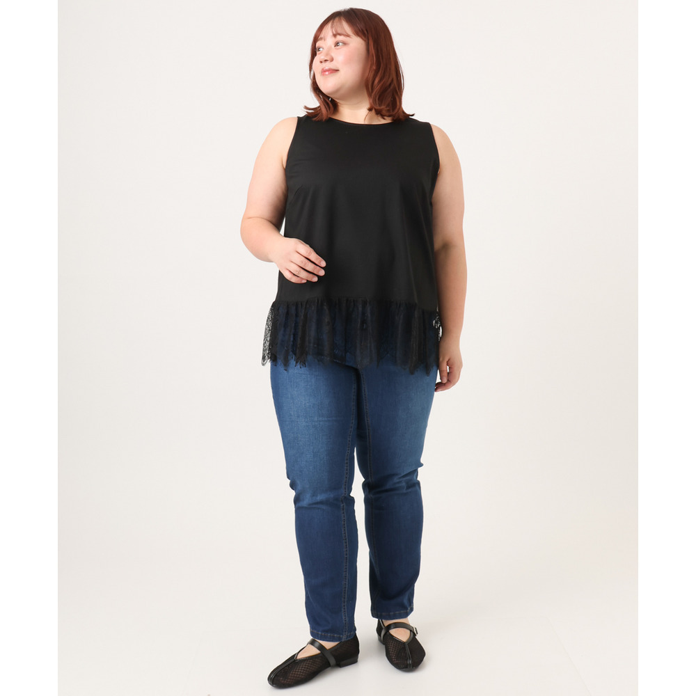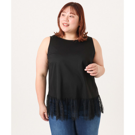 レイヤードスタイルで活躍する、レースヘムデザインのタンクトップです。