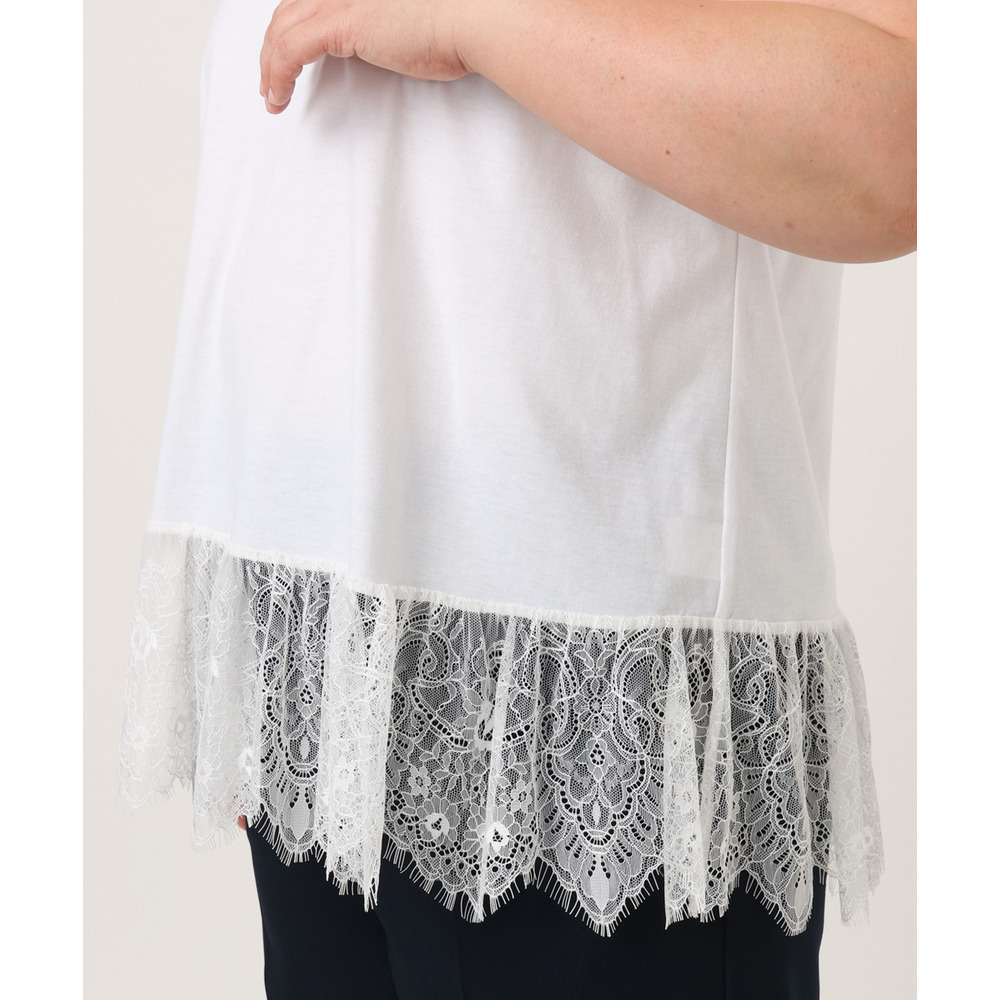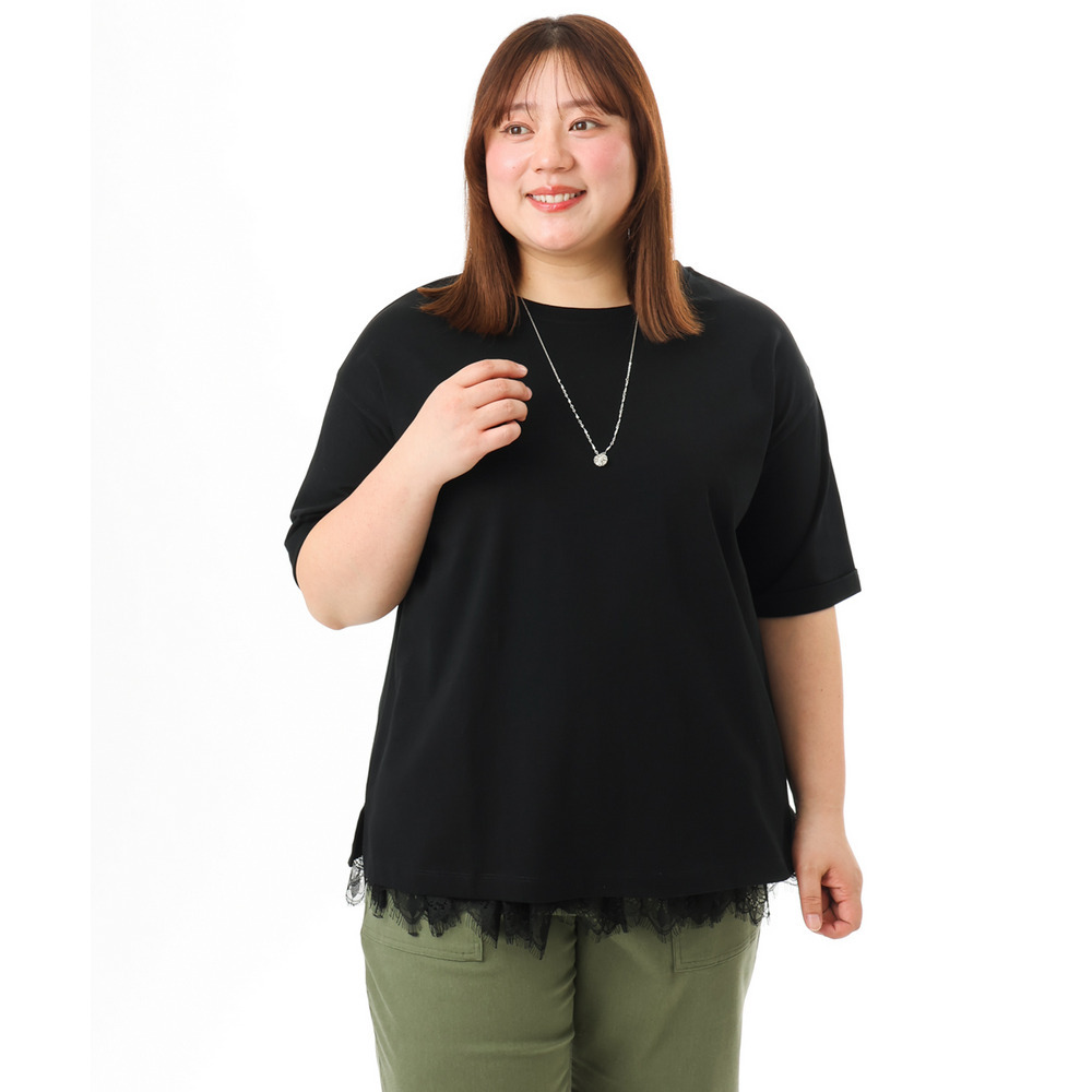 トレンドのレースヘム見せを、いつものコーデに重ねるだけで簡単に楽しめる1枚。