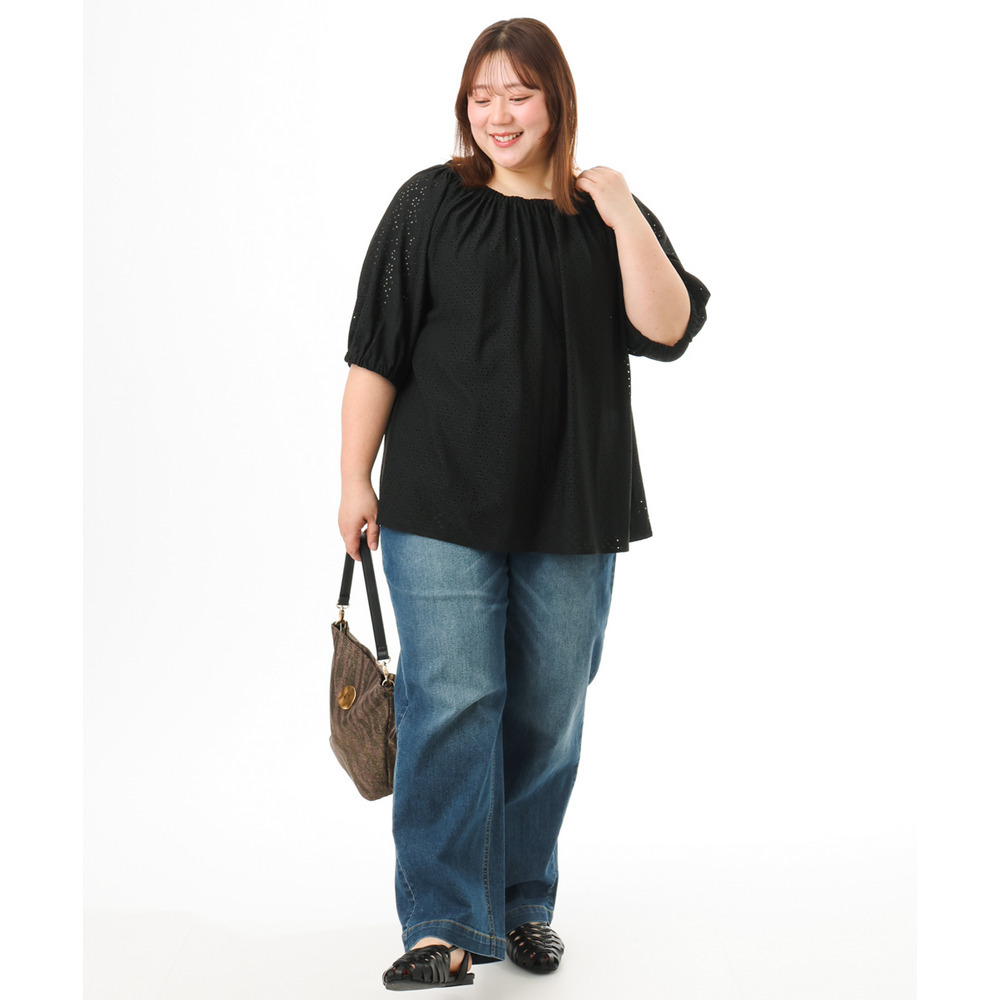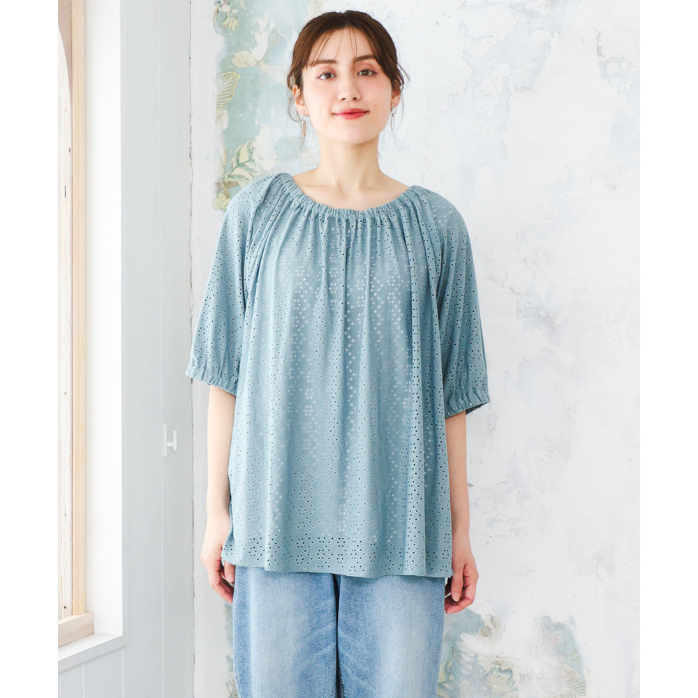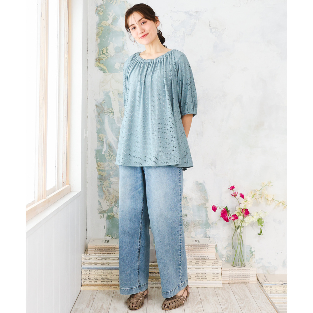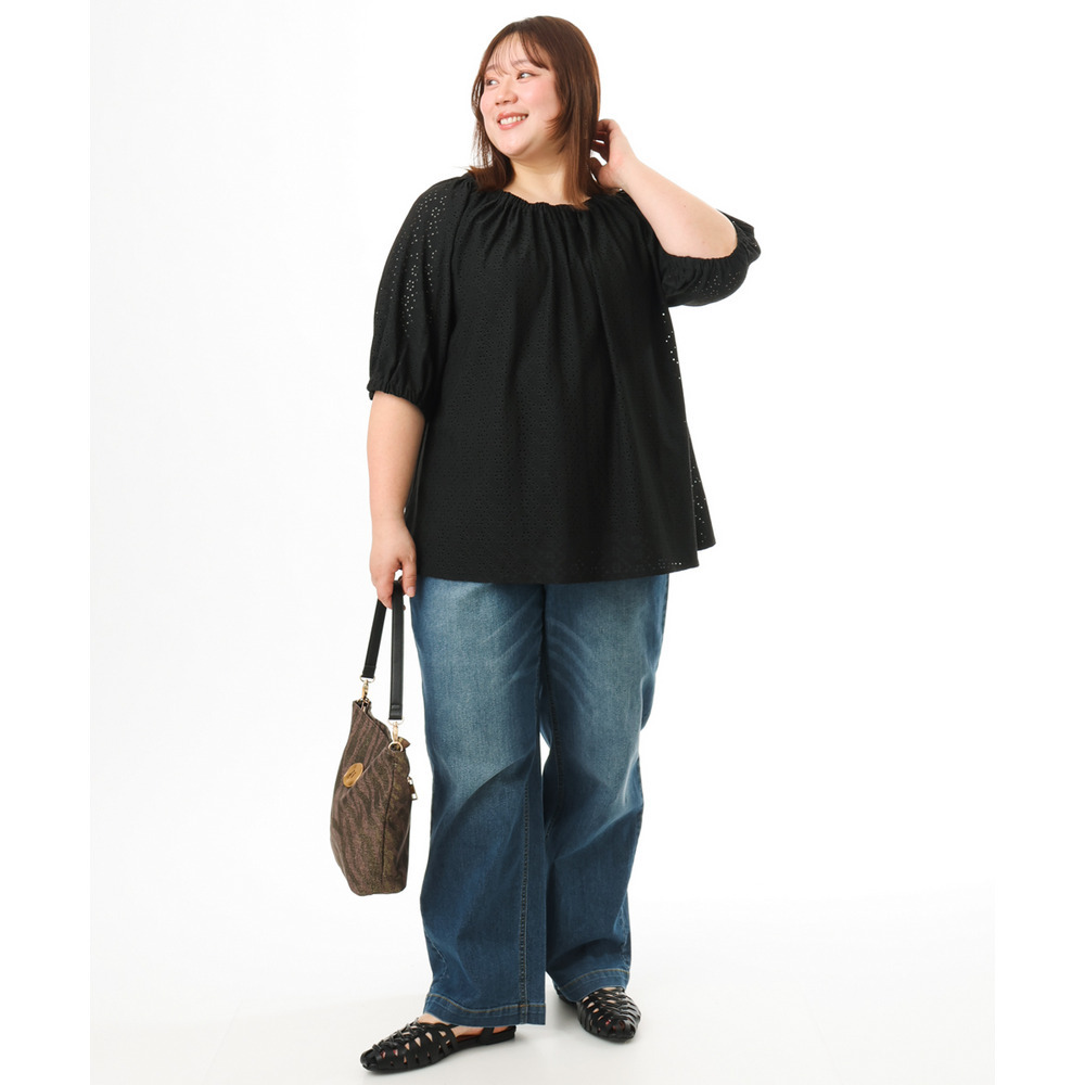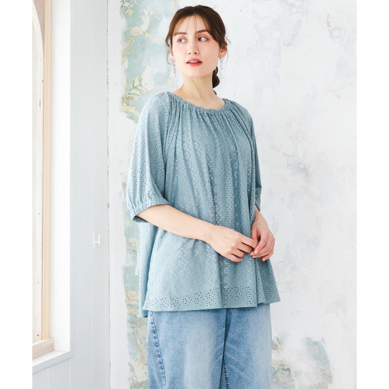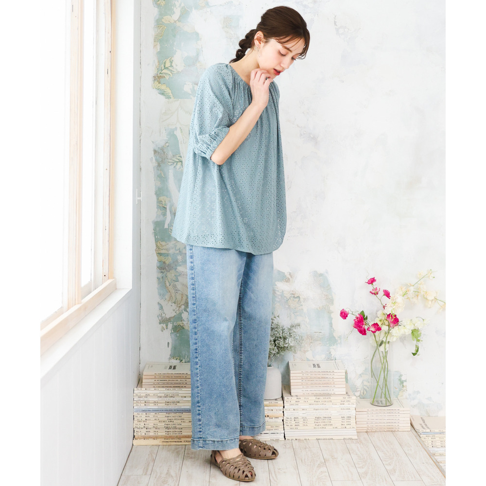 甘さと抜け感をバランスよく取り入れた、大人のためのアイレットトップス。
