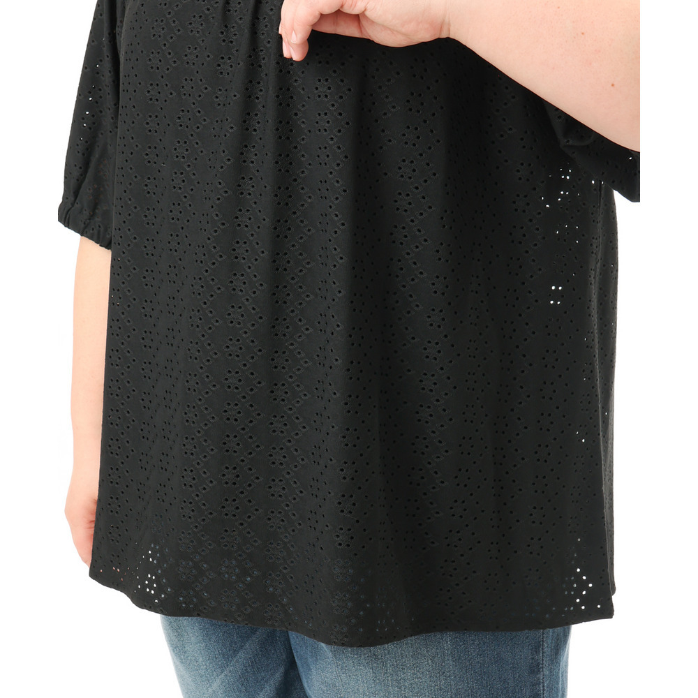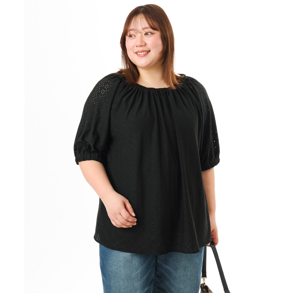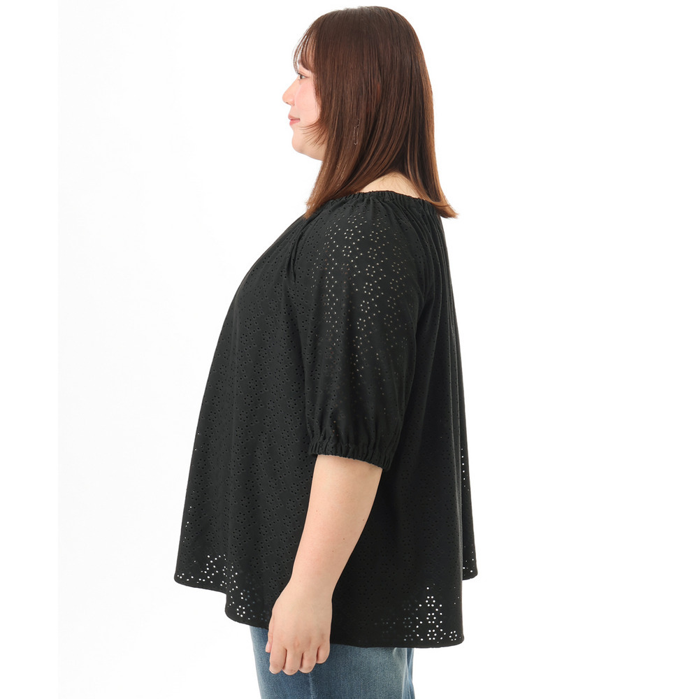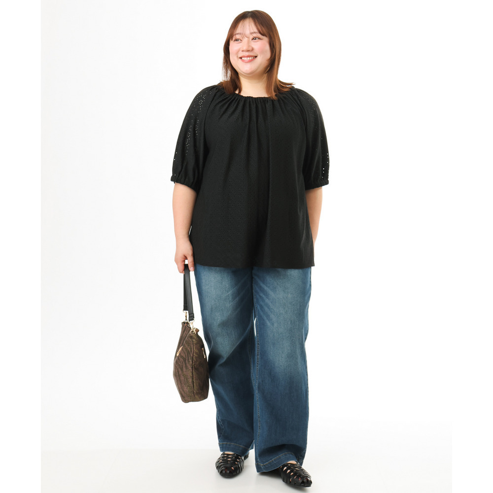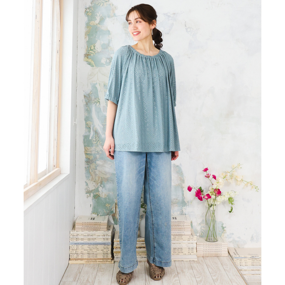 甘さと抜け感をバランスよく取り入れた、大人のためのアイレットトップス。