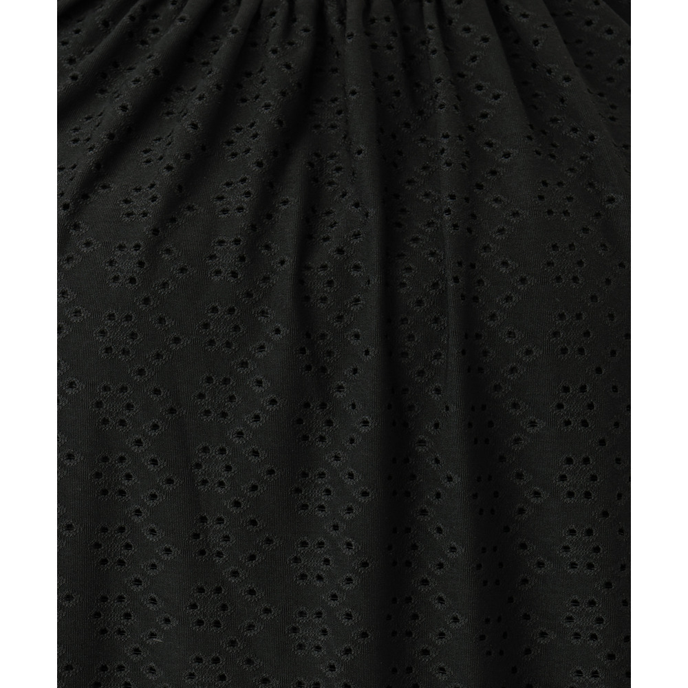 オーバーレース風に花柄にアイレットの入ったジャカードジャージー素材のストレッチレース生地を使用しています。
