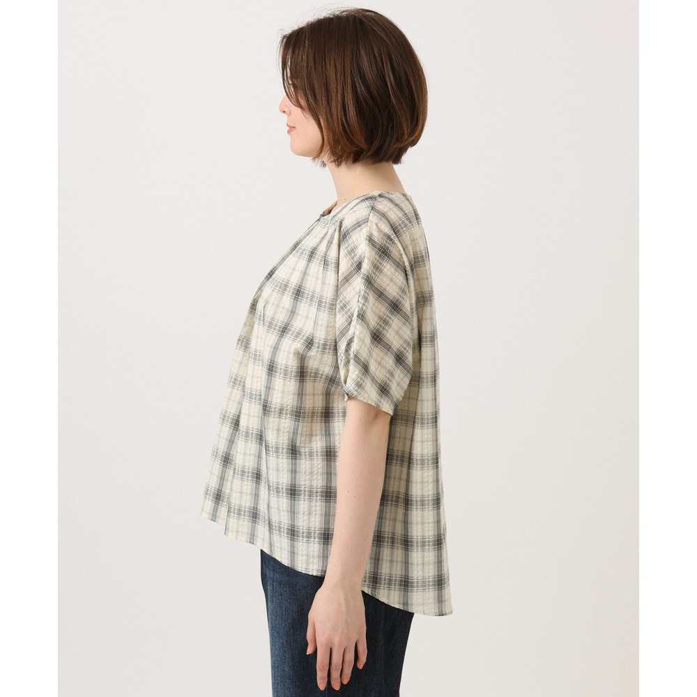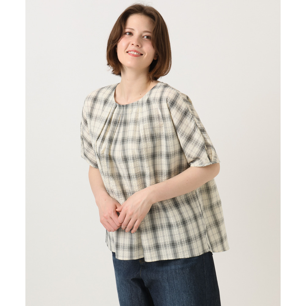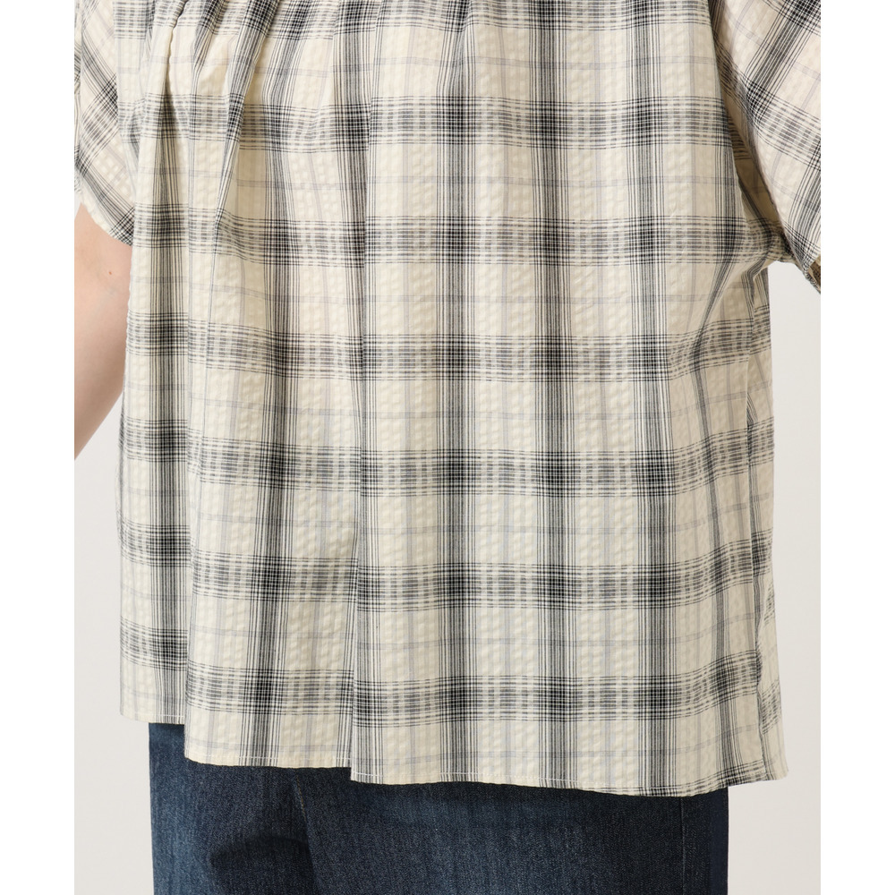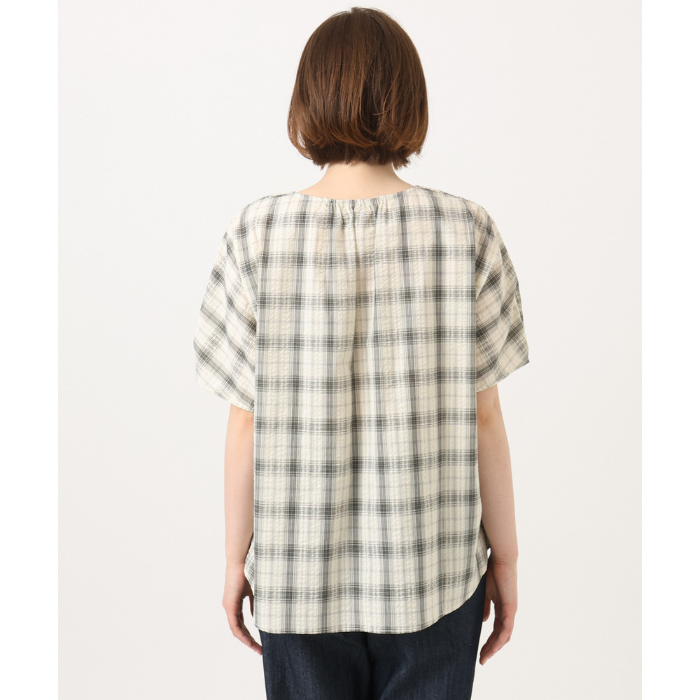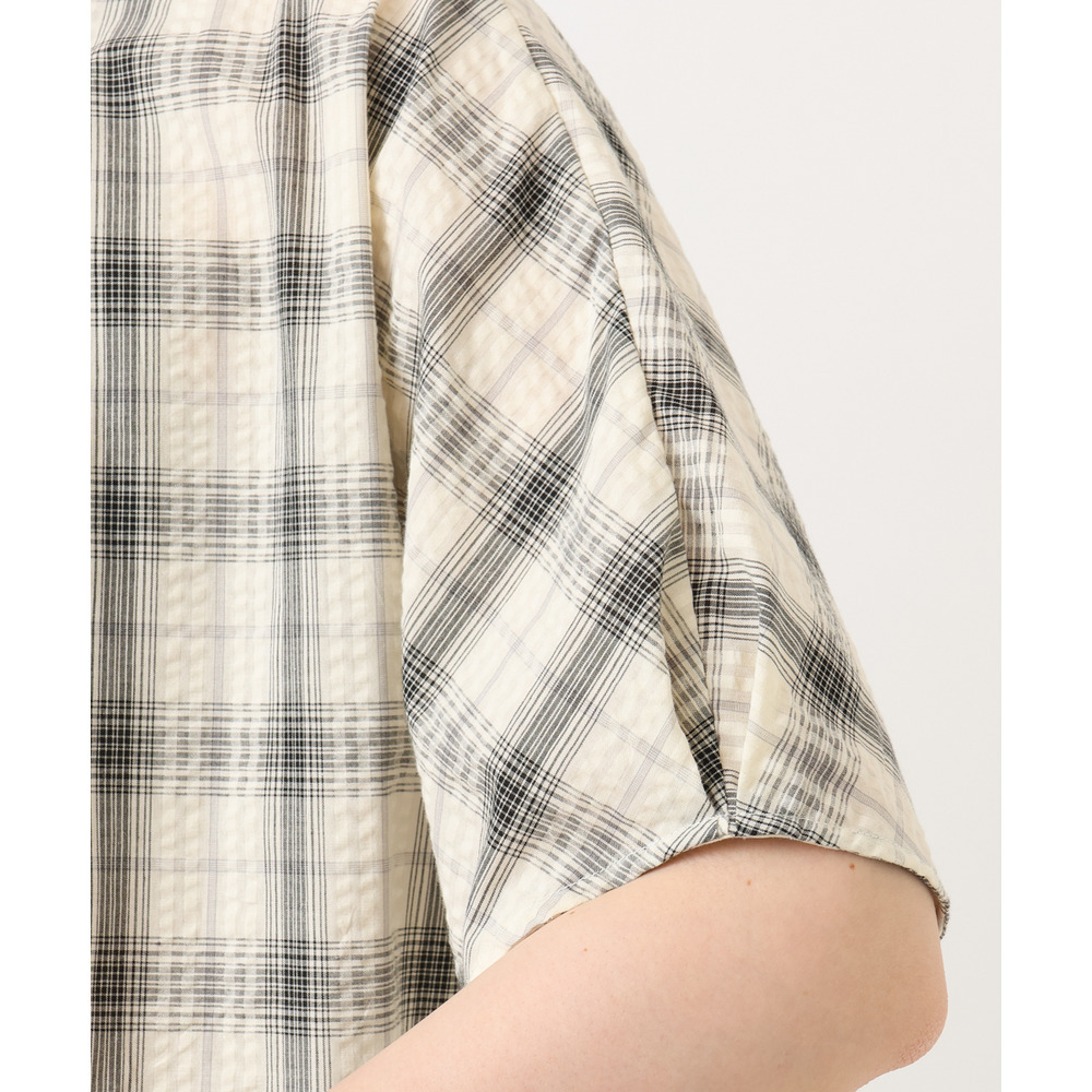 サッカー風のストライプドビー生地を使用し、肌離れの良いさらっとした風合いが魅力のブラウス。