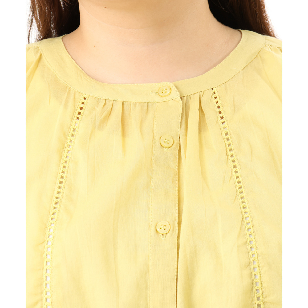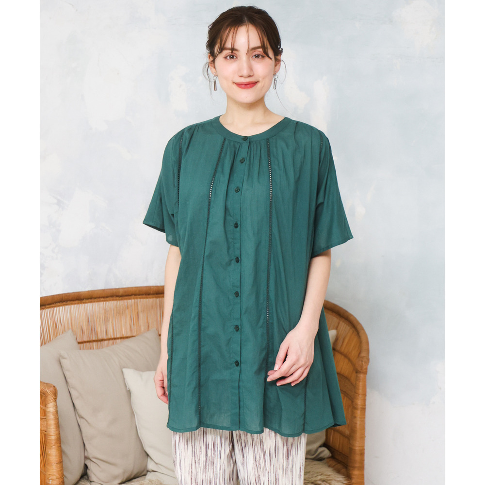 さらっと涼しいインド綿素材に、かぎ針風のハシゴレースを贅沢にあしらった、表情豊かなブラウス。