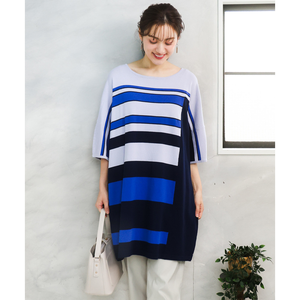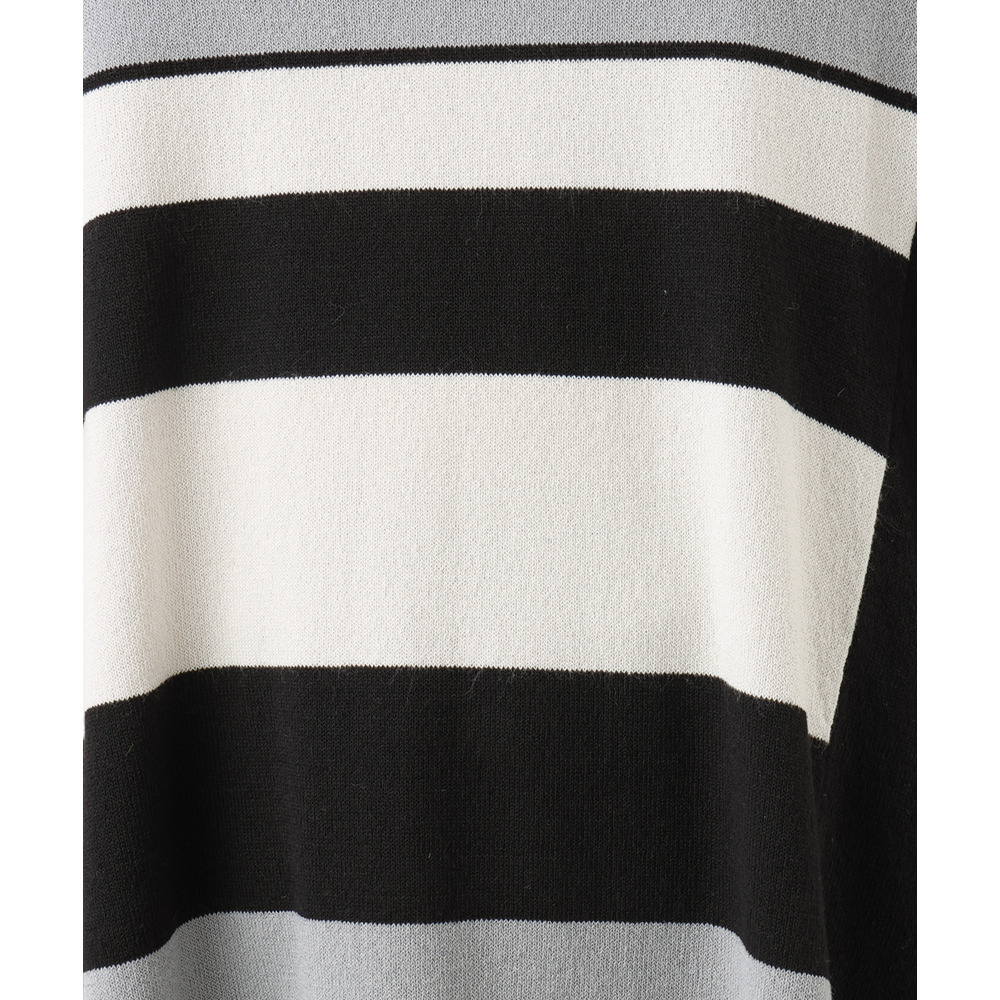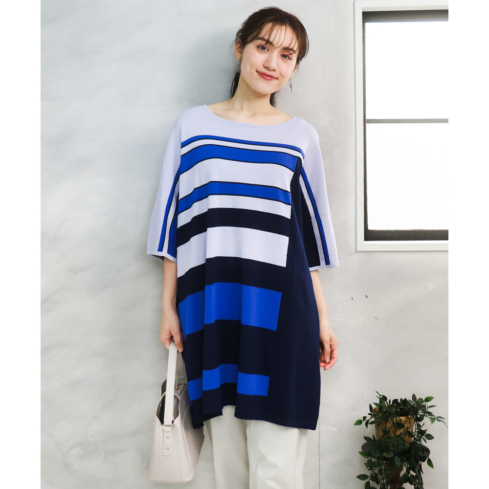 マルチボーダー風に編み立てたニットを、リンキング接ぎで丁寧に仕上げたこだわりの一枚。