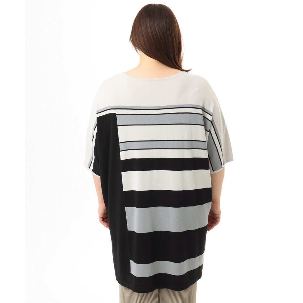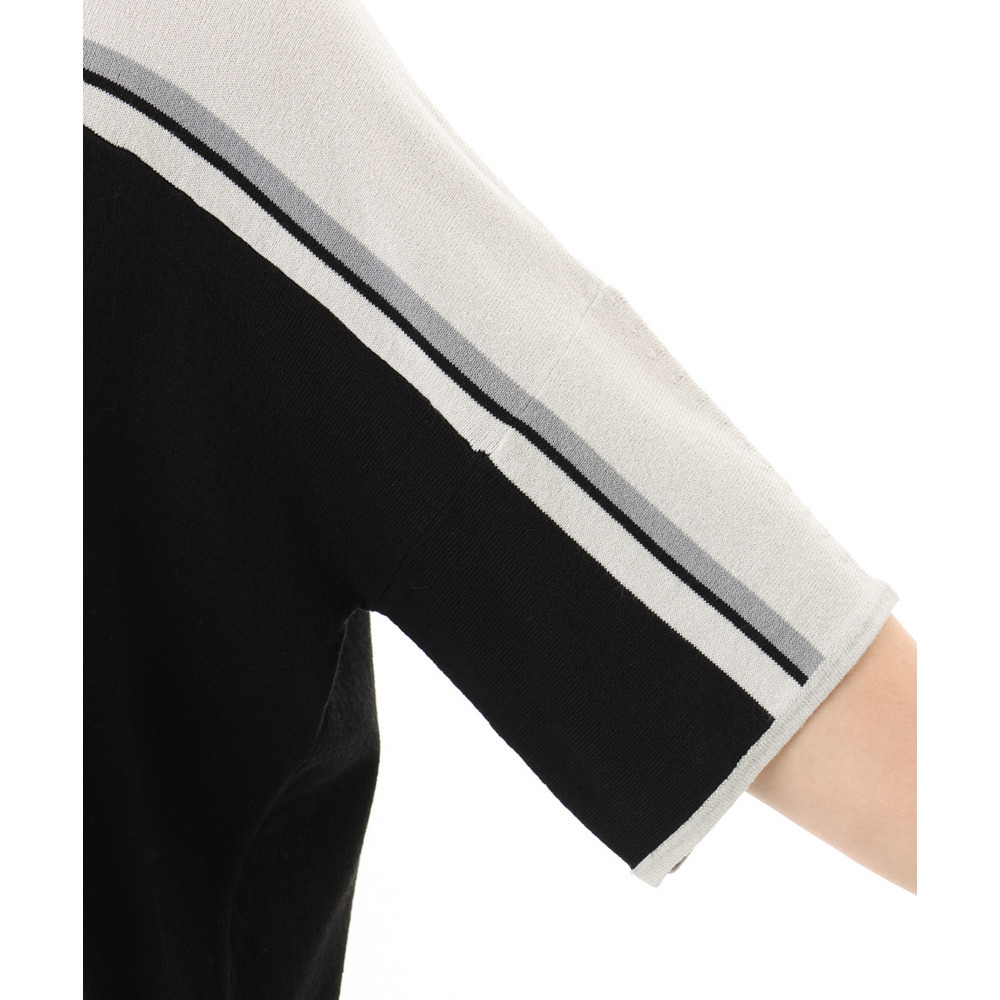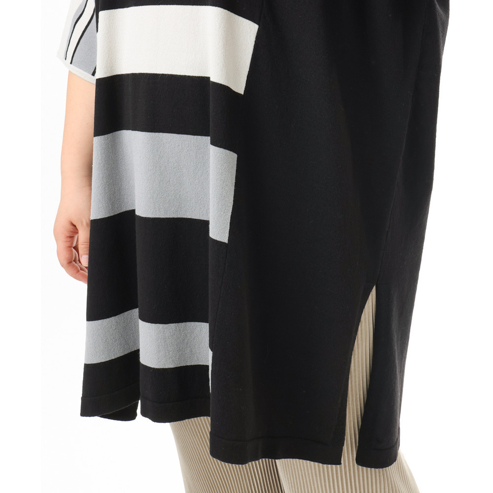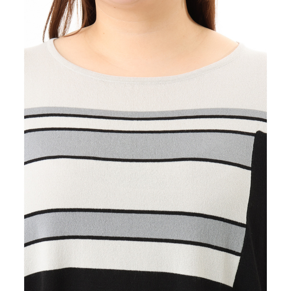マルチボーダー風に編み立てたニットを、リンキング接ぎで丁寧に仕上げたこだわりの一枚。