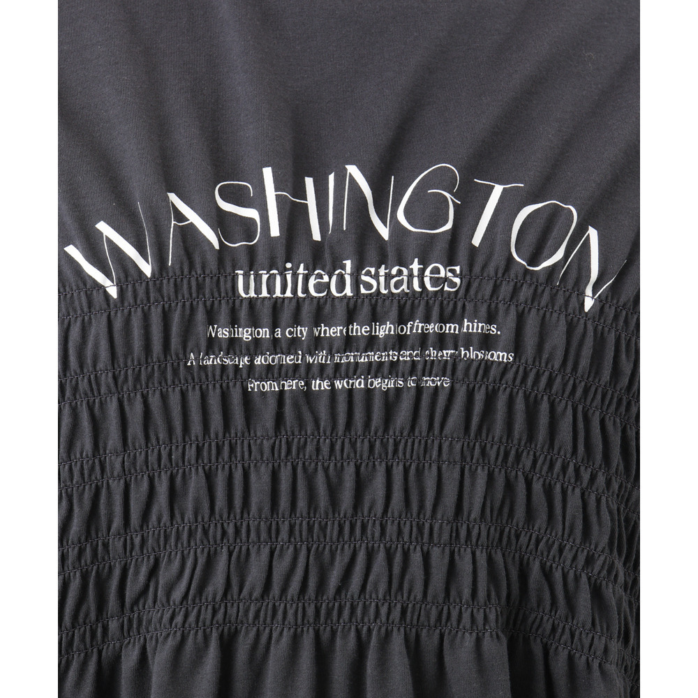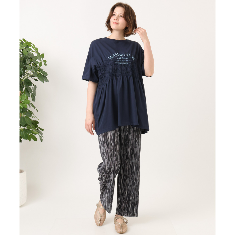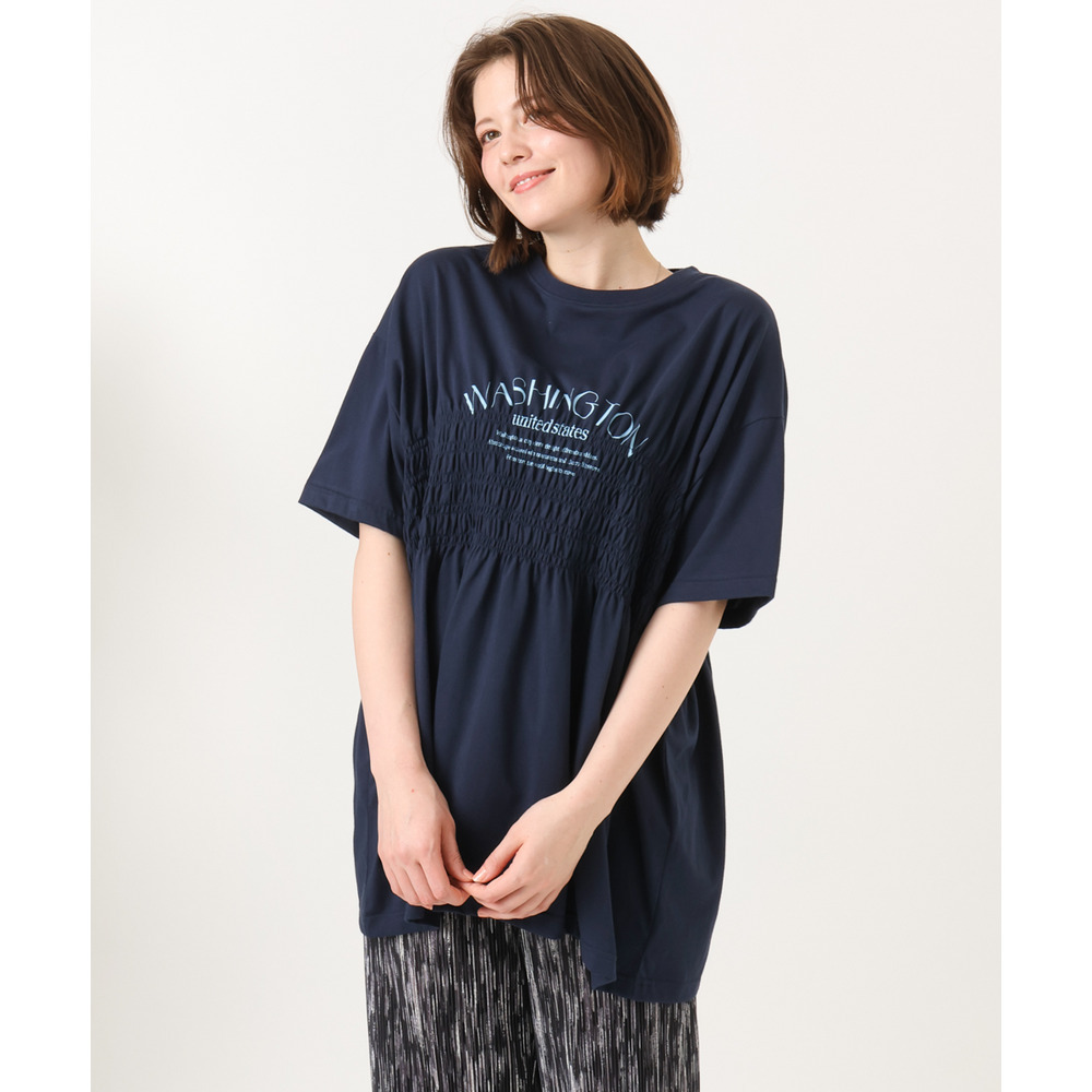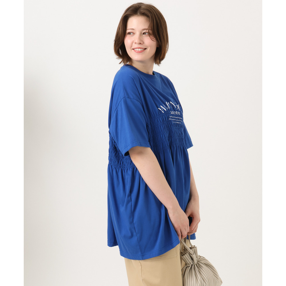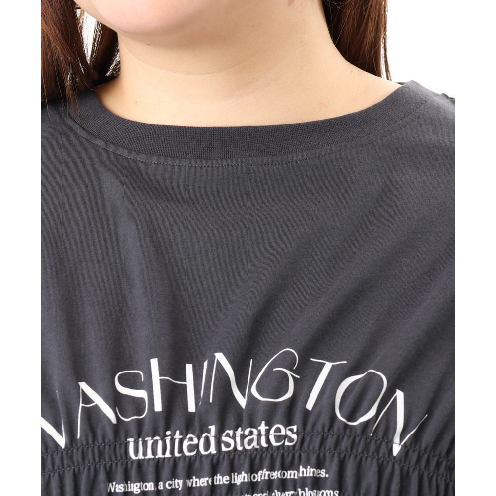 ロゴプリント入りでカジュアルな雰囲気ながら、シャーリングで女性らしいニュアンスをプラス。