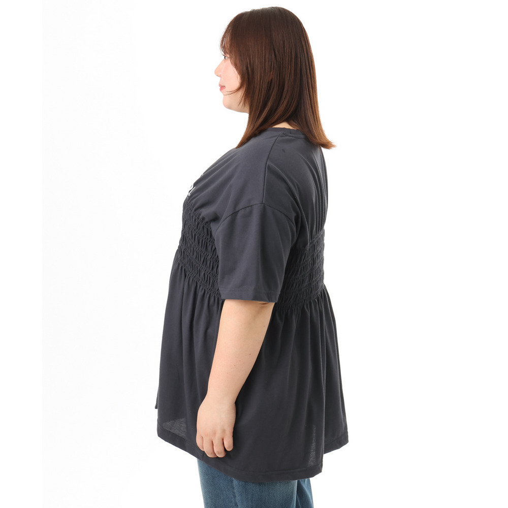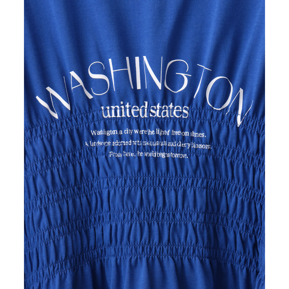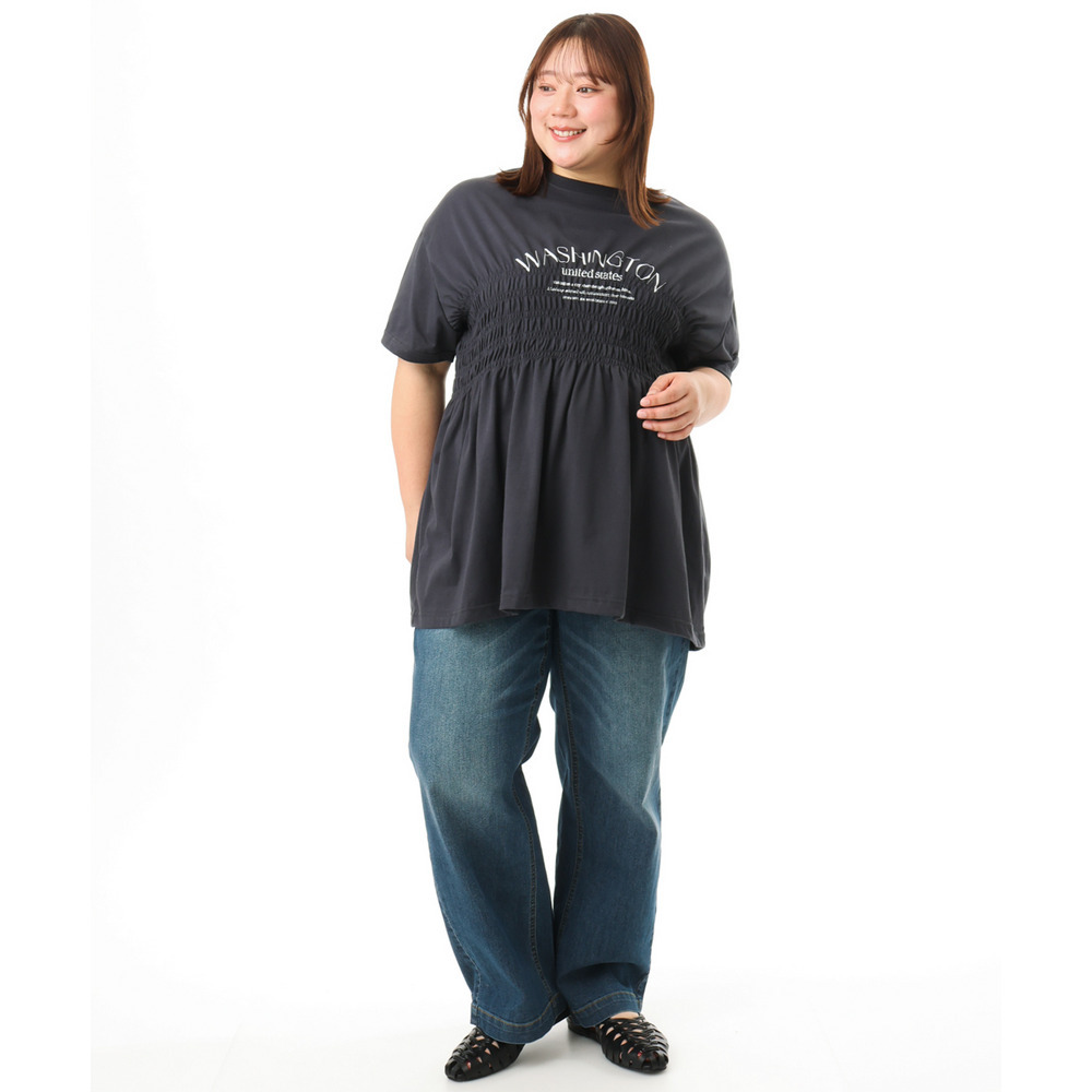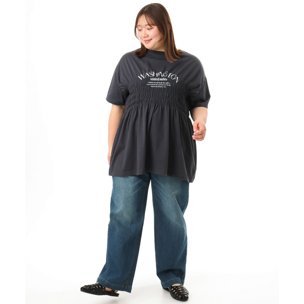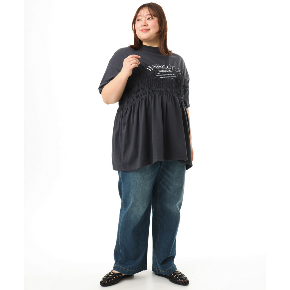 ロゴプリント入りでカジュアルな雰囲気ながら、シャーリングで女性らしいニュアンスをプラス。