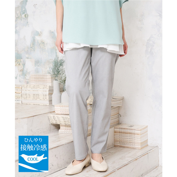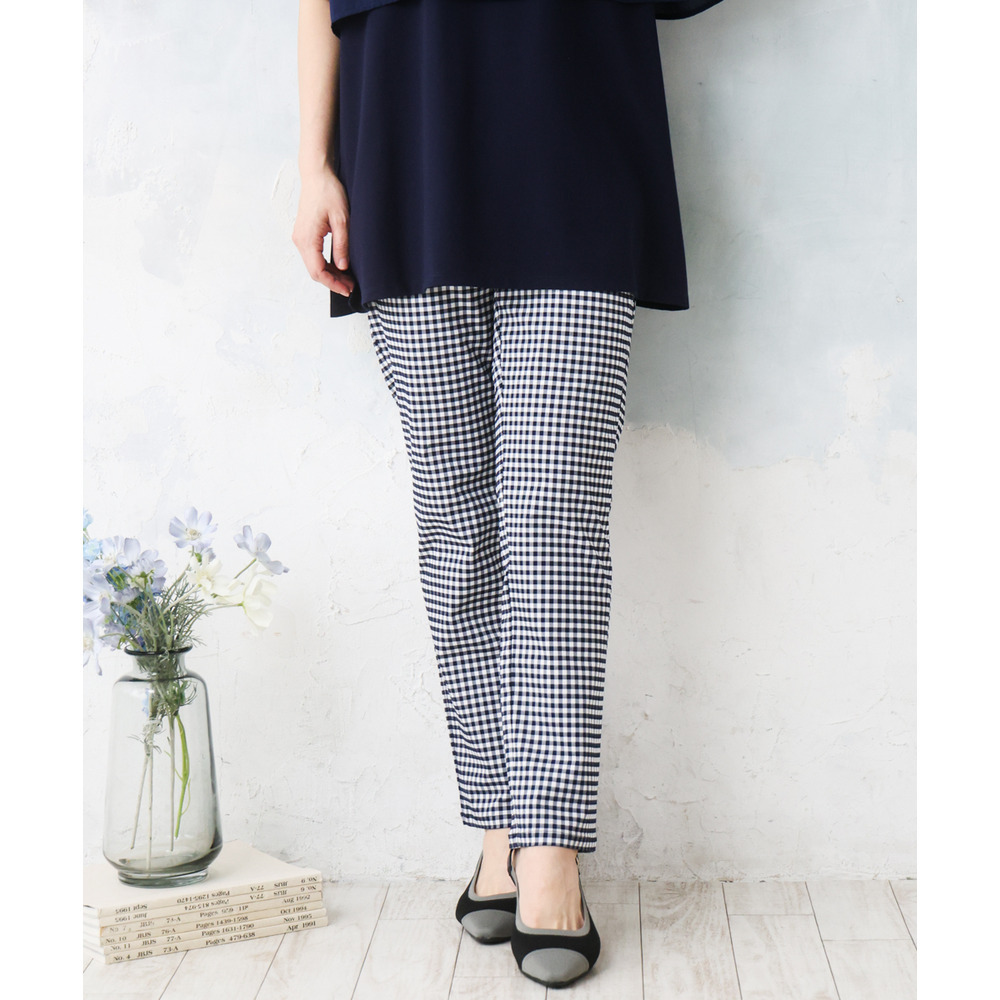 ウエストぐるりゴム入りで、楽ちんにはけるスリムパンツ。