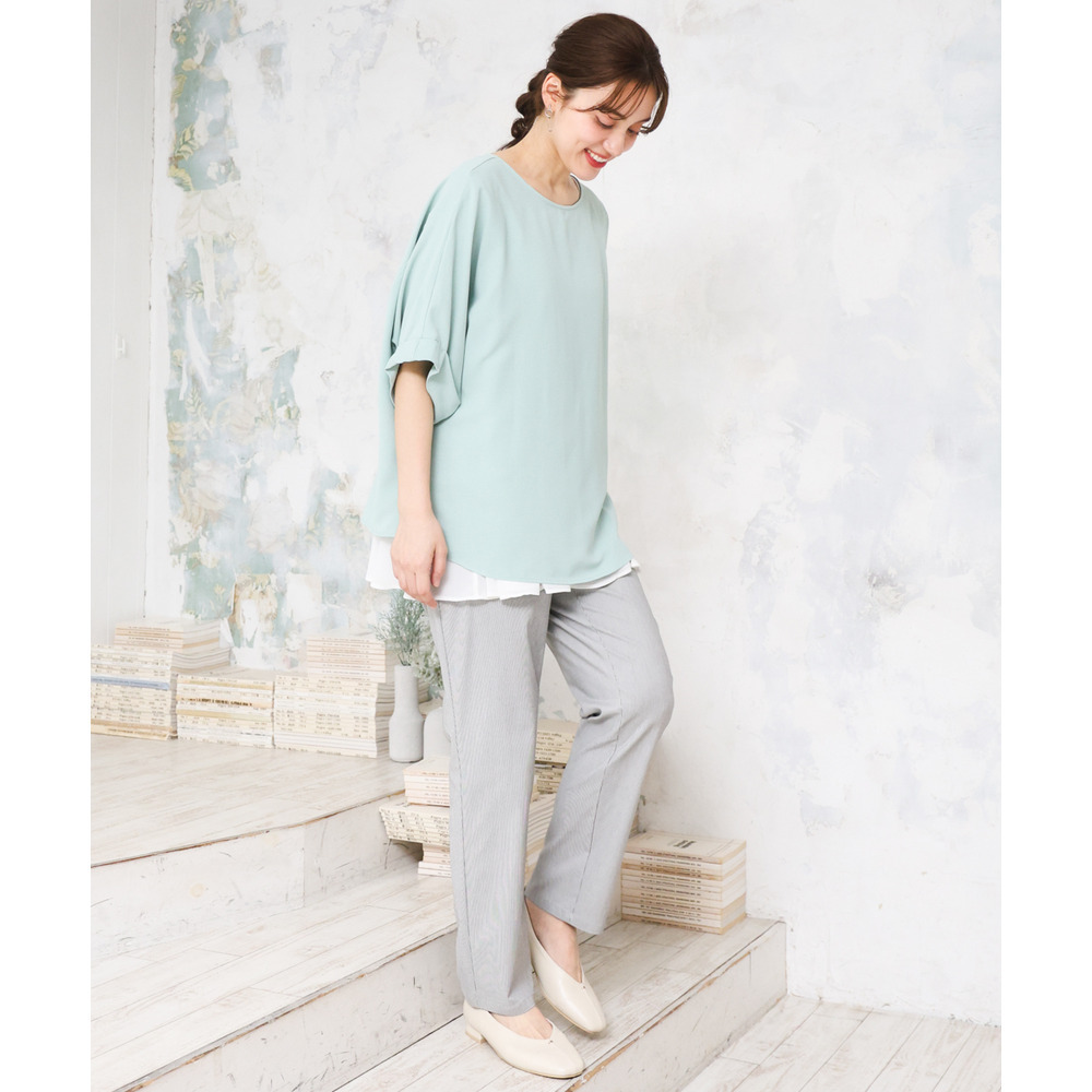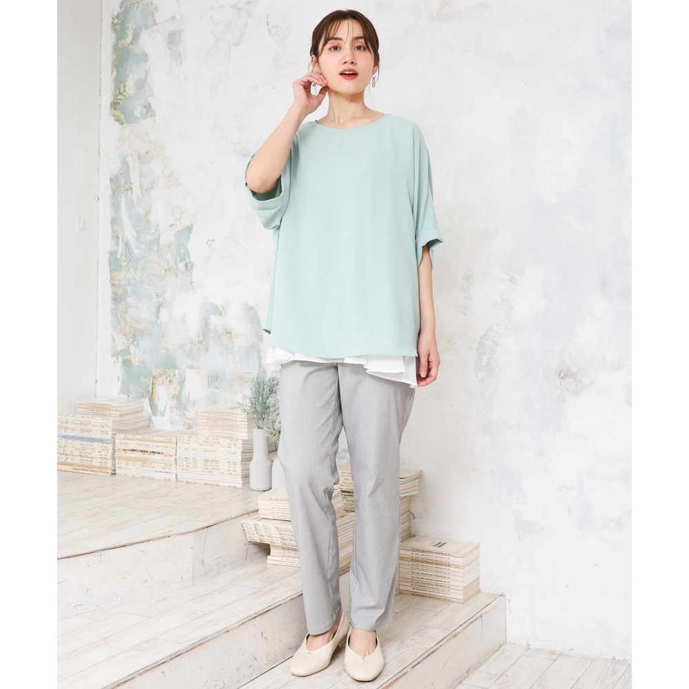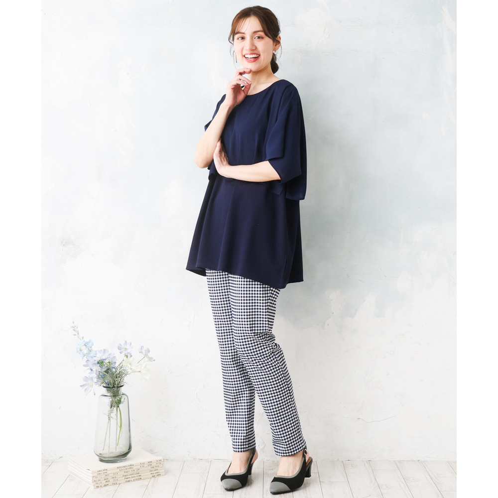 着丈長めのチュニックやシャツと合わせるとすっきりとした着こなしに。