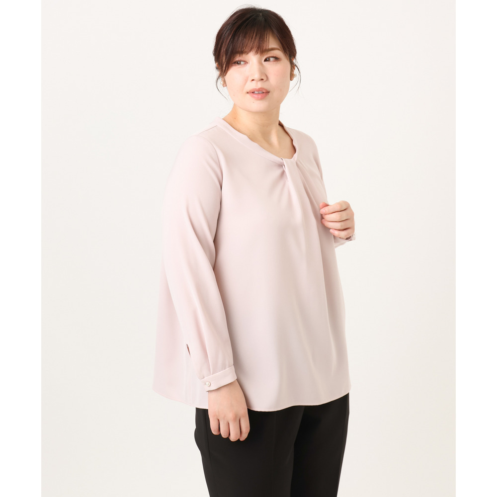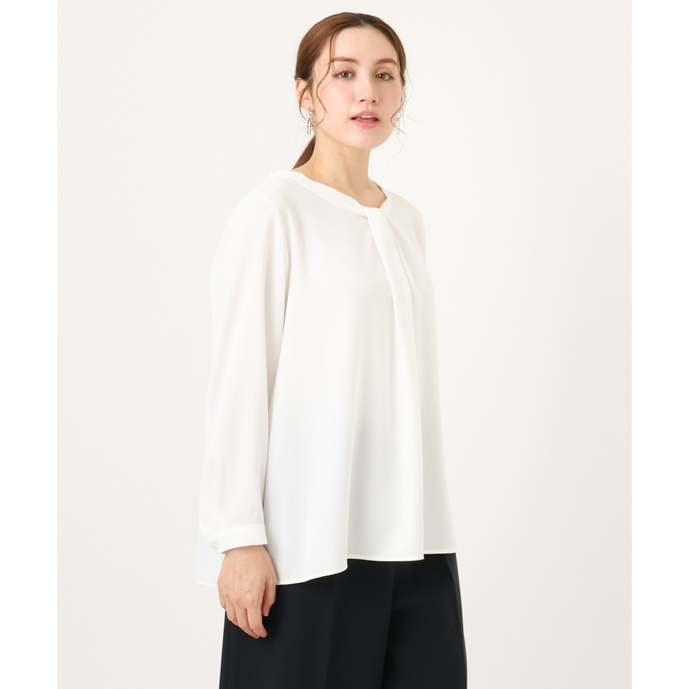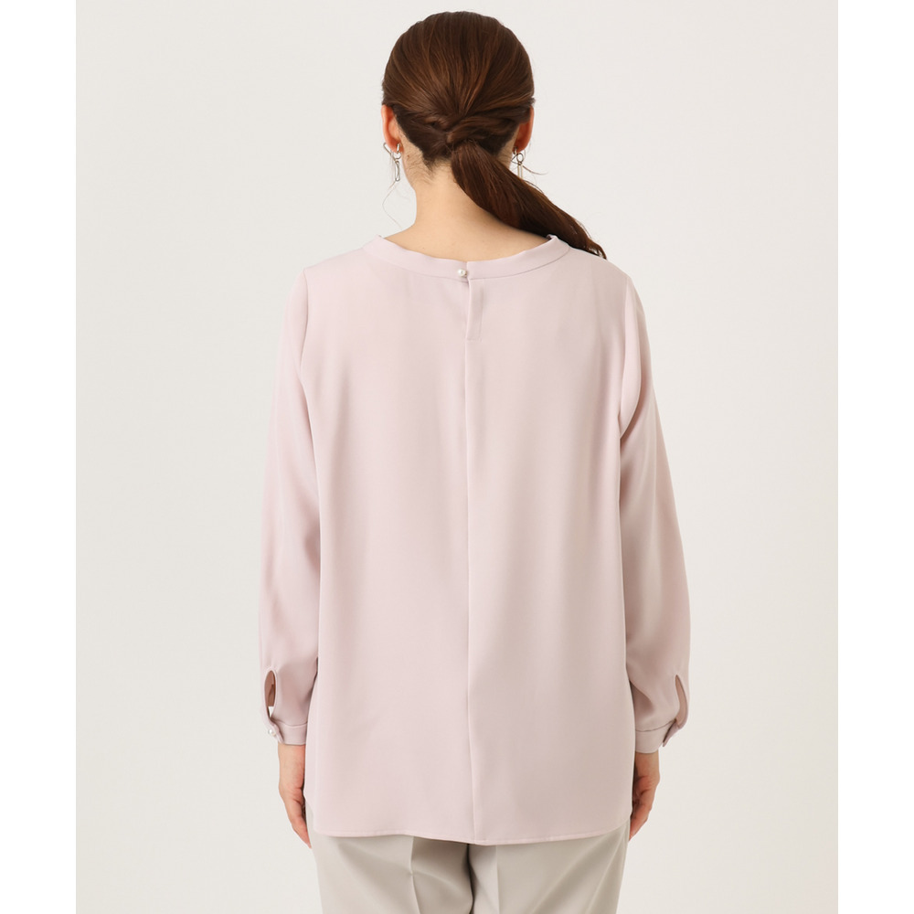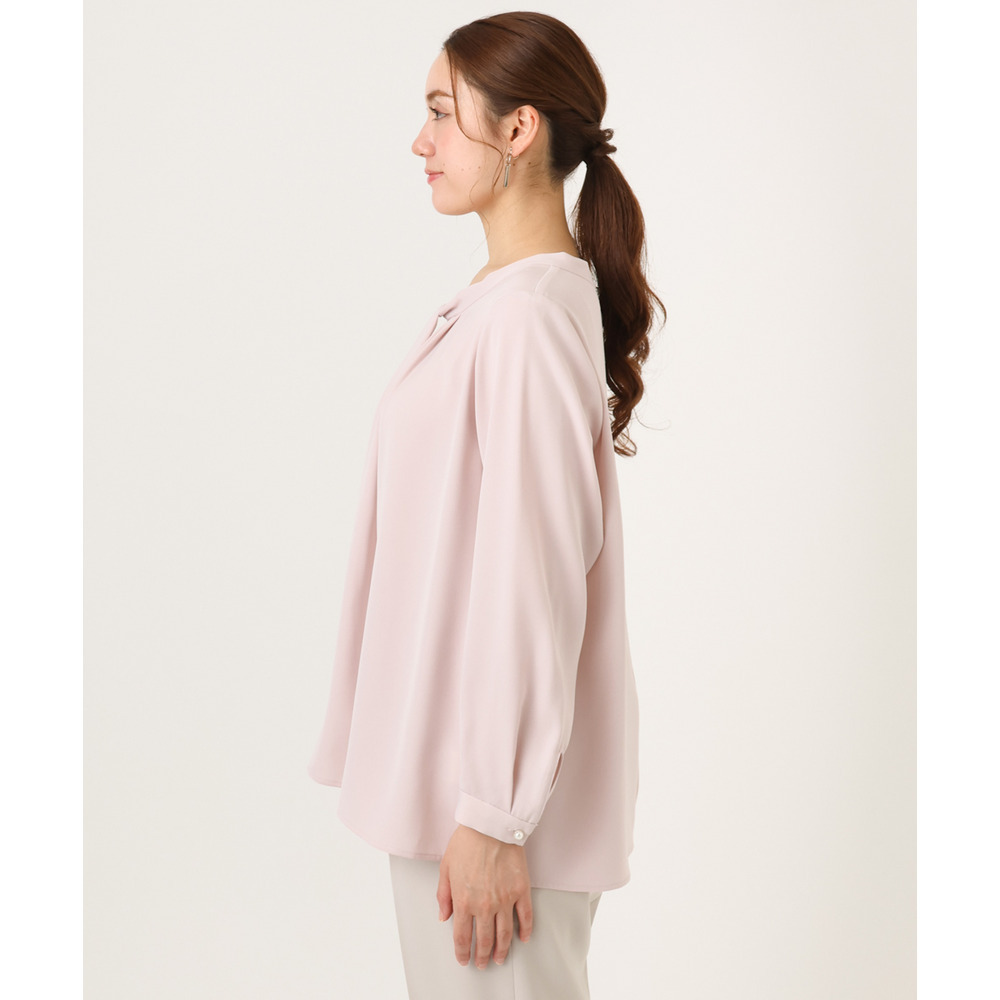 首元をすっきり見せる洗練された印象の上品なブラウスです。
