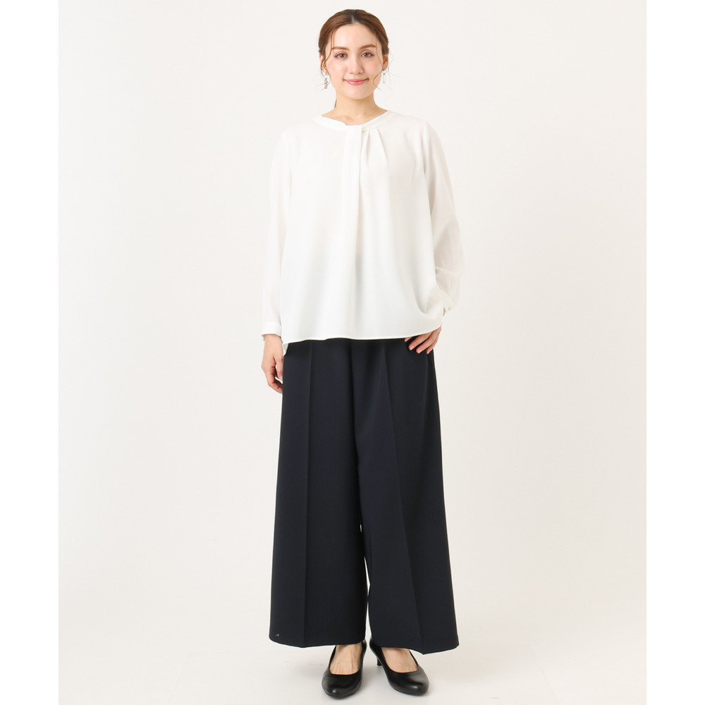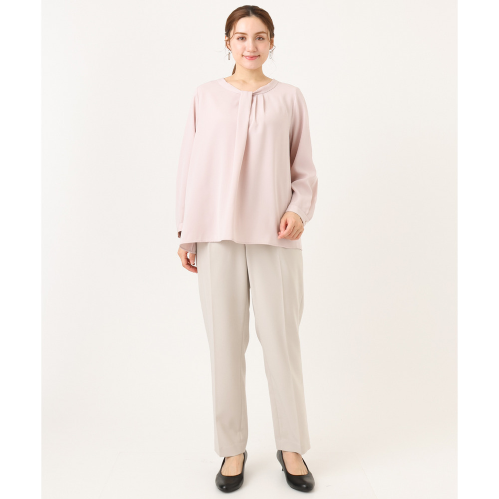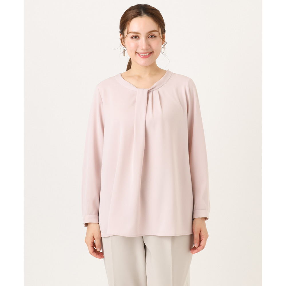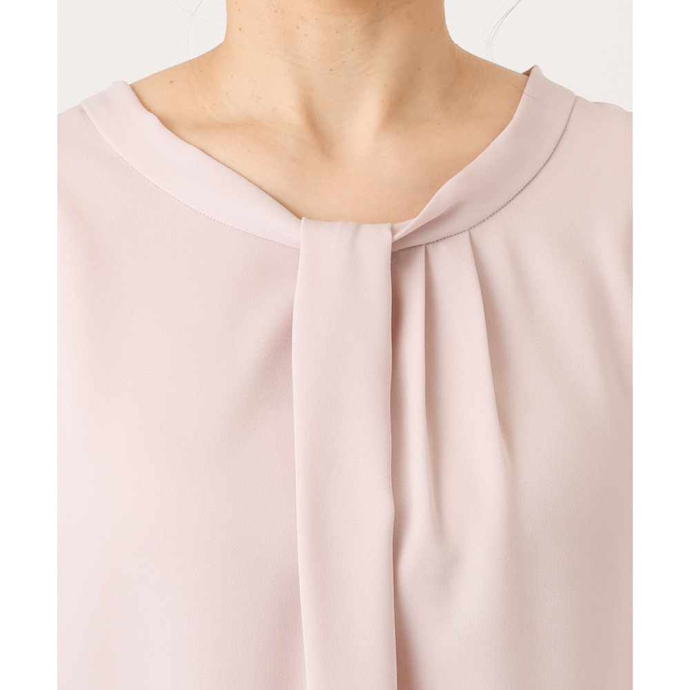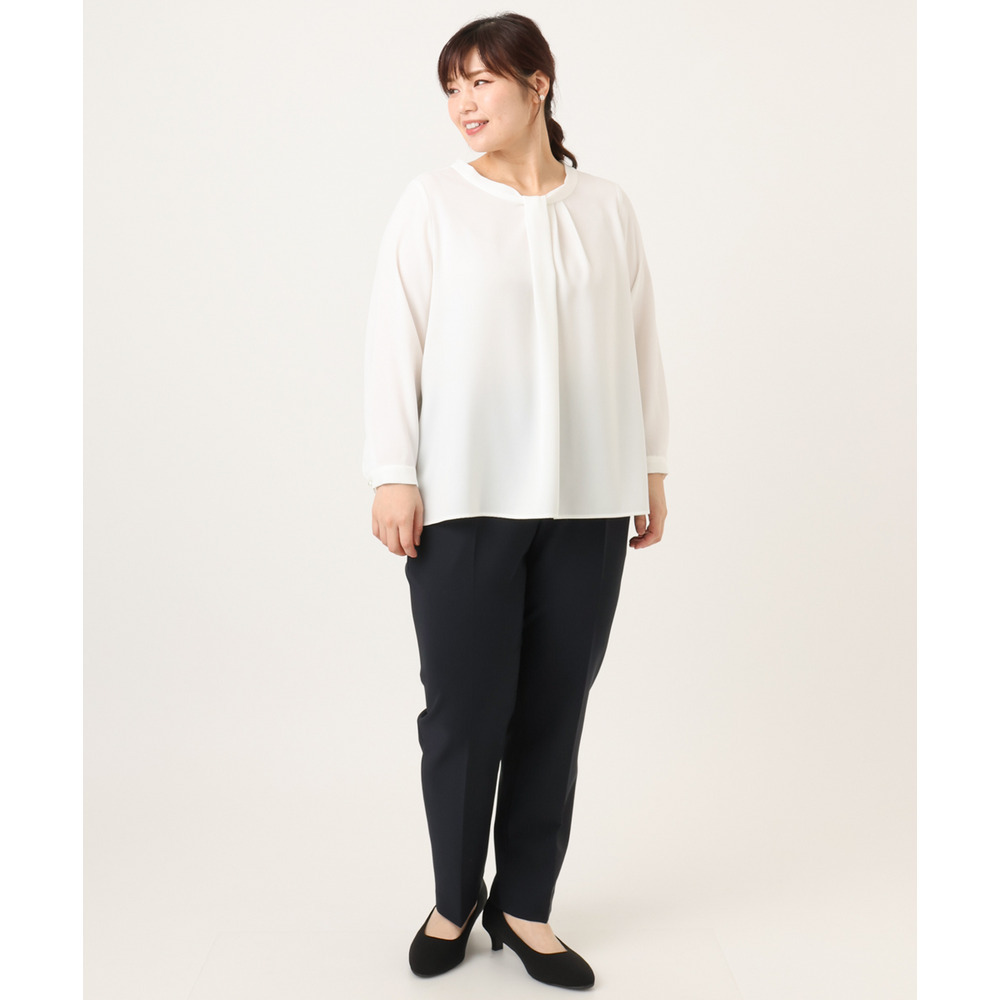 首元をすっきり見せる洗練された印象の上品なブラウスです。