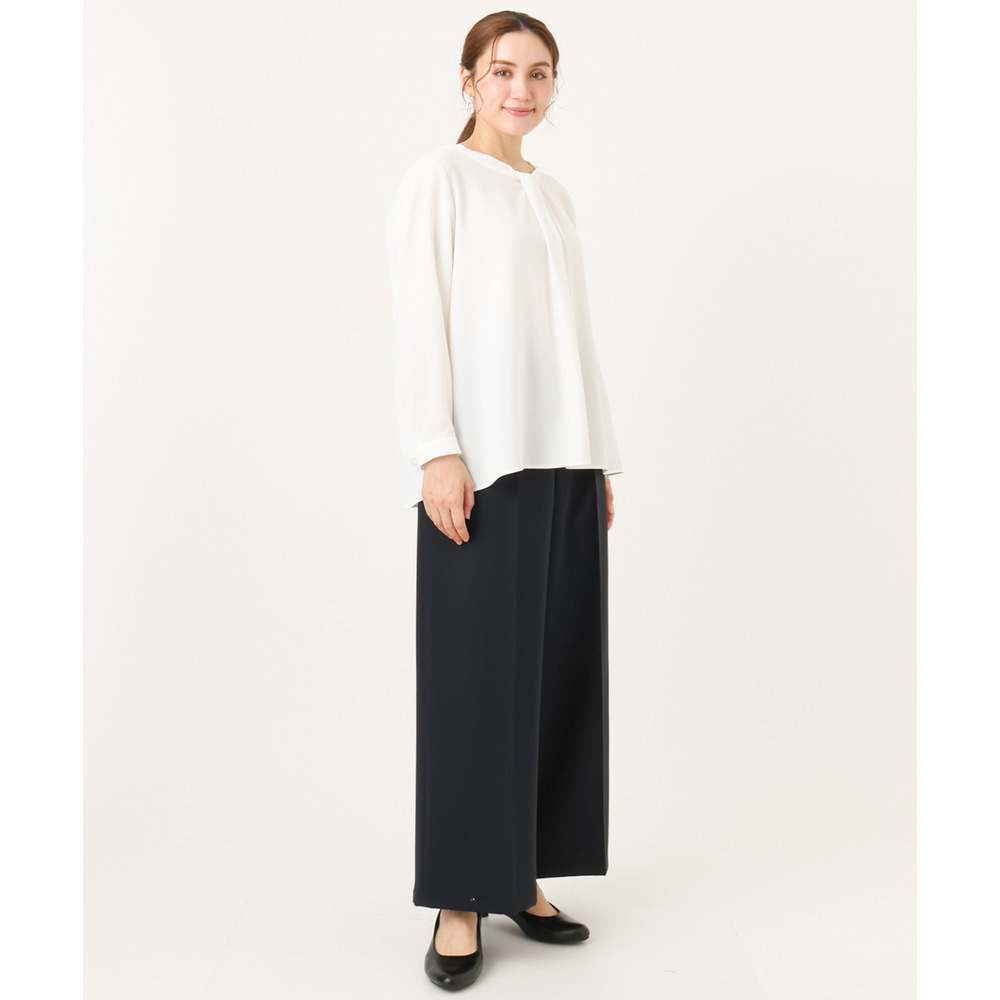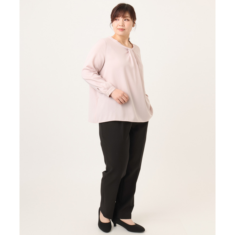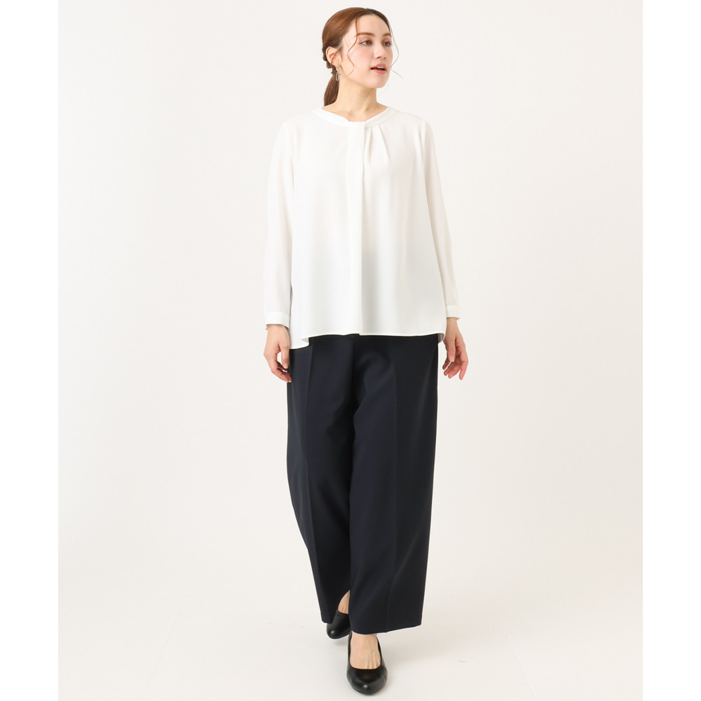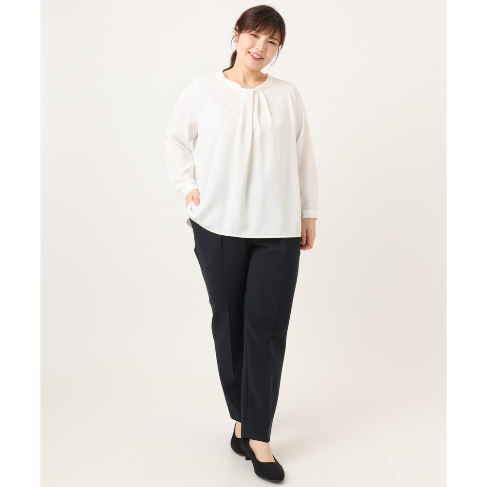 首元をすっきり見せる洗練された印象の上品なブラウスです。