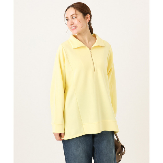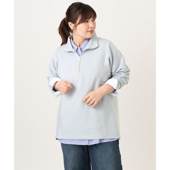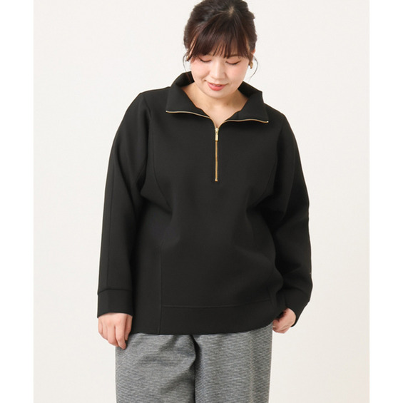 ジップを上まで閉じたり、深めに開けたりとお好みで印象を変えて楽しめます。
