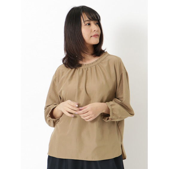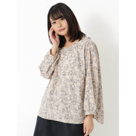 【L-4L】【大きいサイズ】ネックフリルプリントブラウス