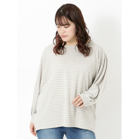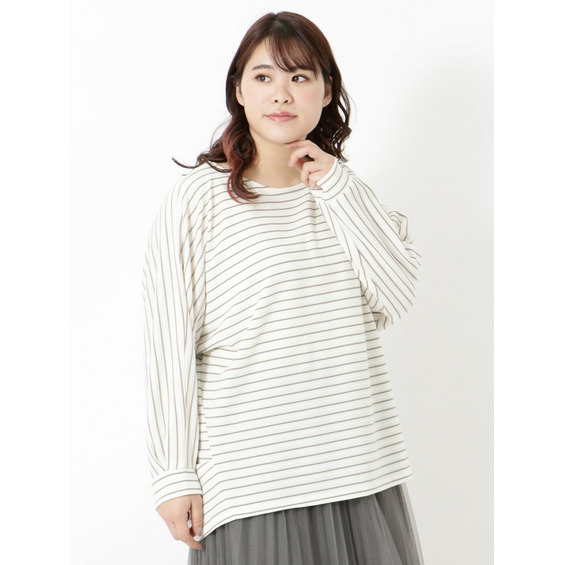 【L-4L】【大きいサイズ】ボーダードルマンカットソー