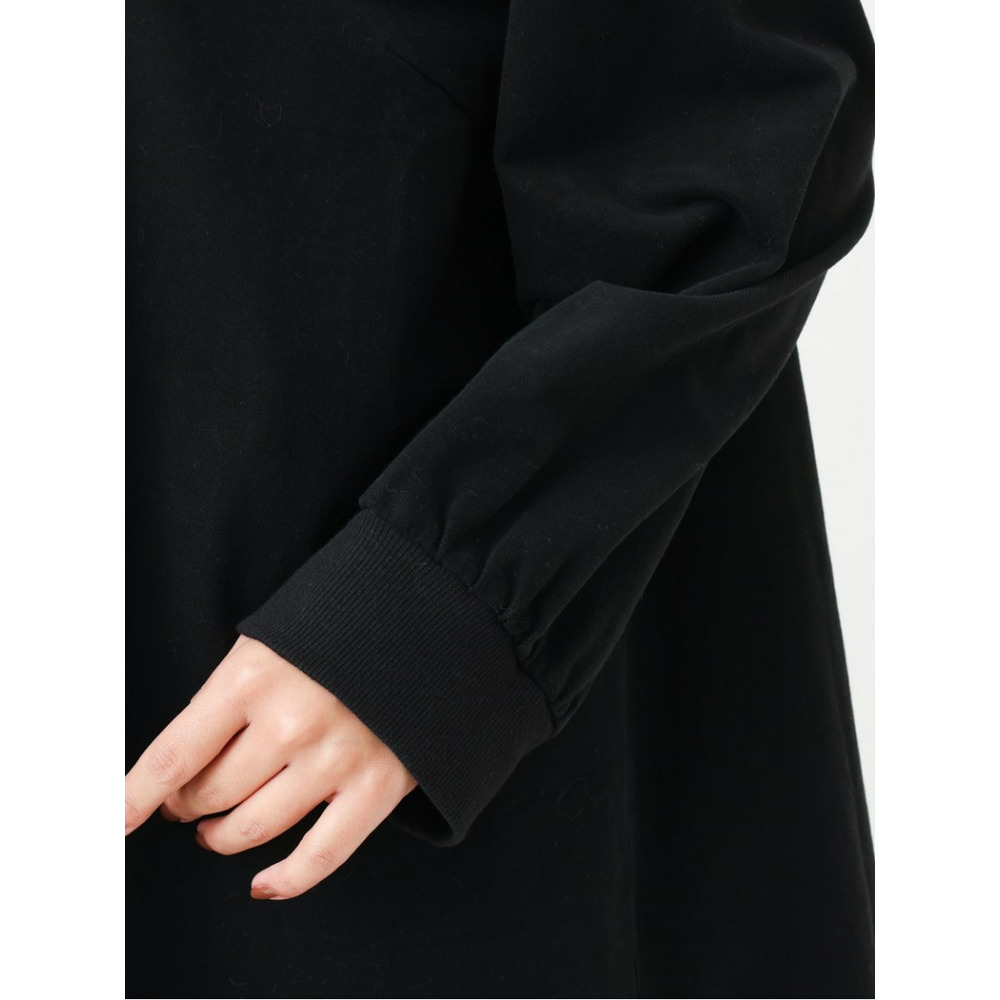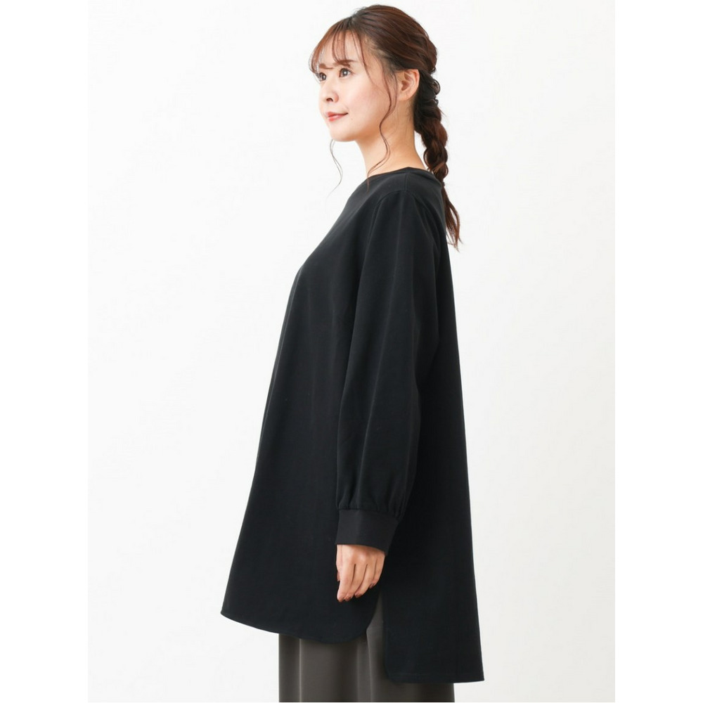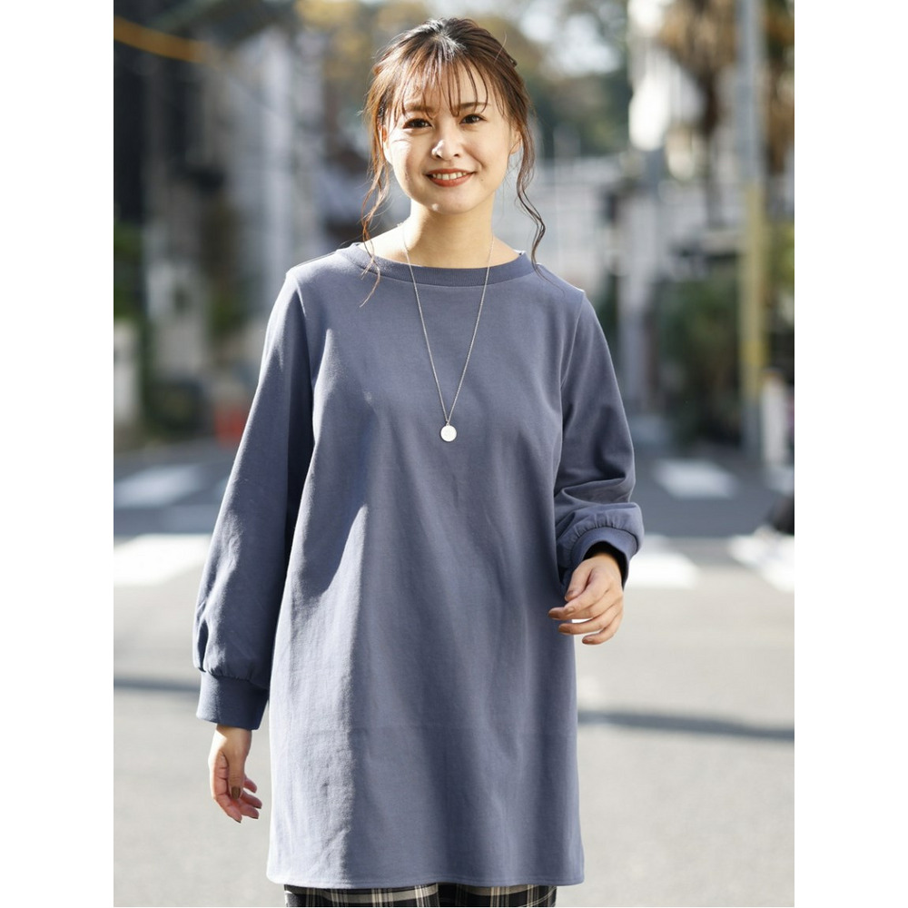 襟ぐりと袖がリブ使いのジャージのチュニックワンピース。