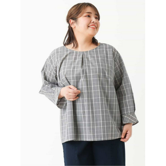 さらっとドライなポリエステルコットンの先染めチェック素材を使用したブラウス。
