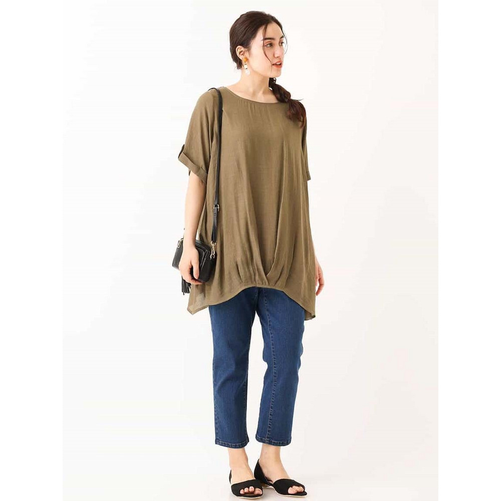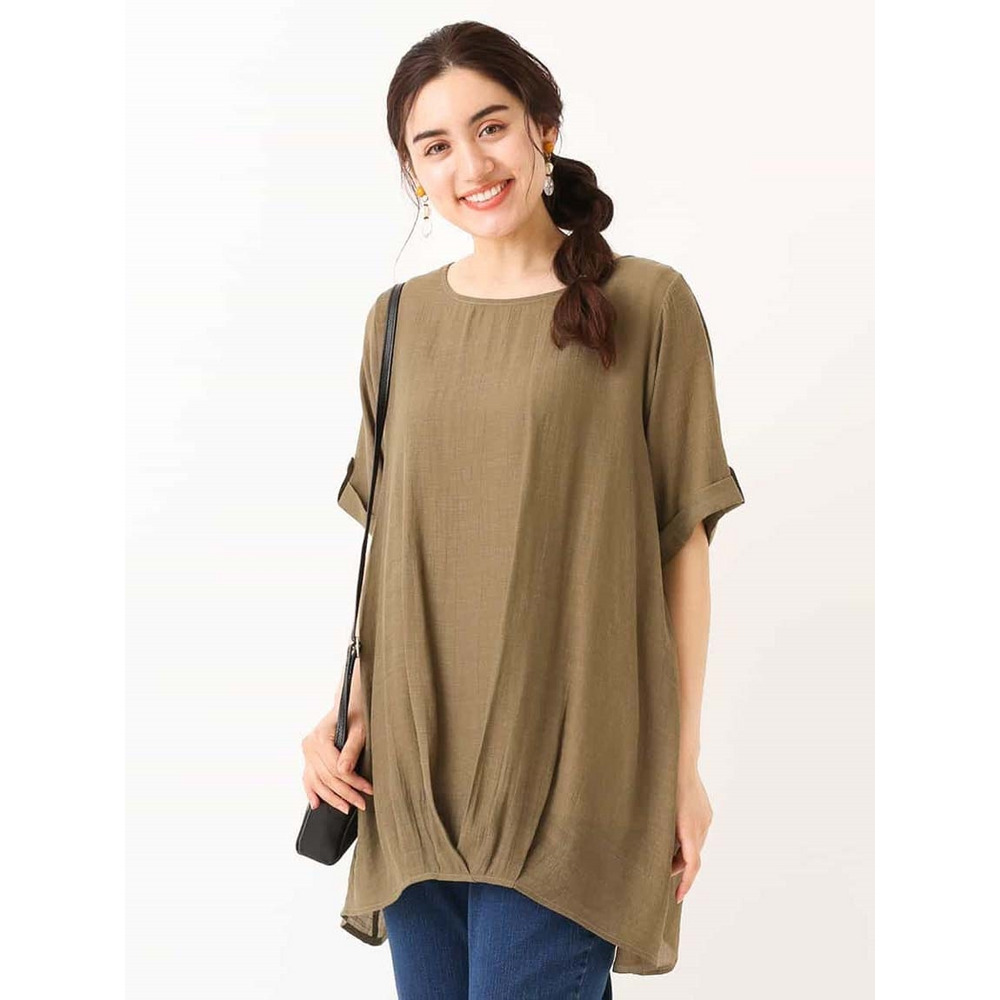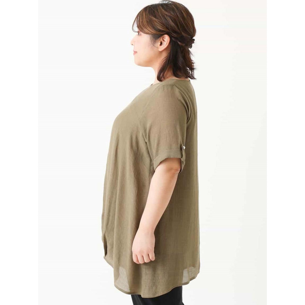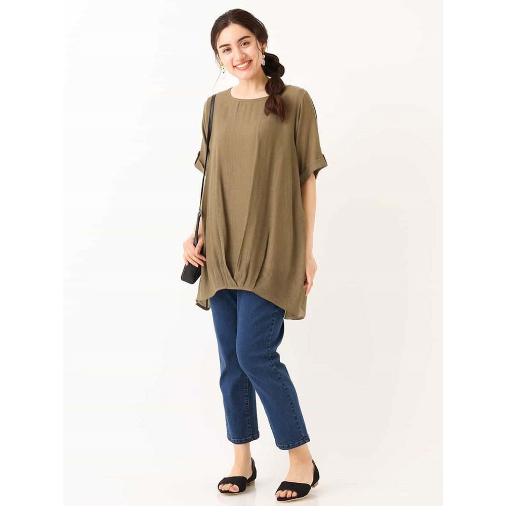 さらりとした軽やかなスラブ調の生地で仕立てた長め丈トップス。