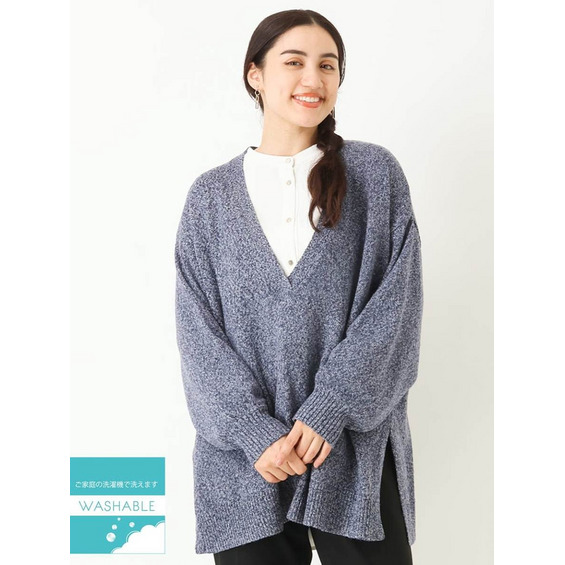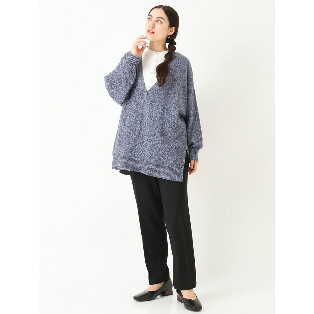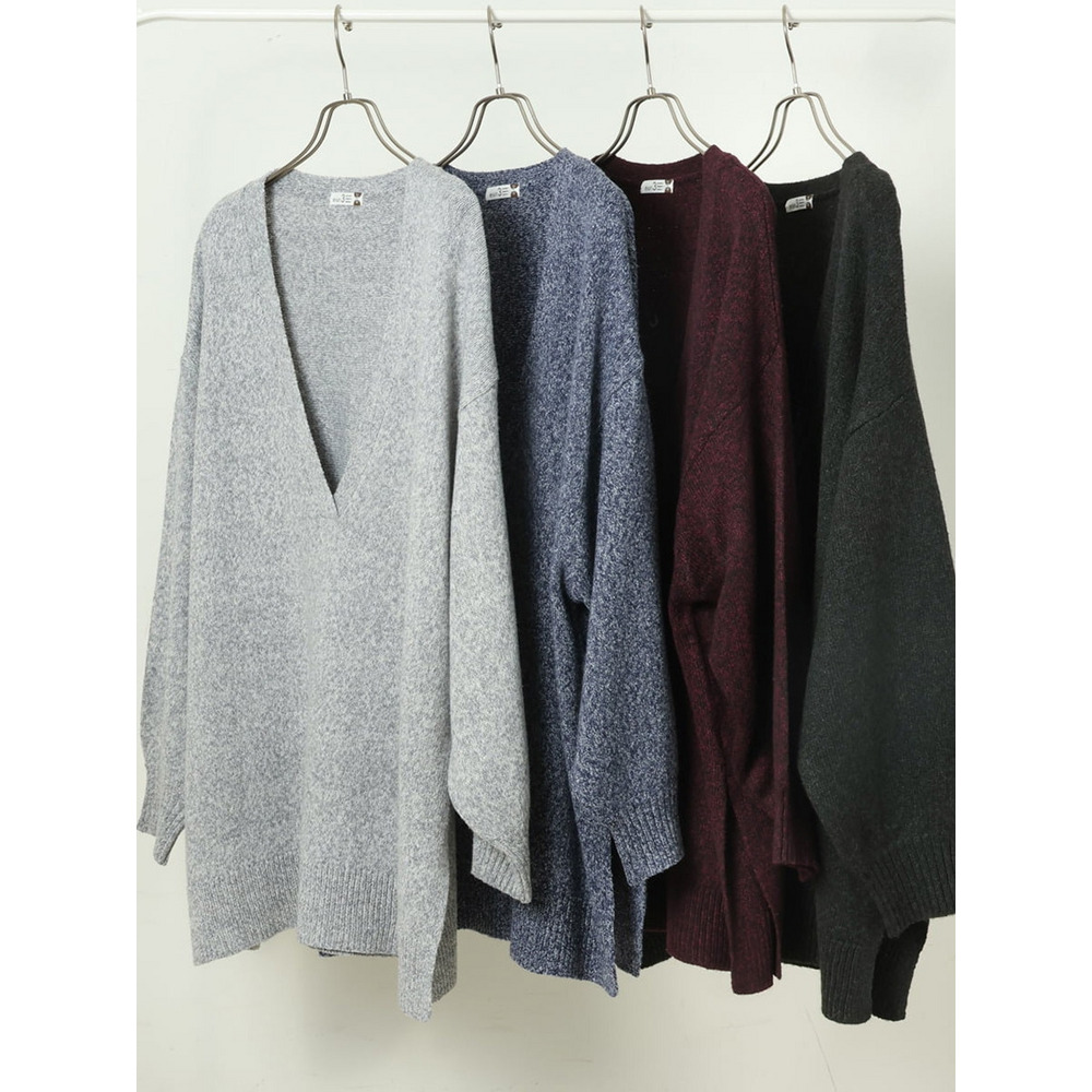 深いVネックが特徴のレイヤード対応のニットデザイン。