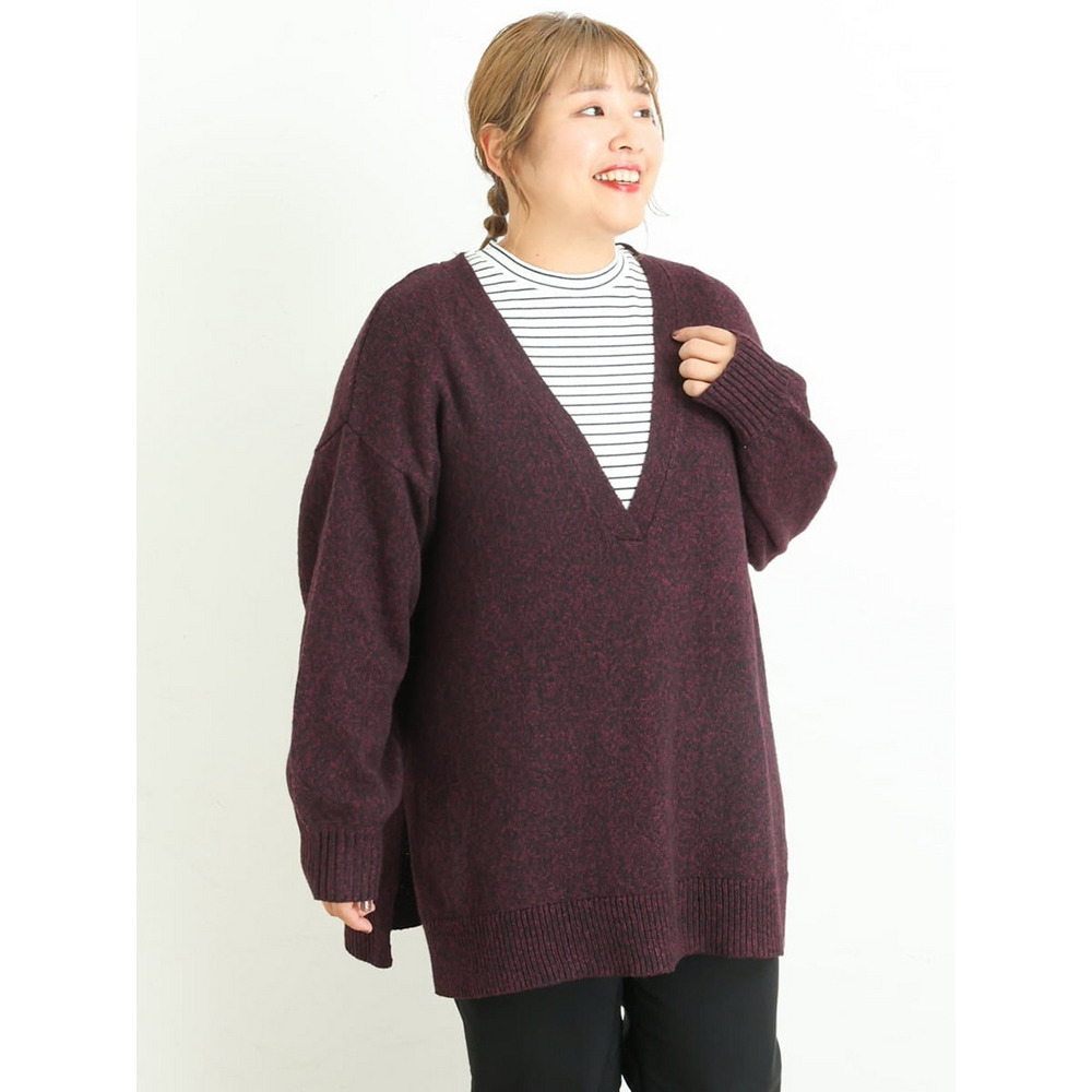 • 【大きいサイズ】深Vネックニットチュニック1