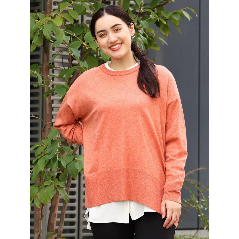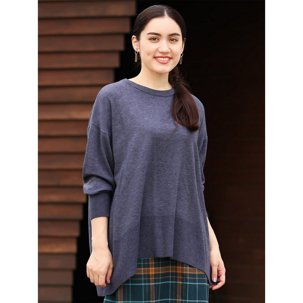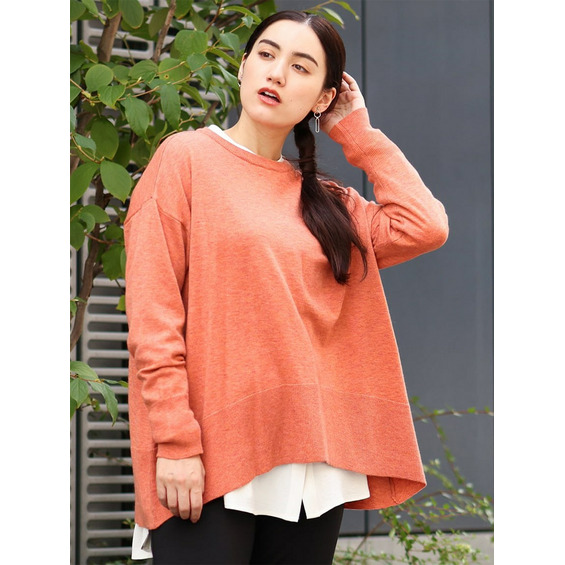 裾のリブを太めにつくり、バックスリットをいれているのでインナーをレイヤードした着こなしもおすすめ!