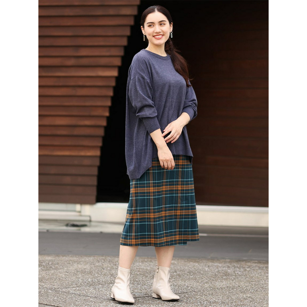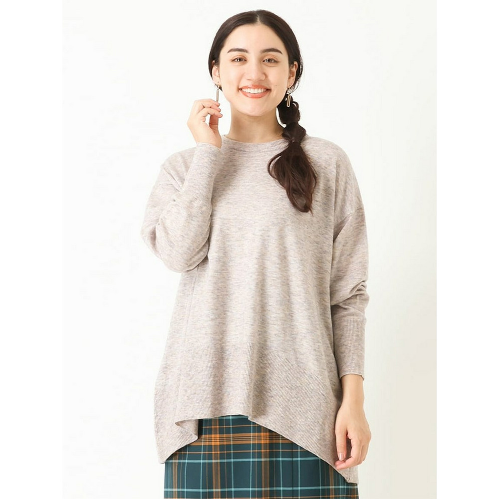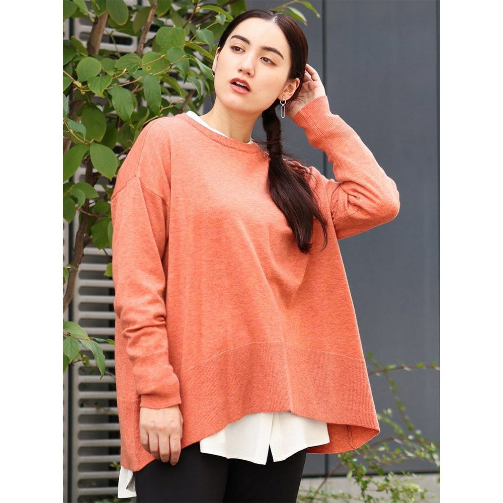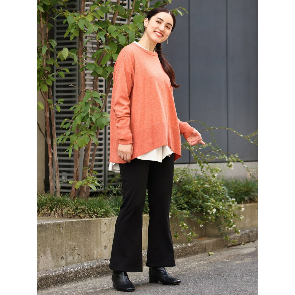 着丈に前後差をつけているので、ボリュームのあるボトムとの合わせにも相性◎