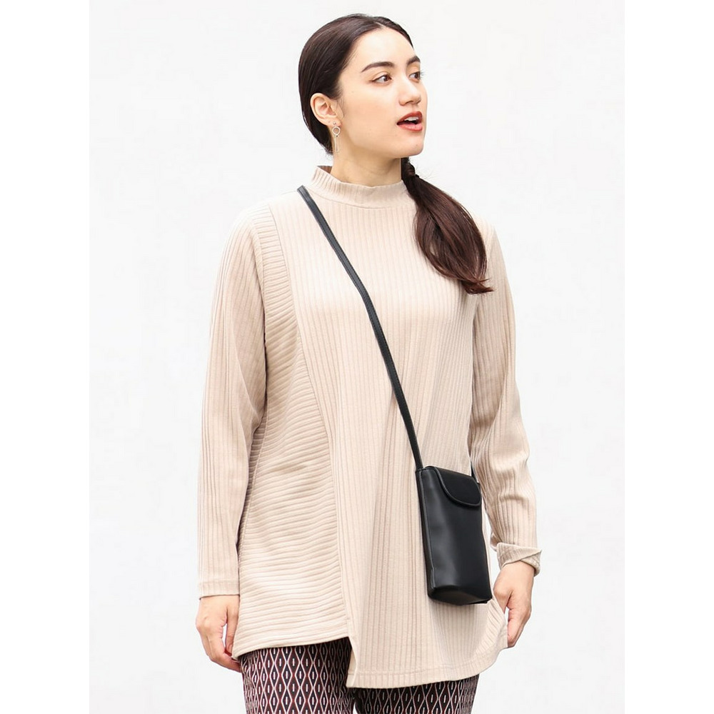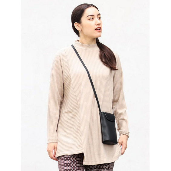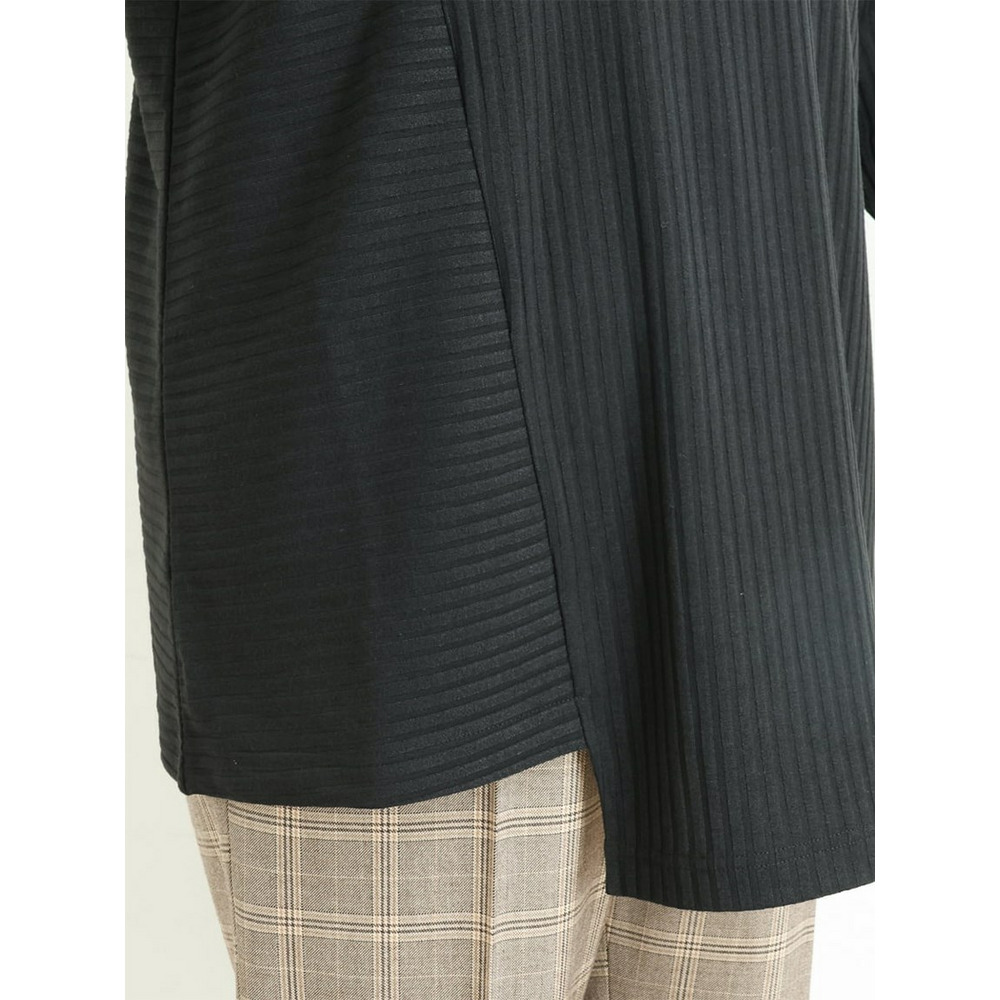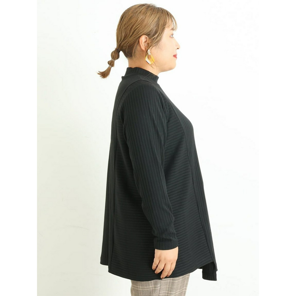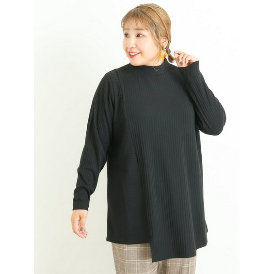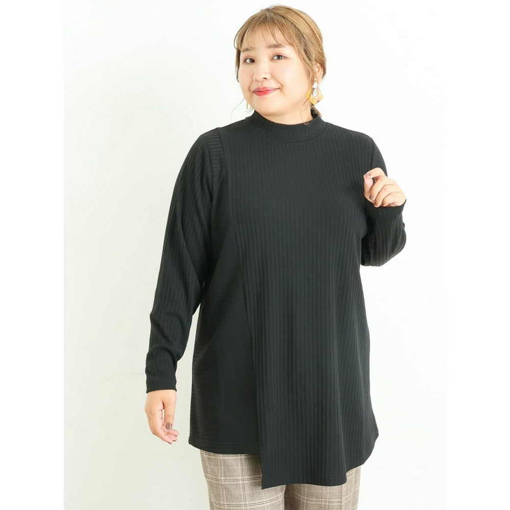 リブを縦地と横地で組み合わせ、切り替え部分に段差をつけることでレイヤード風に仕上げたチュニックカットソー。