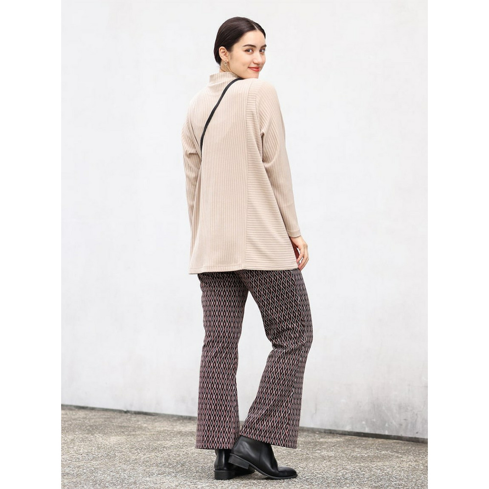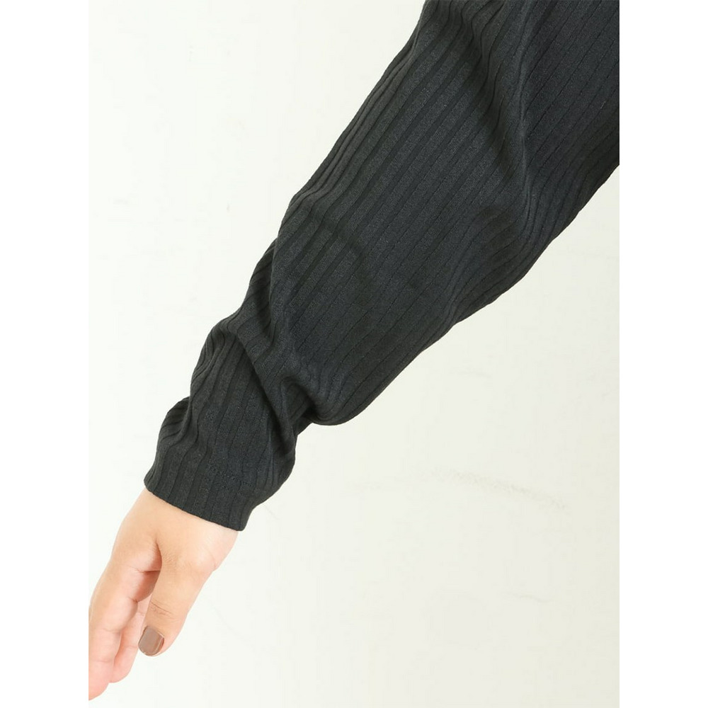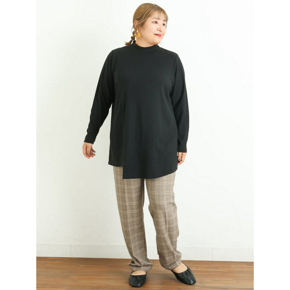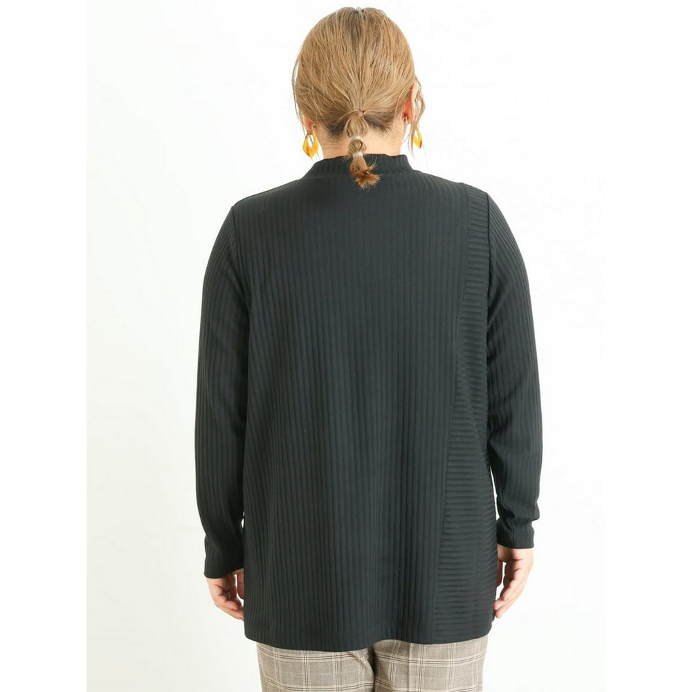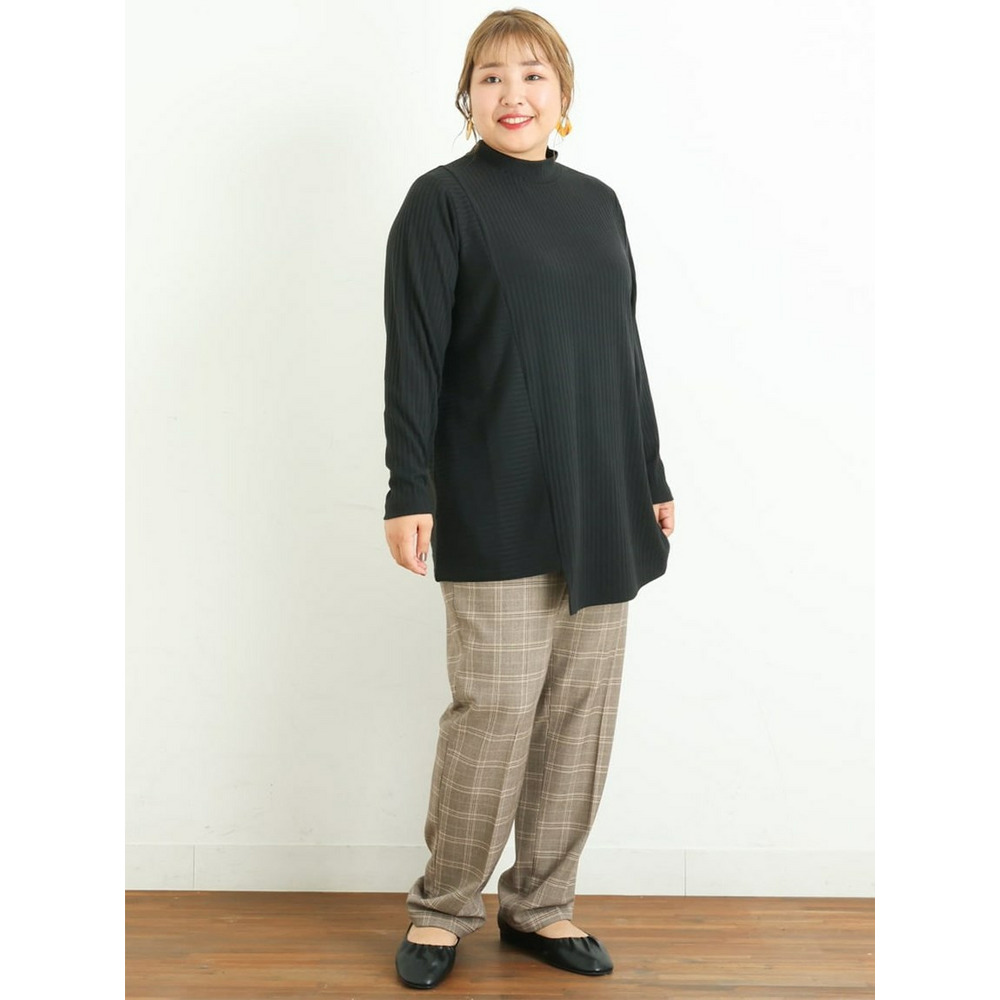 リブを縦地と横地で組み合わせ、切り替え部分に段差をつけることでレイヤード風に仕上げたチュニックカットソー。
