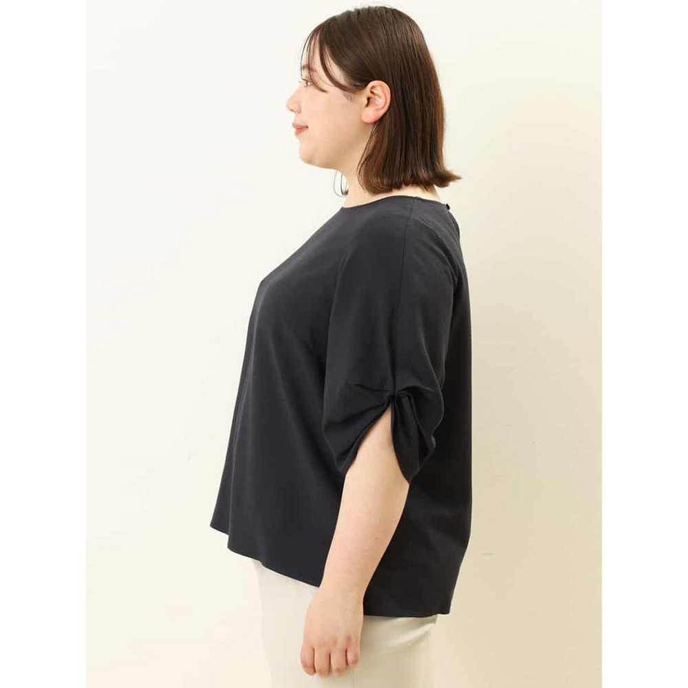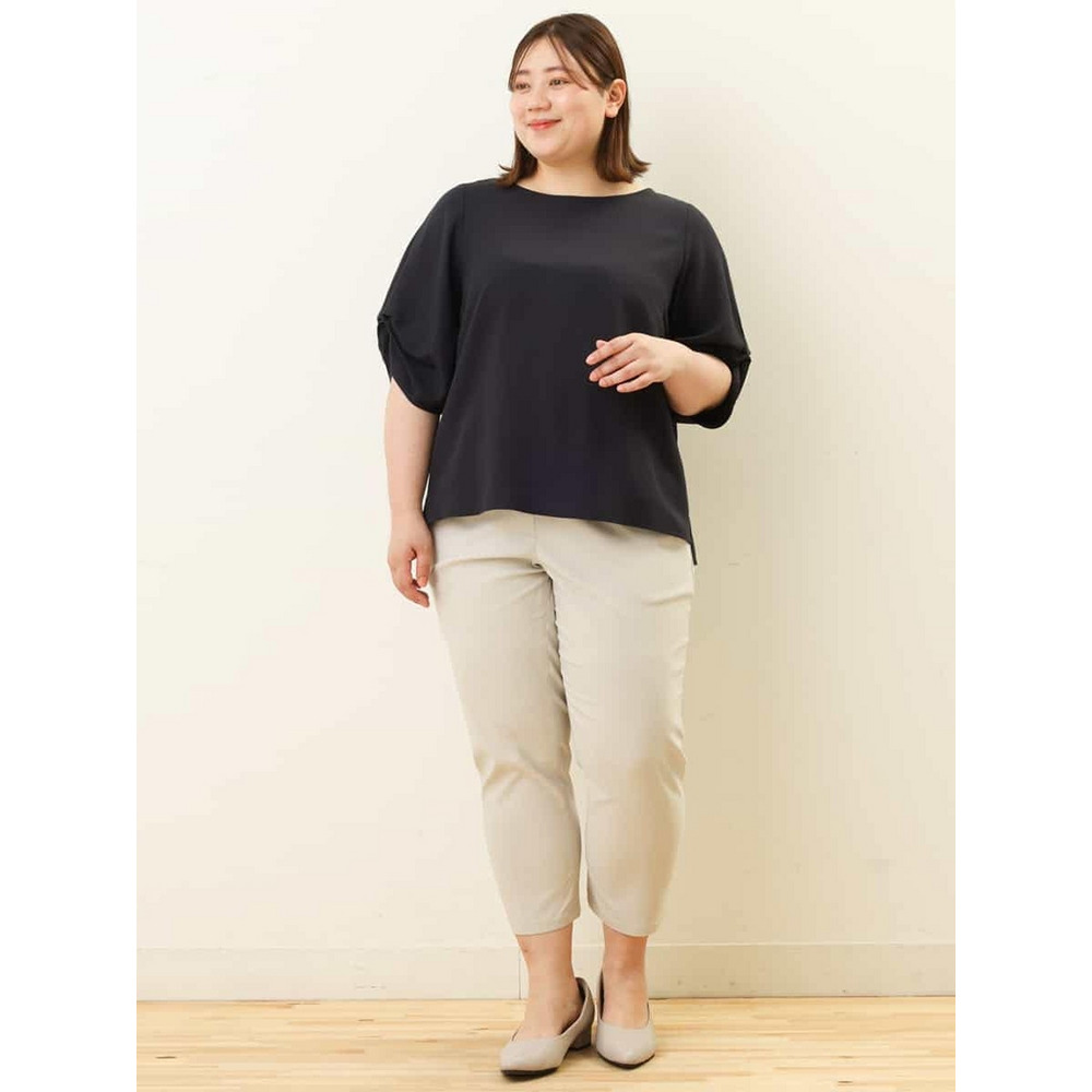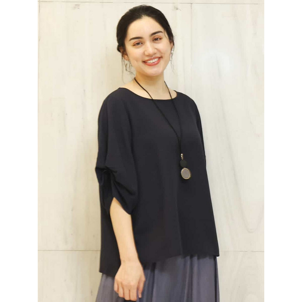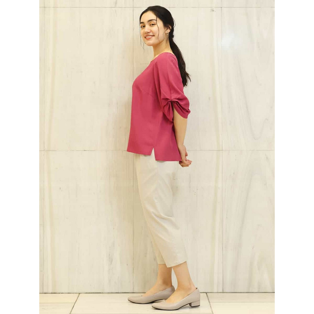 袖に凝ったタックをほどこし上品な雰囲気に仕上げているのでカジュアルにデニムコーディネートでも、スカートやきれいめパンツを合わせるとお出かけスタイルやお仕事スタイルにもオススメです。