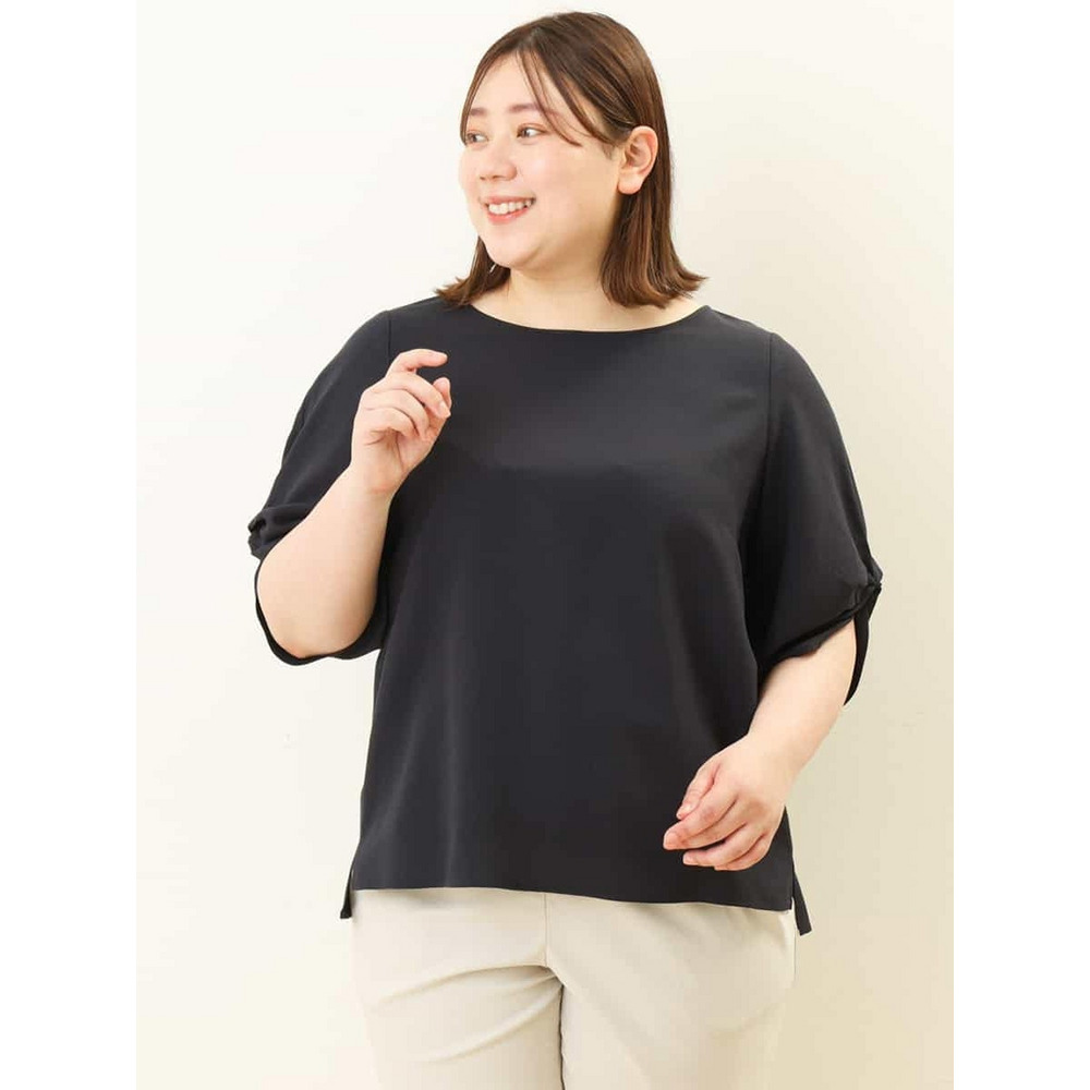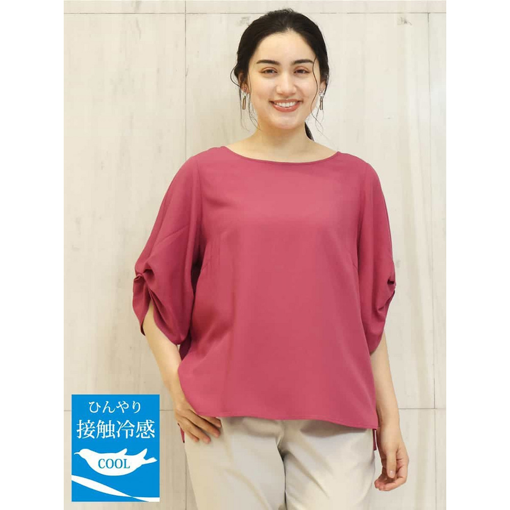 麻混の少し光沢感のある素材を使用したブラウスです。