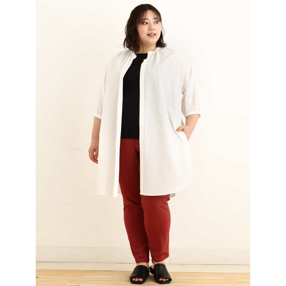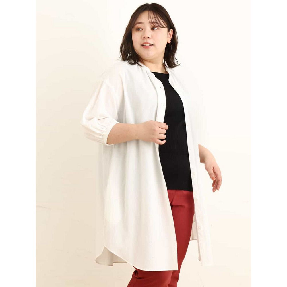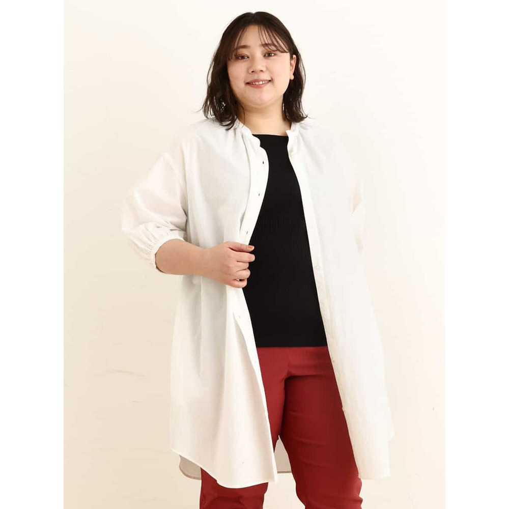 • 【大きいサイズ】バンドカラーストライプシャツチュニック24