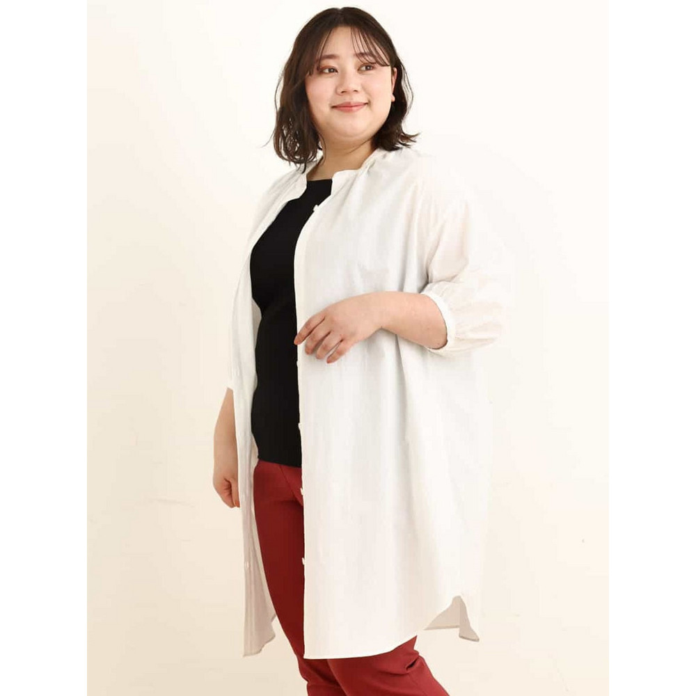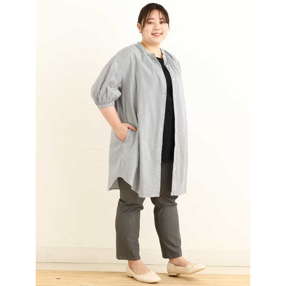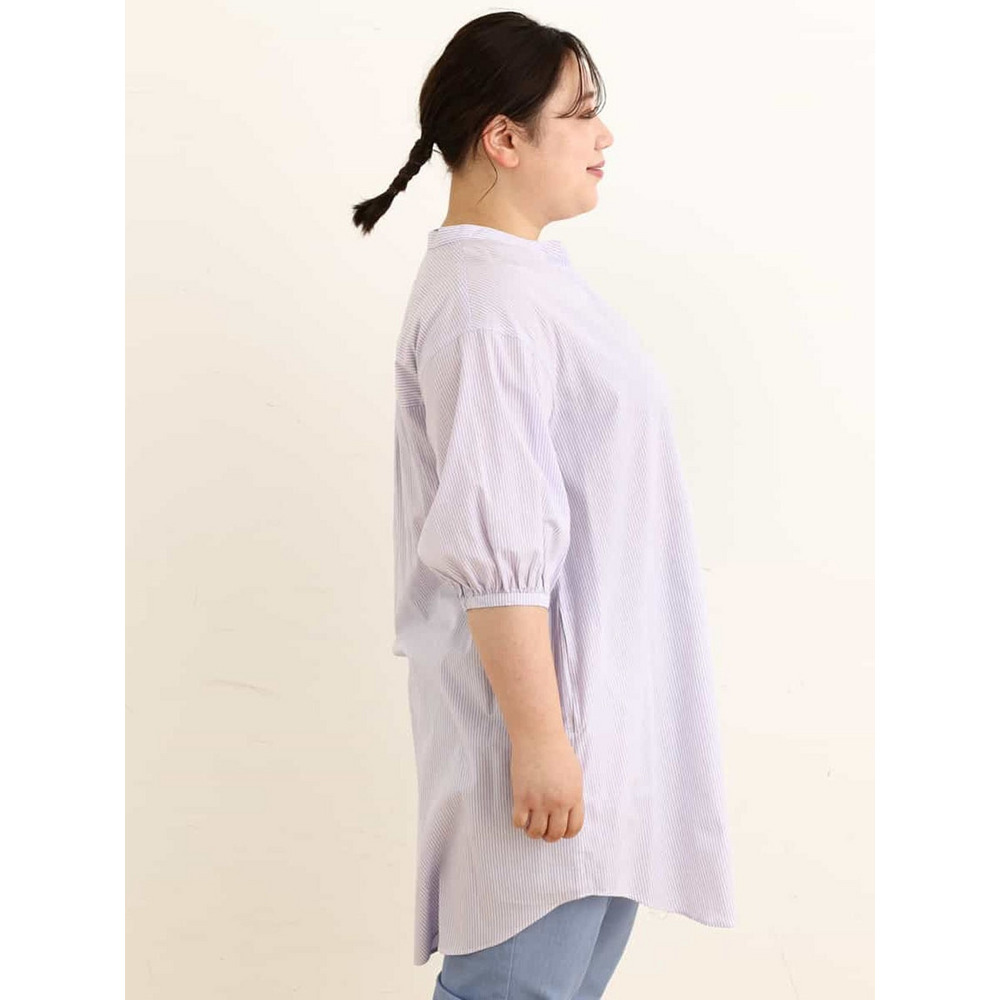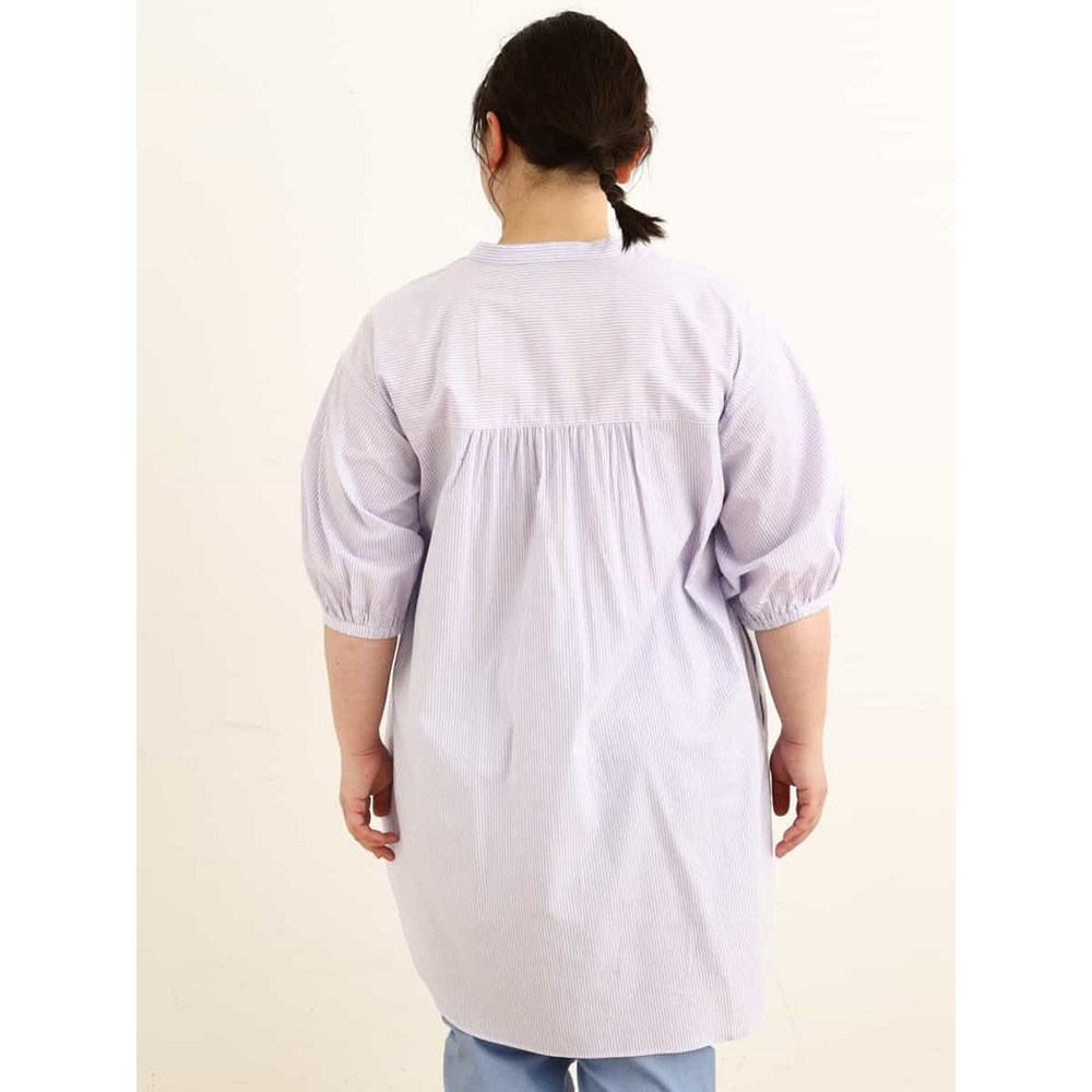 • 【大きいサイズ】バンドカラーストライプシャツチュニック23