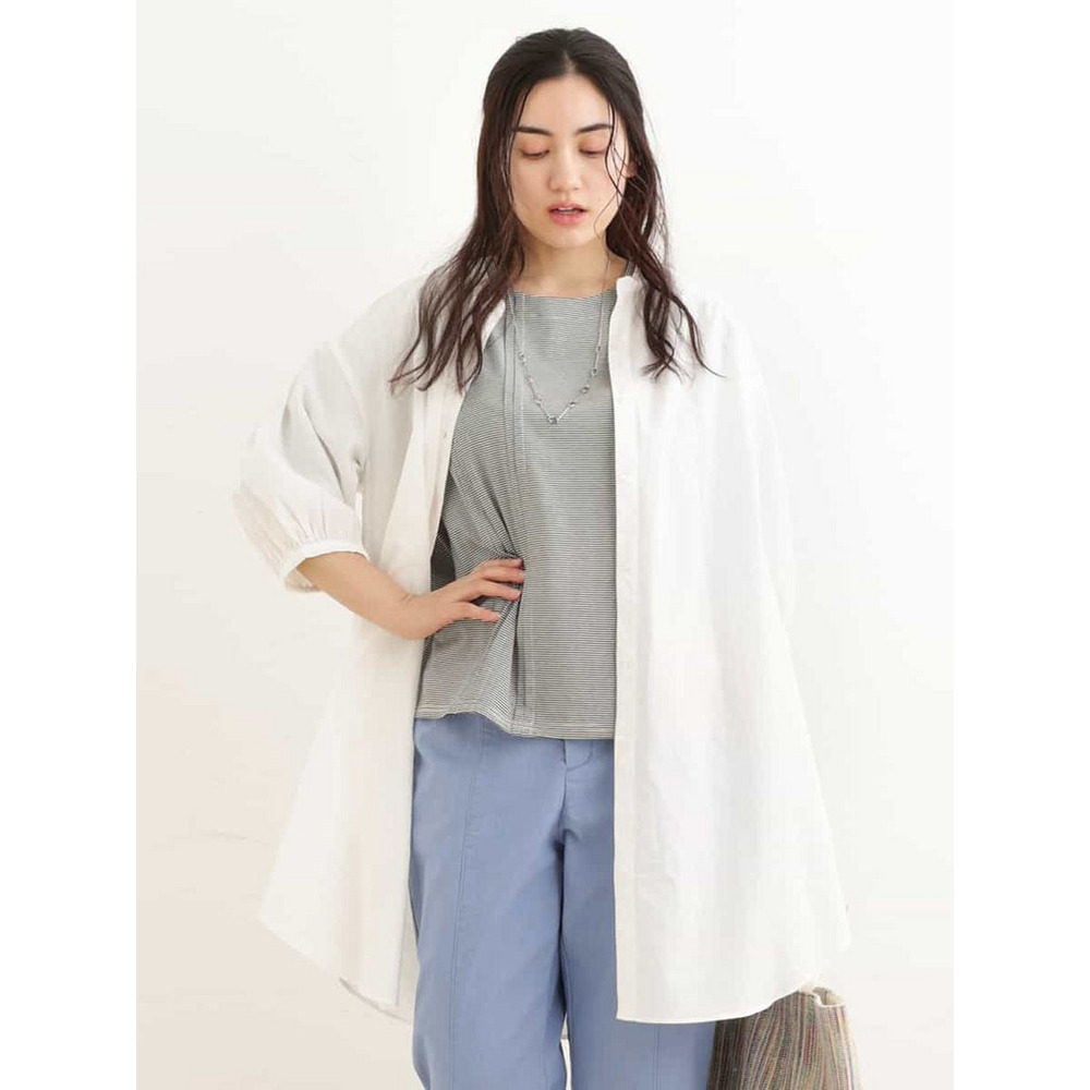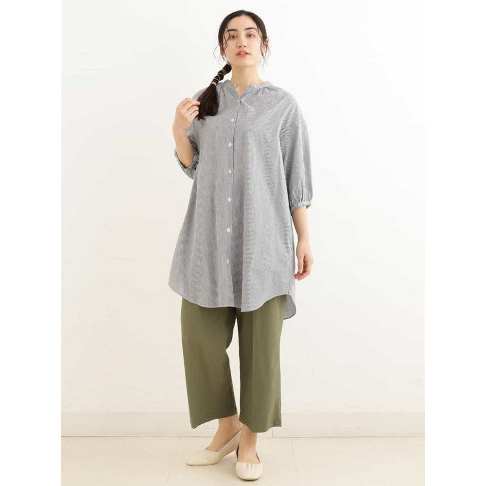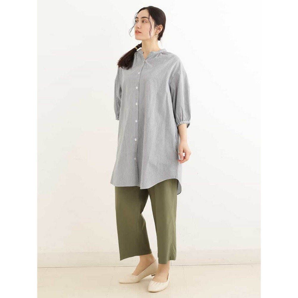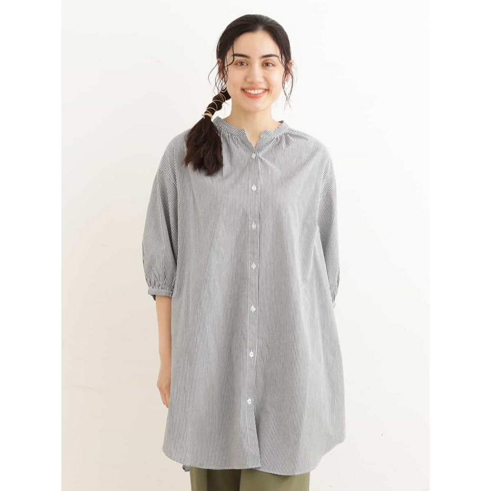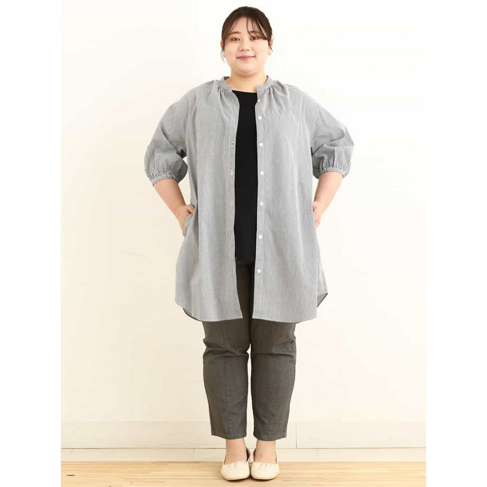 • 【大きいサイズ】バンドカラーストライプシャツチュニック1