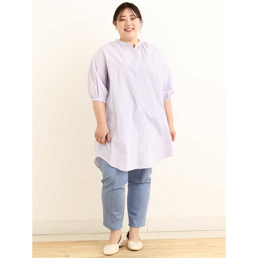 • 【大きいサイズ】バンドカラーストライプシャツチュニック25