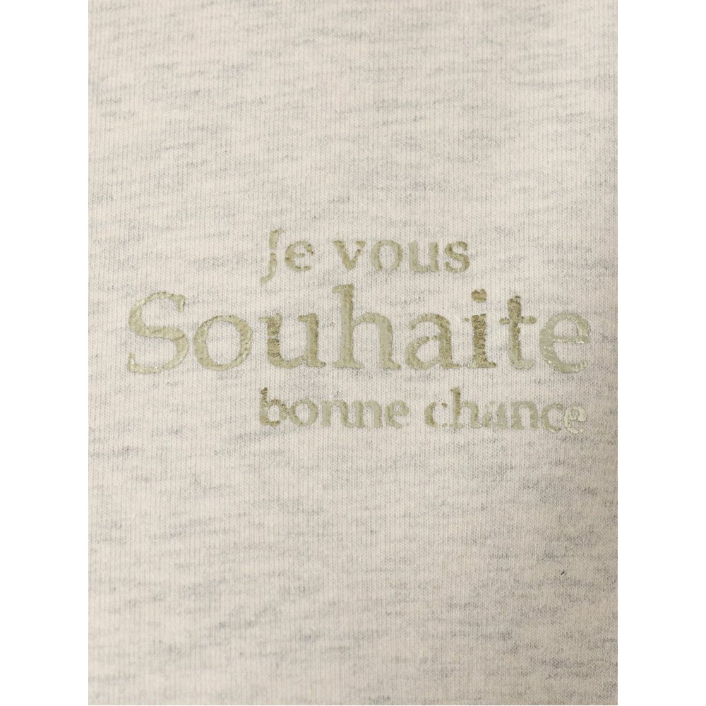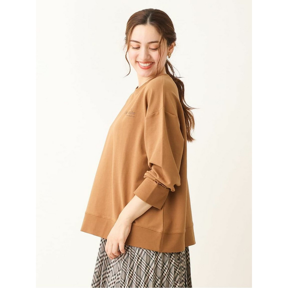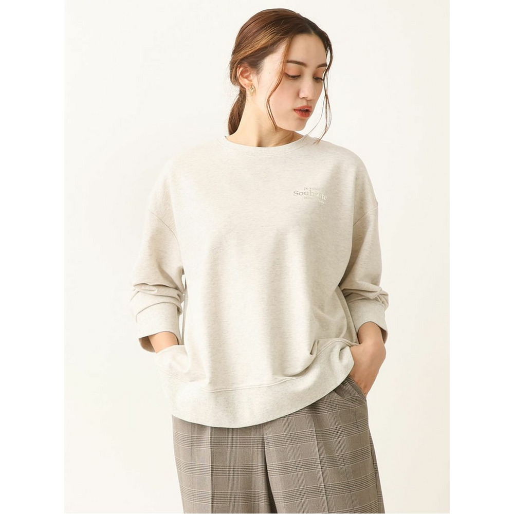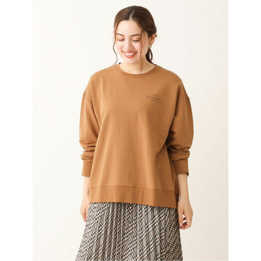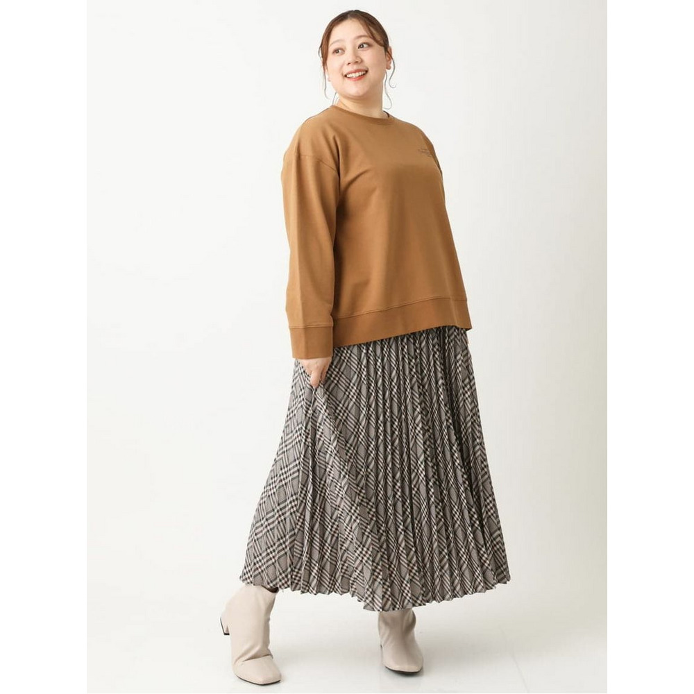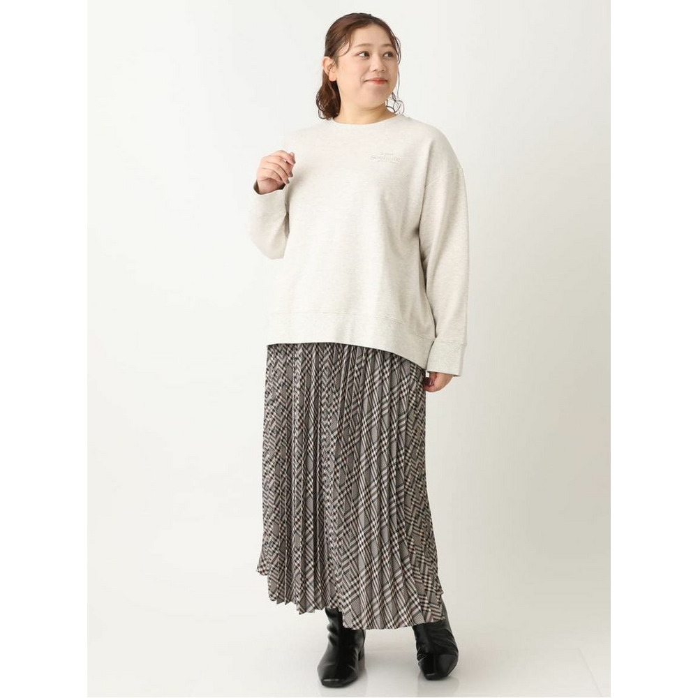 さりげないロゴプリント入りでスカート合わせの抜け感を出した着こなしもおすすめ。