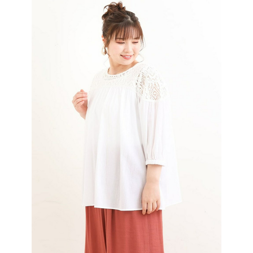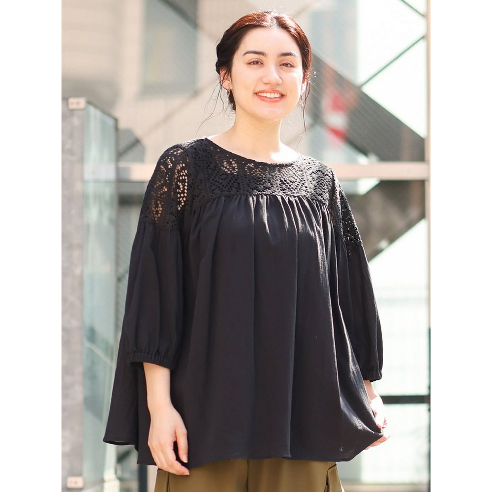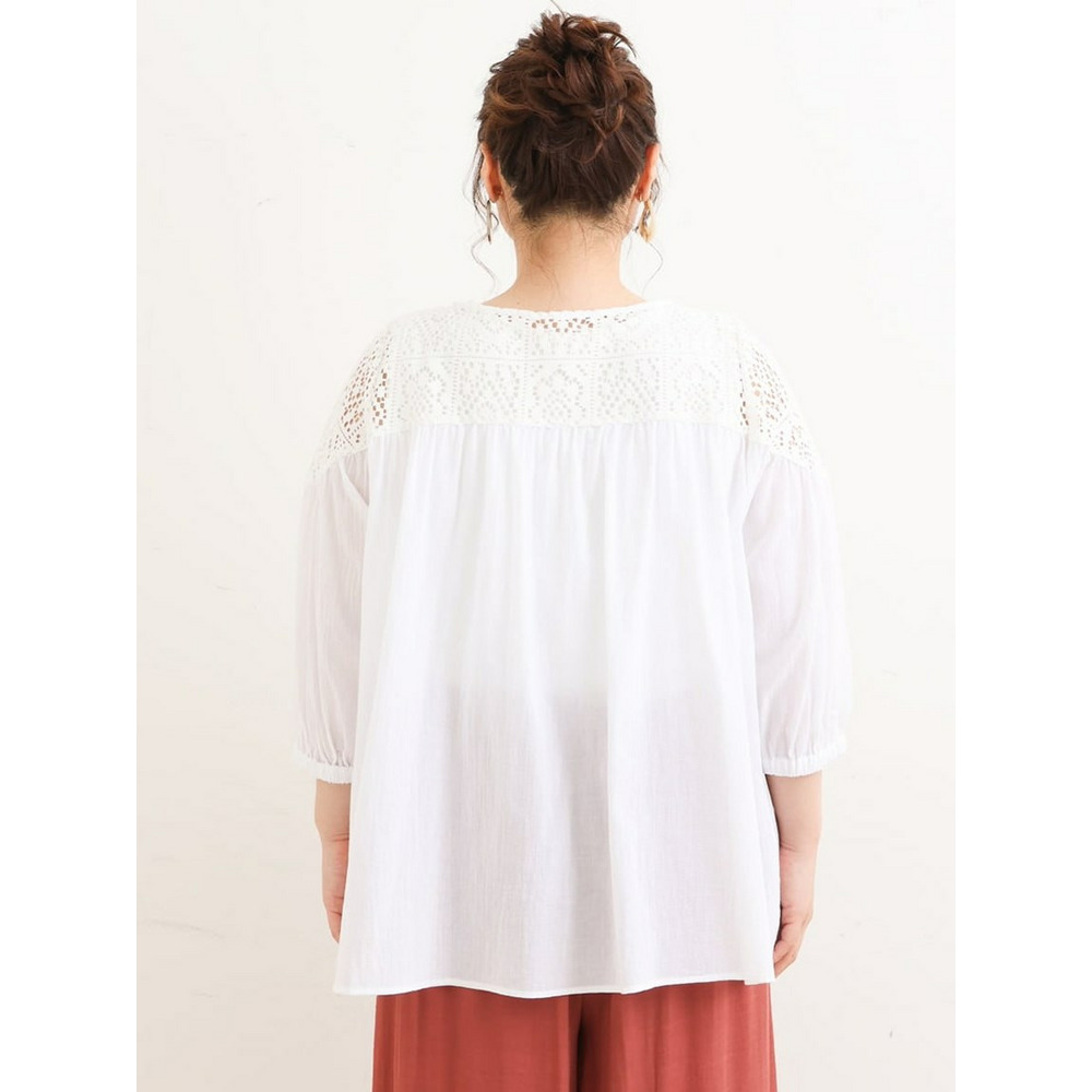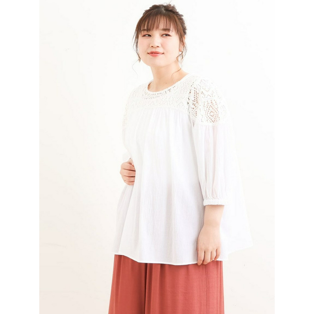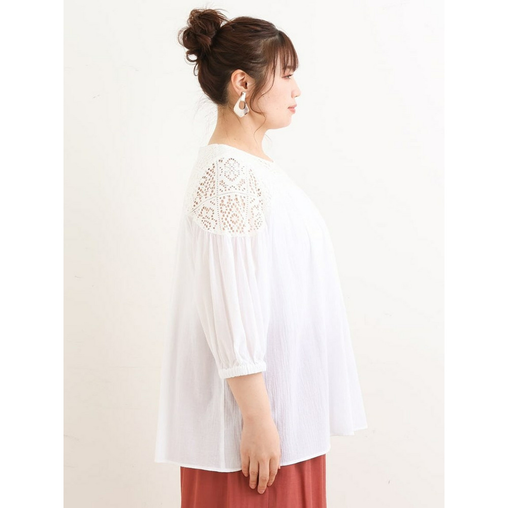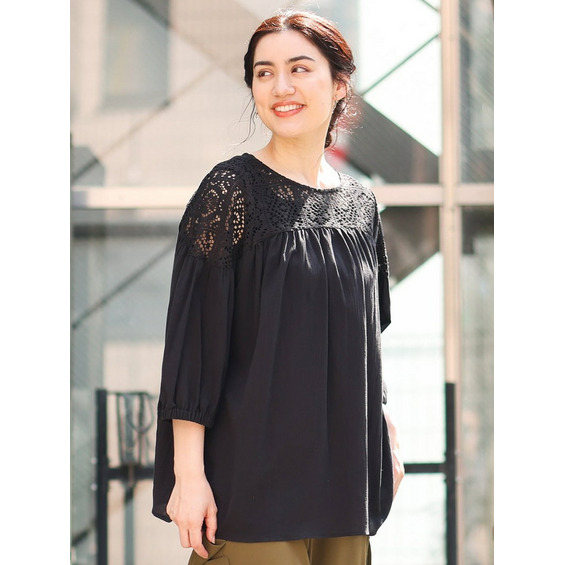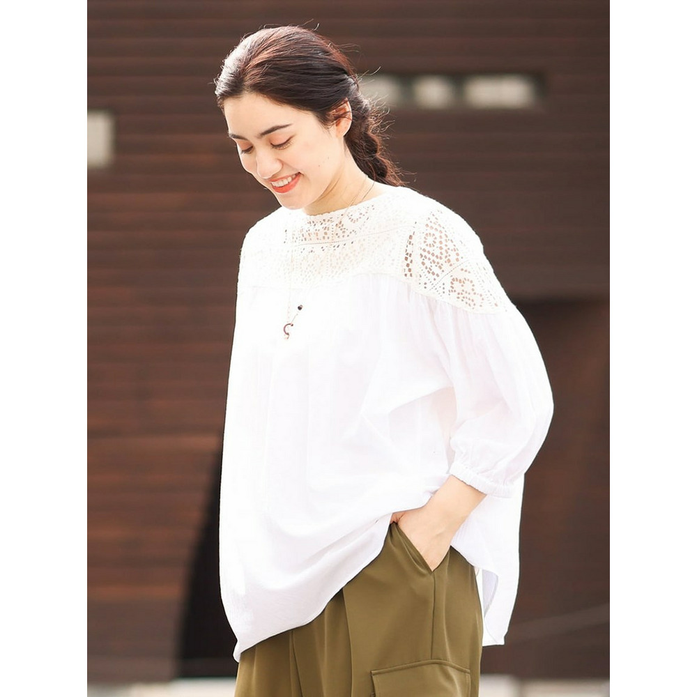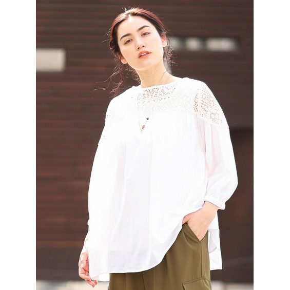 クラフトレースにコットンボイルを組み合わせた切り替えラインが新しいブラウス。