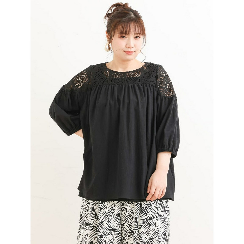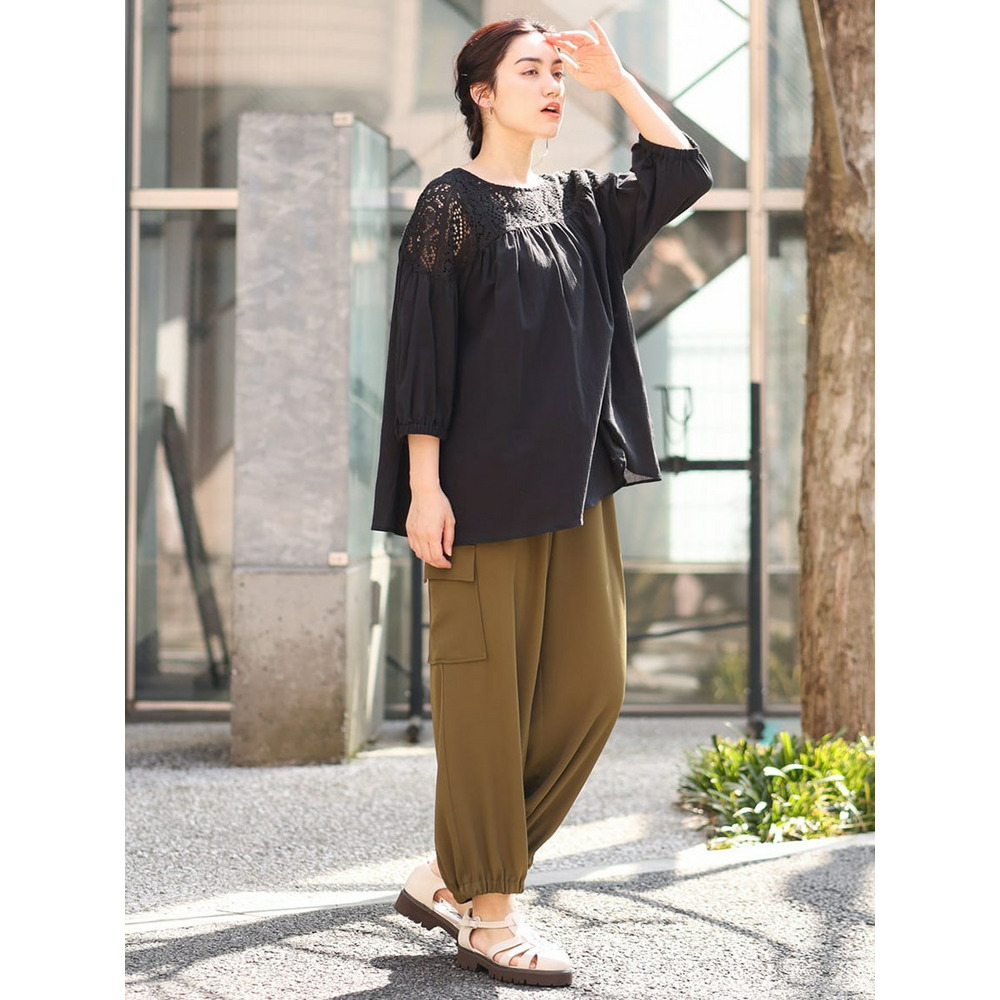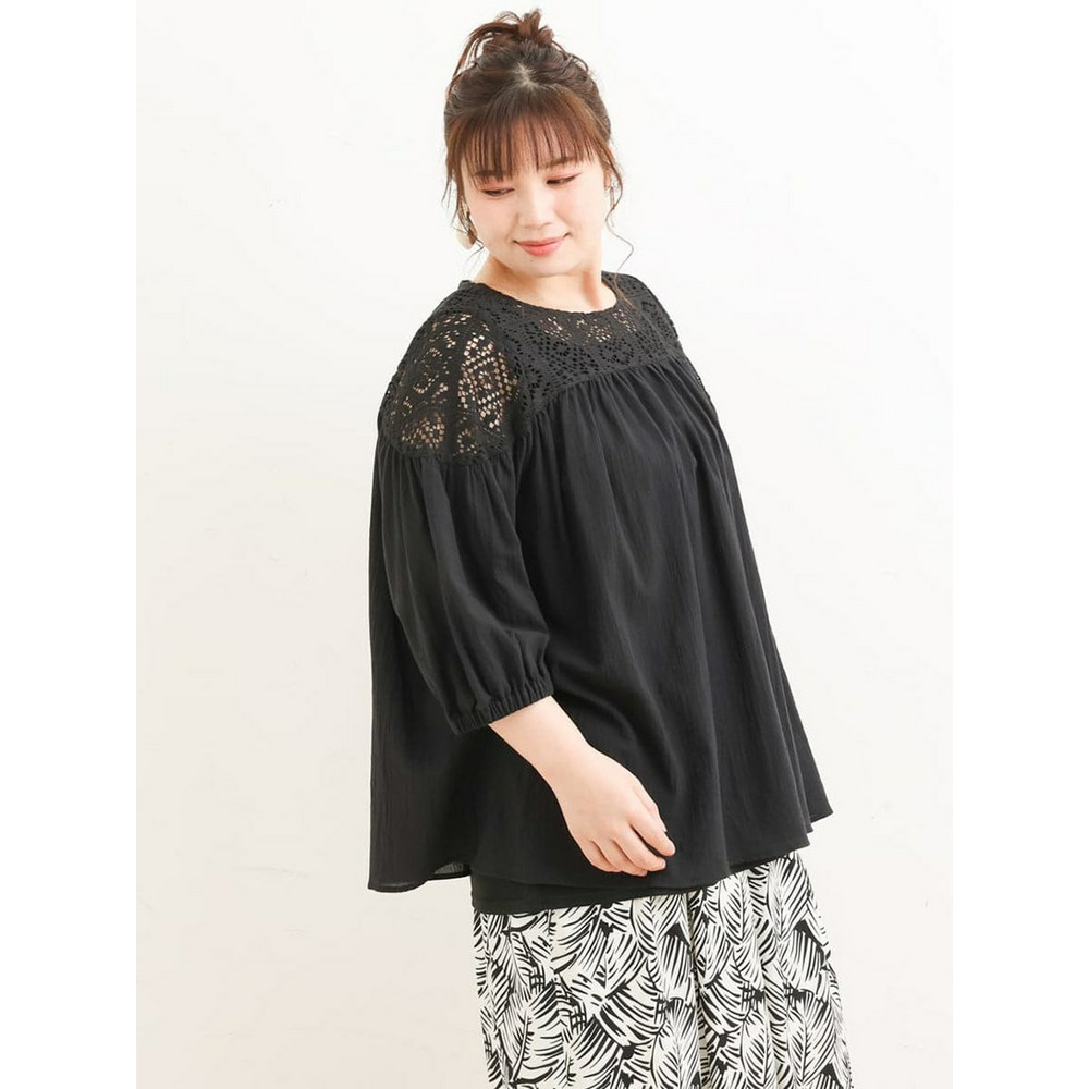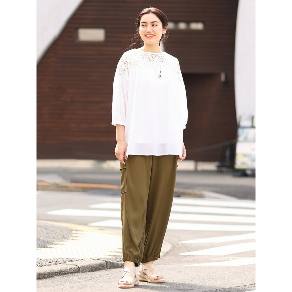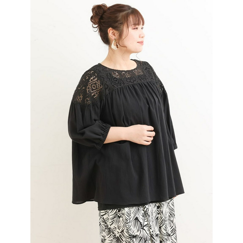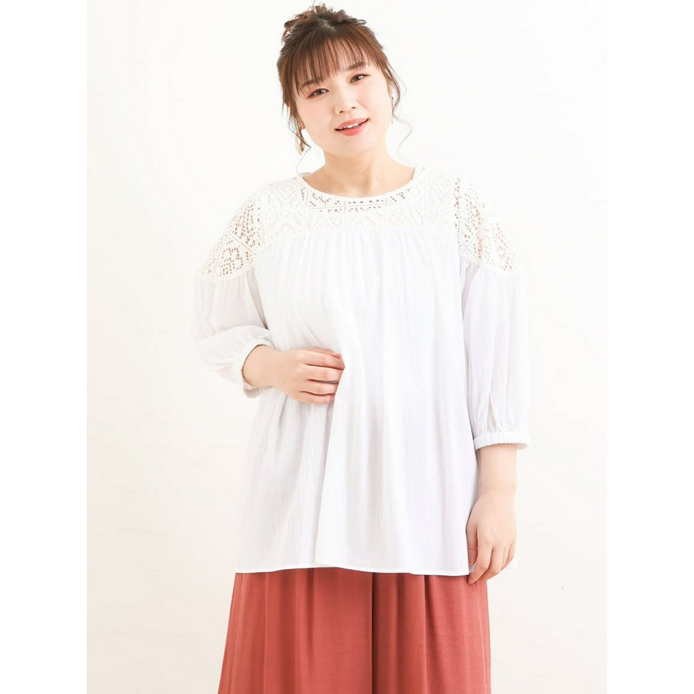 クラフトレースにコットンボイルを組み合わせた切り替えラインが新しいブラウス。