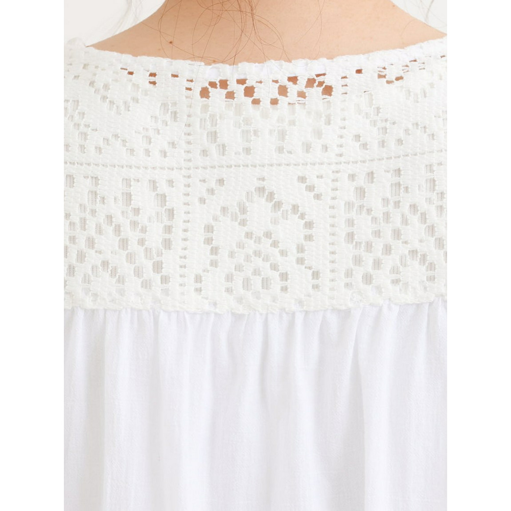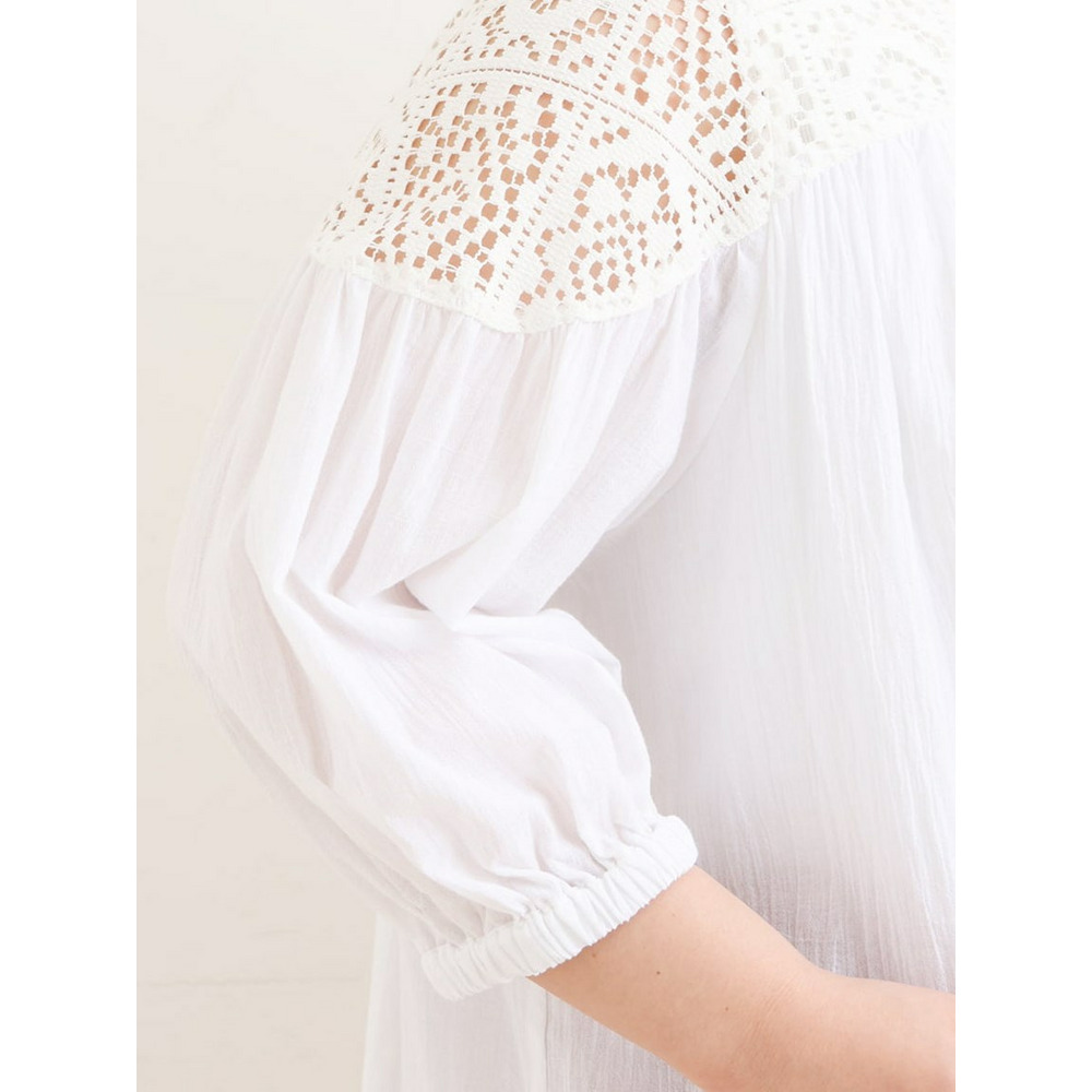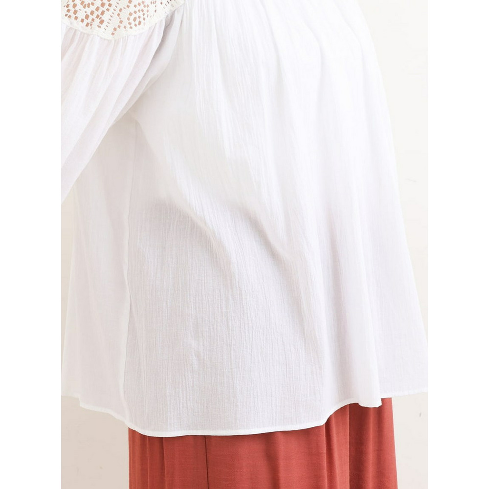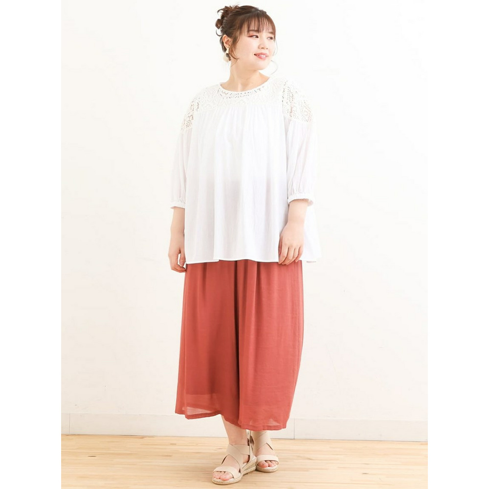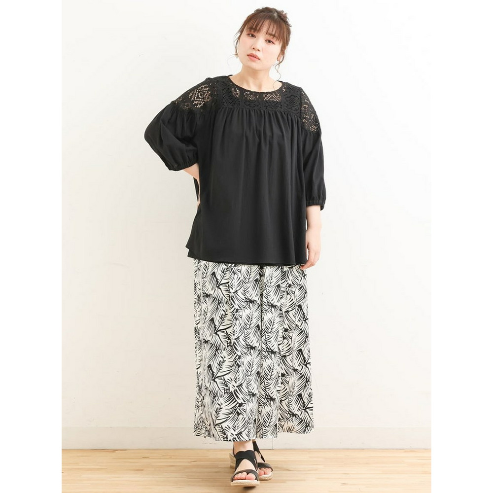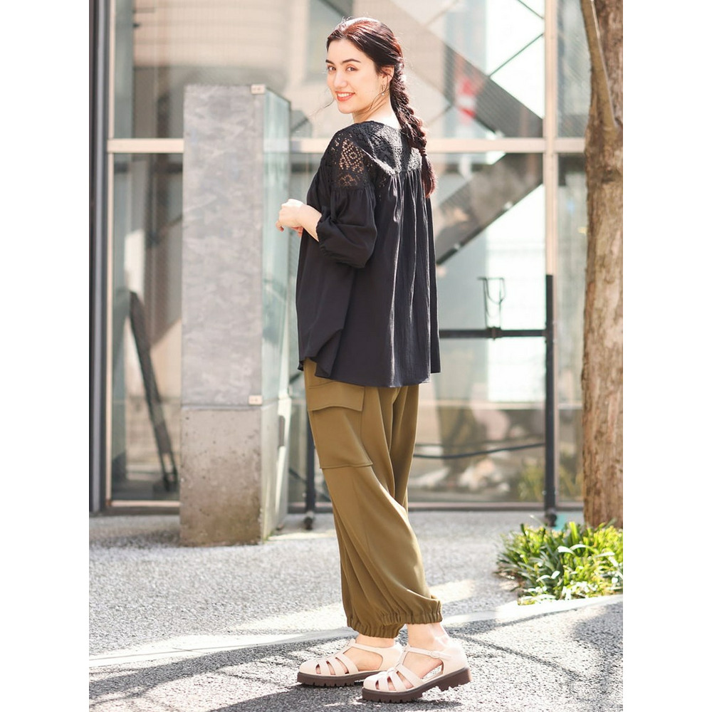 クラフトレースにコットンボイルを組み合わせた切り替えラインが新しいブラウス。
