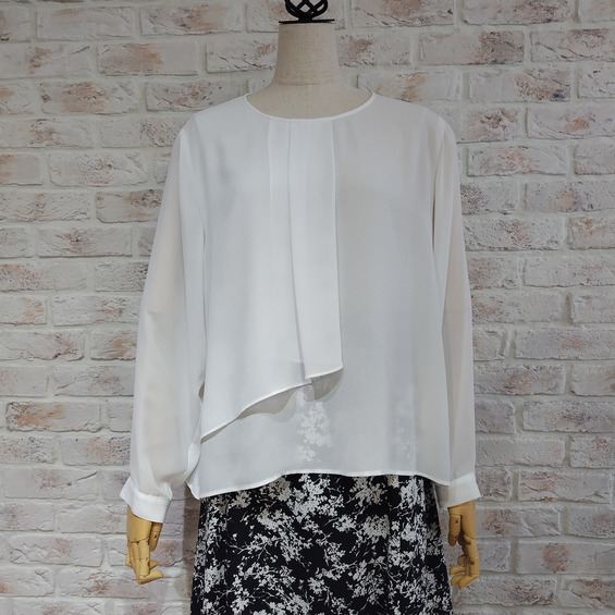 アシメトリーのドレープが動きのあるシルエットを作ってくれます。