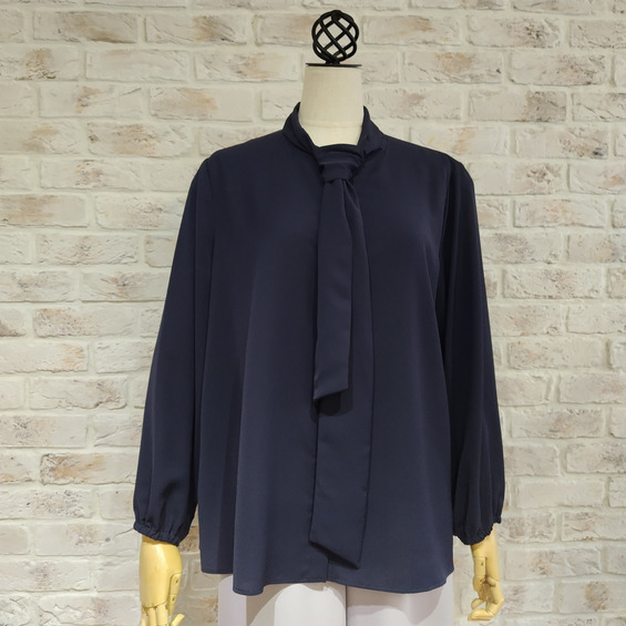 シンプルながらも華やかさが際立つボウタイデザインが特徴のエレガントで女性らしいボウタイブラウスです。