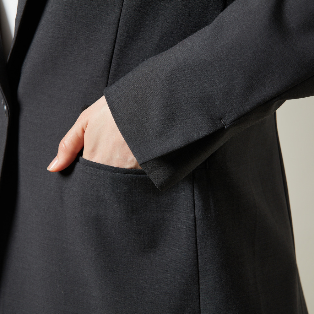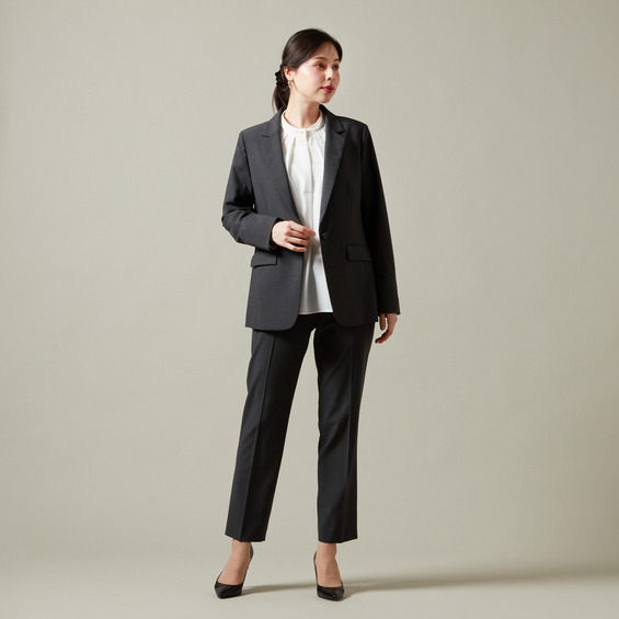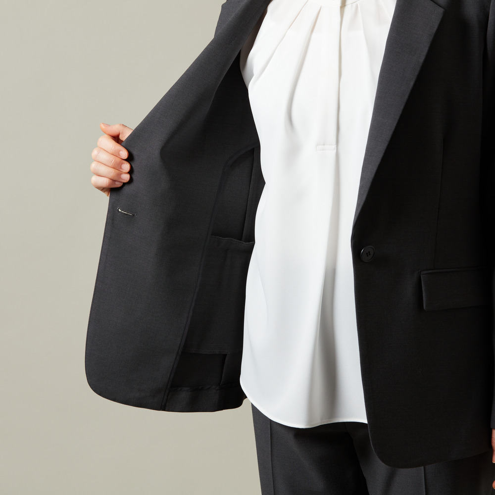 素材 | 表地:ポリエステル64% レーヨン28% ポリウレタン8% 裏地:ポリエステル100% |