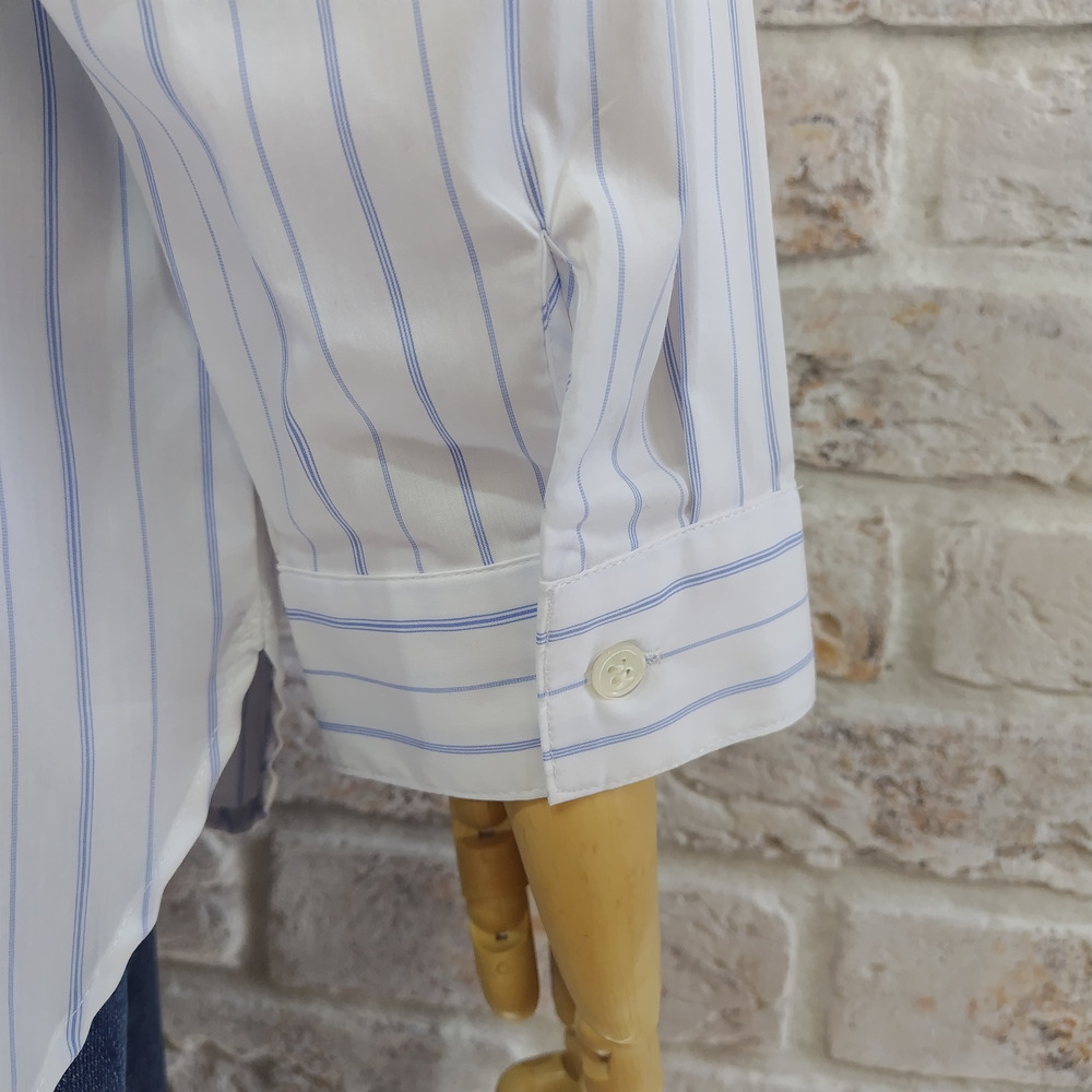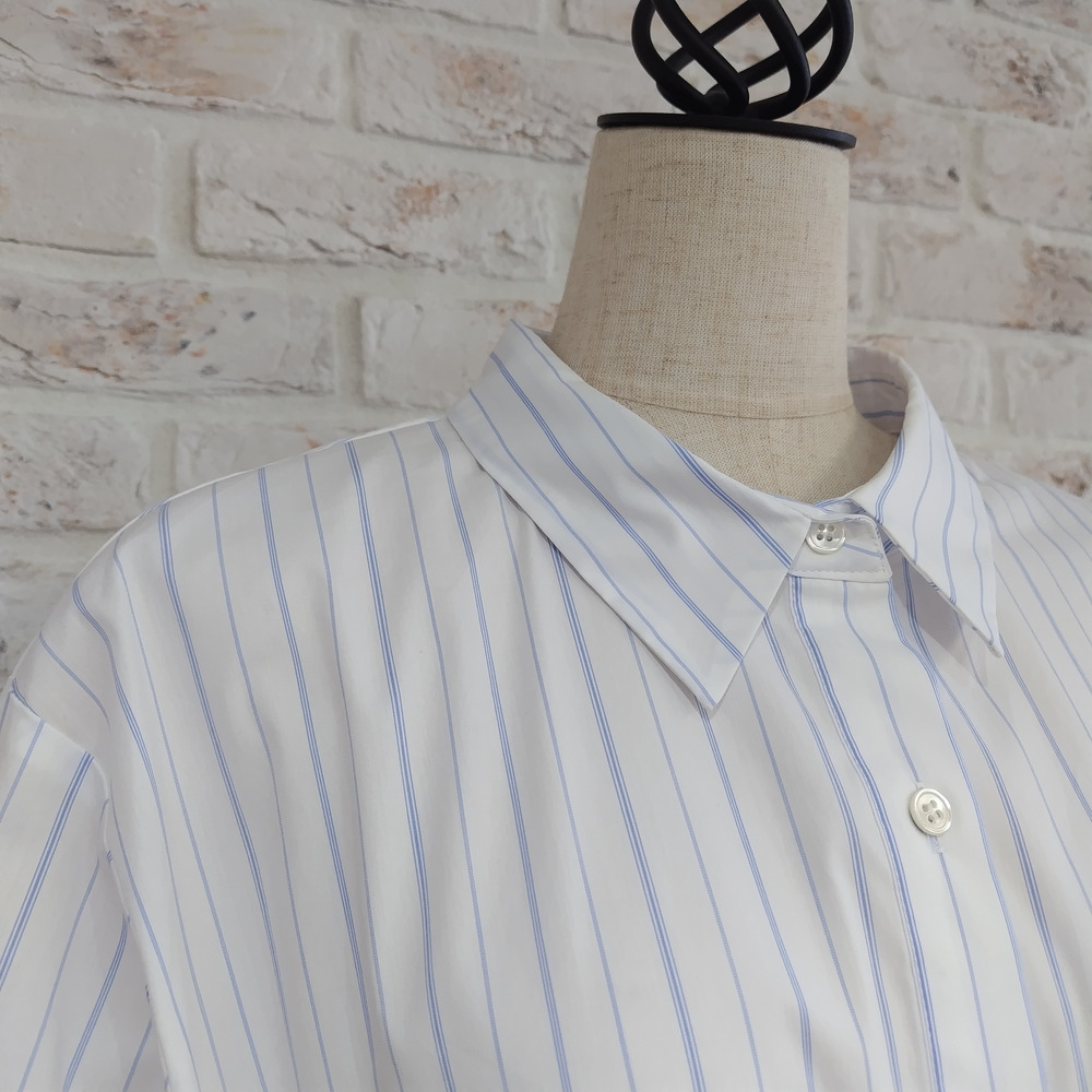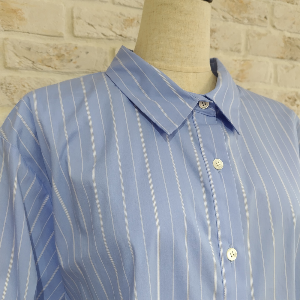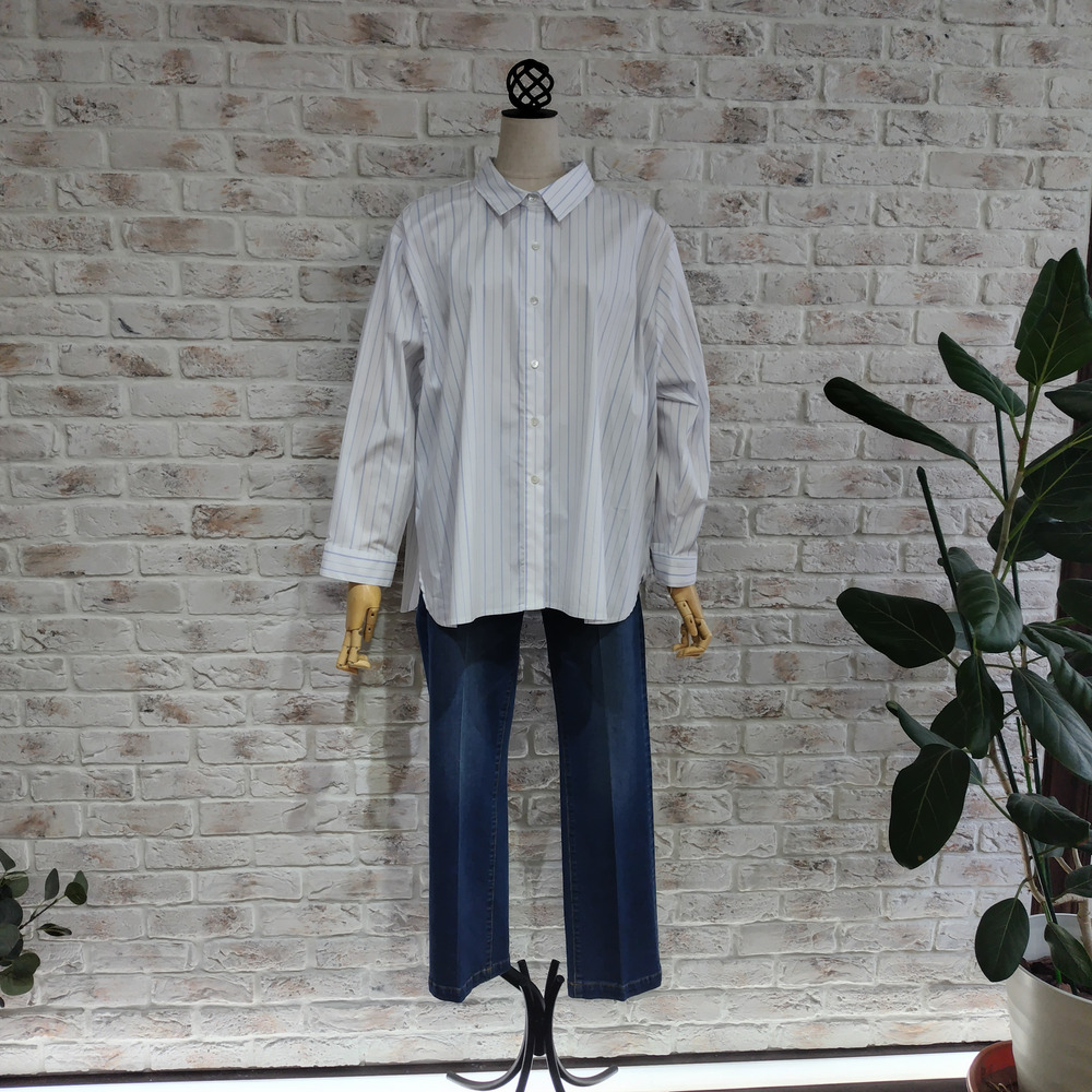 このブラウスは、シンプルなストライプが魅力で、ビジネスシーンからカジュアルなお出かけまで幅広く活躍します。オフィススタイルにはスカートやパンツを合わせて、友人とのランチやショッピングにはデニムと組み合わせることで、様々なシーンでお洒落を楽しめます。