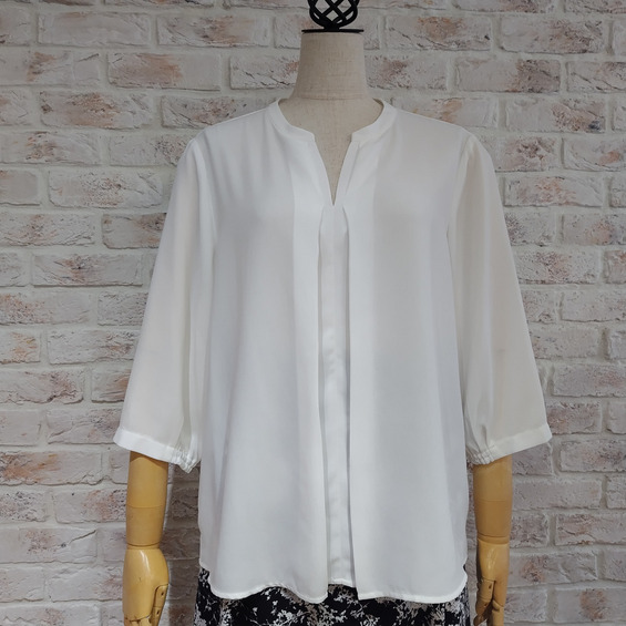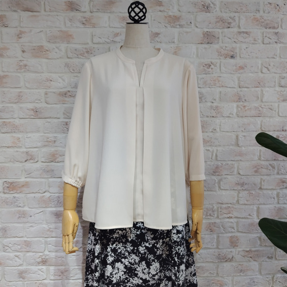 1枚着としてはもちろん、ジャケットのインナーとしても襟元がもたつかず、オフィスシーンをスマートに彩ります。