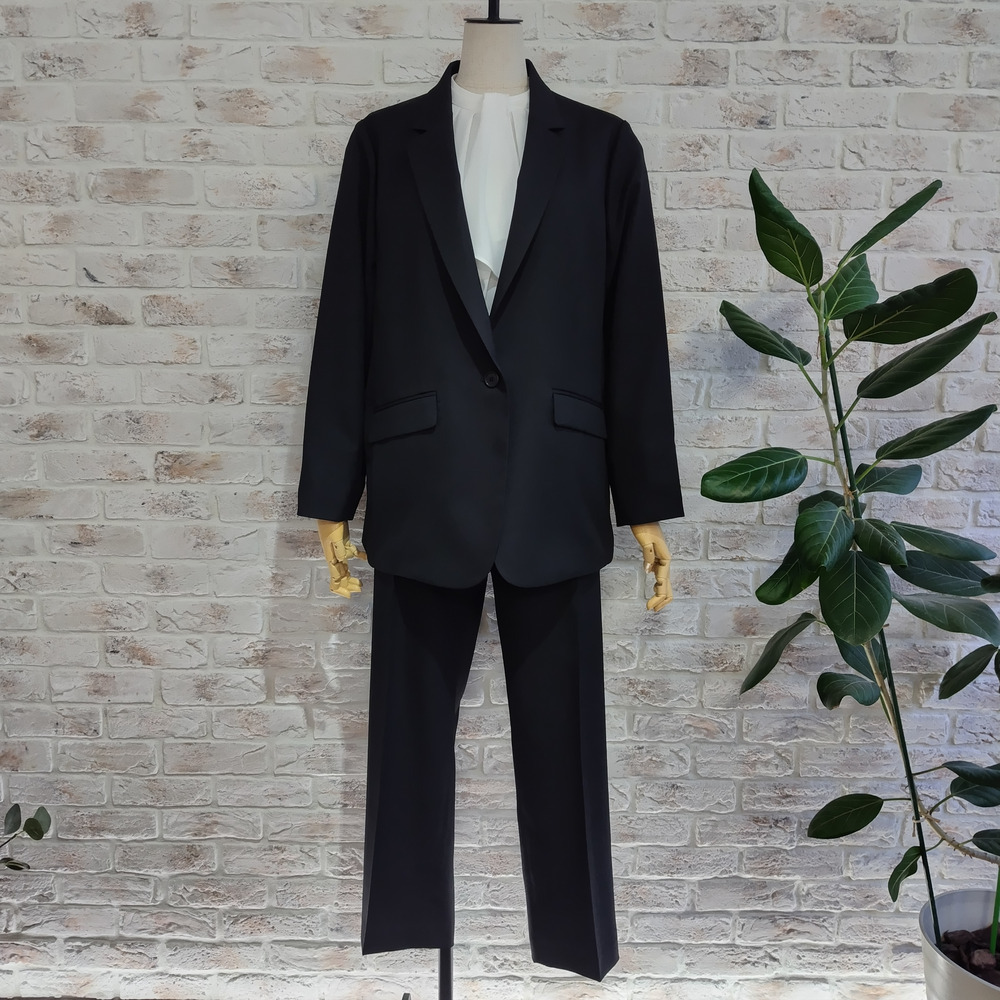■着こなしのご提案 同素材のテーパードパンツ(品番:3260602)とのセットアップはもちろん、お手持ちのワンピースやスカートとも相性抜群。