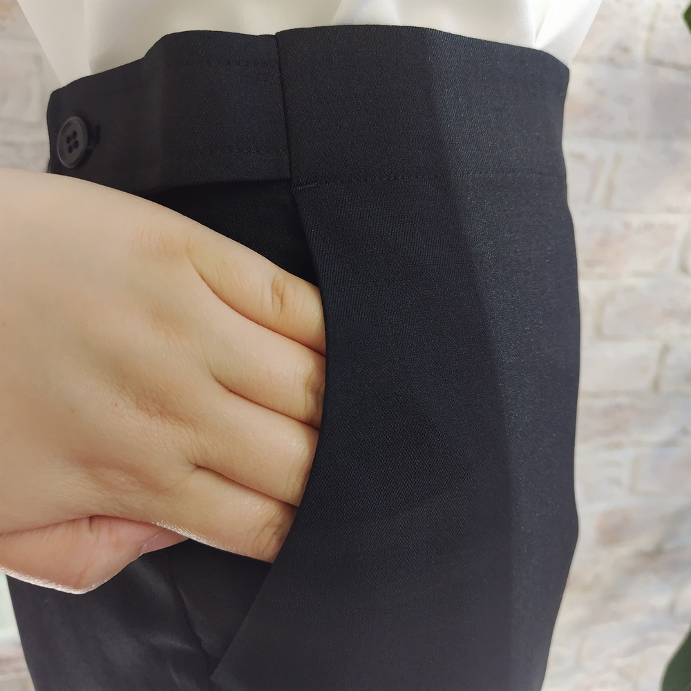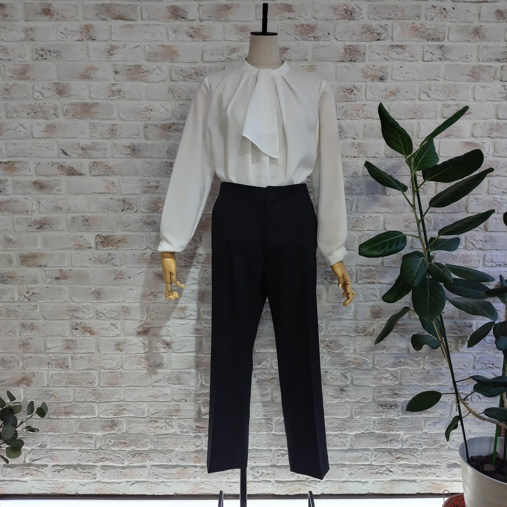 「いつでも美しく、心地よく。」 ラクープから、ON/OFF問わず品格を纏える究極の定番パンツが登場。 春・夏・秋とロングシーズン着回せる、程よい肉感のポリエステル素材を使用したテーパードパンツです。 「きちんと見せたいけれど、動きやすさも妥協したくない」そんな欲張りな願いを叶える一着に仕上げました。 最大の魅力は、忙しい毎日に嬉しい「防シワ性」。 長時間のデスクワークや移動、出張時にもシワになりにくく、清潔感のある佇まいを一日中キープします。 ■こだわりのシルエット 縦のラインを強調するセンタープレス入りで、脚をまっすぐ、長く見せてくれます。 前からはスッキリ見えるデザインですが、後ろ側はゴム仕様。座りっぱなしのデスクワークでもお腹周りが苦しくならず、快適な着心地が続きます。 ■素材・機能 イージーケア: シワになりにくく、アイロンの手間を軽減。 3シーズン対応: 裏なし仕様で、1月下旬のデリバリーから初夏、そして秋口まで長く活躍します。 上品な微光沢: 控えめな光沢感が、ビジネスシーンから卒業・入学式などのセレモニーまで、シーンを選ばず自信を与えてくれます。 ■着こなしのご提案 同素材のテーラードジャケット(品番:3260401)とのセットアップはもちろん、お手持ちのブラウスやジレとも合わせやすい。 は冠婚葬祭からモードな着こなしまで幅広く対応します。 動きやすくすっきり見えるシルエットを作りました。 透け感: なし 裏地: なし 伸縮性: ややあり 光沢感: 微光沢あり 生地の厚さ: 普通(3シーズン対応) ポケット: あり F2サイズ 15号-19号 F4サイズ 17号-21号  相当 セットアップ対応 テーラードジャケット→3260401